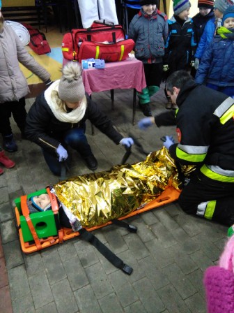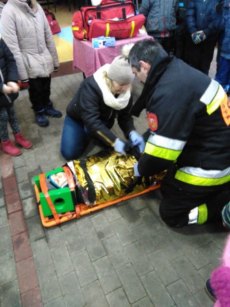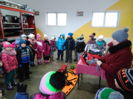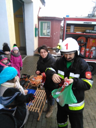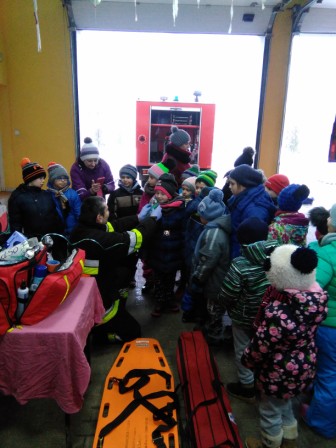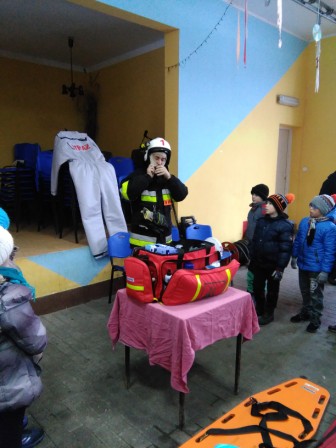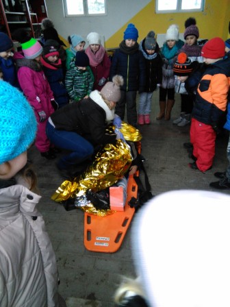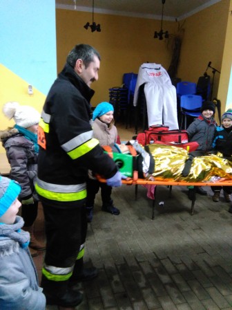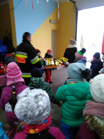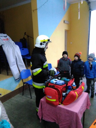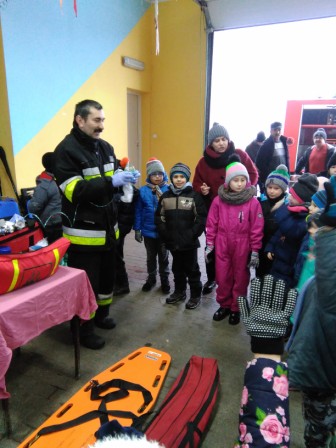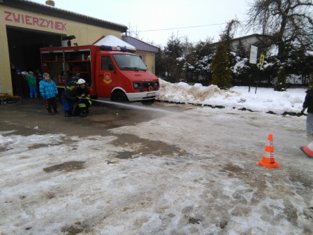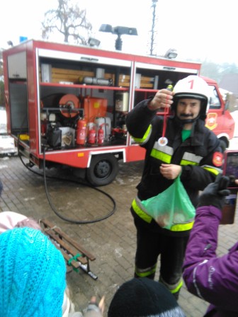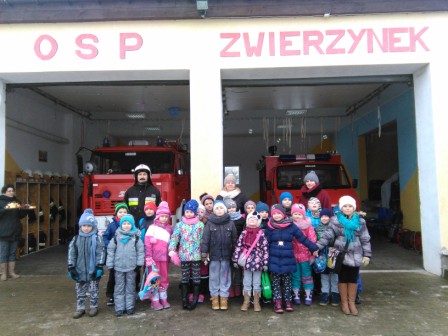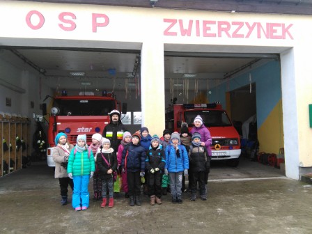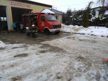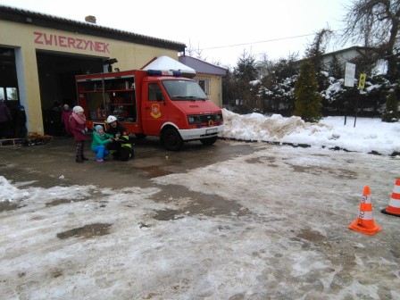 Na miejscu powitały nas syreny straży pożarnej. W remizie Ochotniczej Straży Pożarnej czekał na nas pan Tomasz Dynarski, który jest strażakiem – ochotnikiem i ratownikiem medycznym. Zaprezentował sprzęt ratowniczy jakim dysponuje Ochotnicza Straż Pożarna w Zwierzynku. Pokazał, w jaki sposób sprzęt ten jest wykorzystywany w sytuacjach ratowania ludzkiego życia.
