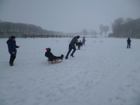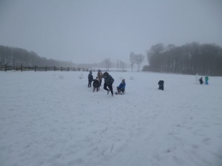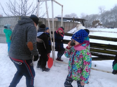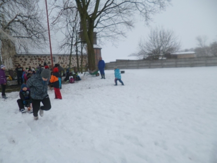 Na śniegu powstawały liczne bałwany, dzieci jeździły na sankach, bawiły się wspólnie z mieszkańcami.