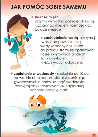- Nie pływajmy w pobliżu wodorostów. Zwracajmy uwagę na dno i ukształtowanie zbiornika.