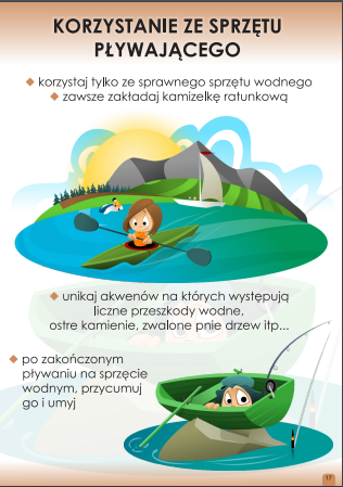 - Wybierając się na kajaki, łódki czy rowery wodne, zawsze zakładajmy kapok. Pamiętajmy też, aby nie pływać wieczorem i po zmroku. To niebezpieczne i łatwo zgubić się na wodzie.