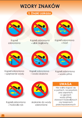 - Miejsce na kąpiel musi być bezpieczne. Dlatego nie wolno się kąpać przy śluzach, mostach, budowlach wodnych, portach, zaporach, a także w brudnej wodzie i tam, gdzie są silne wiry i prądy.
