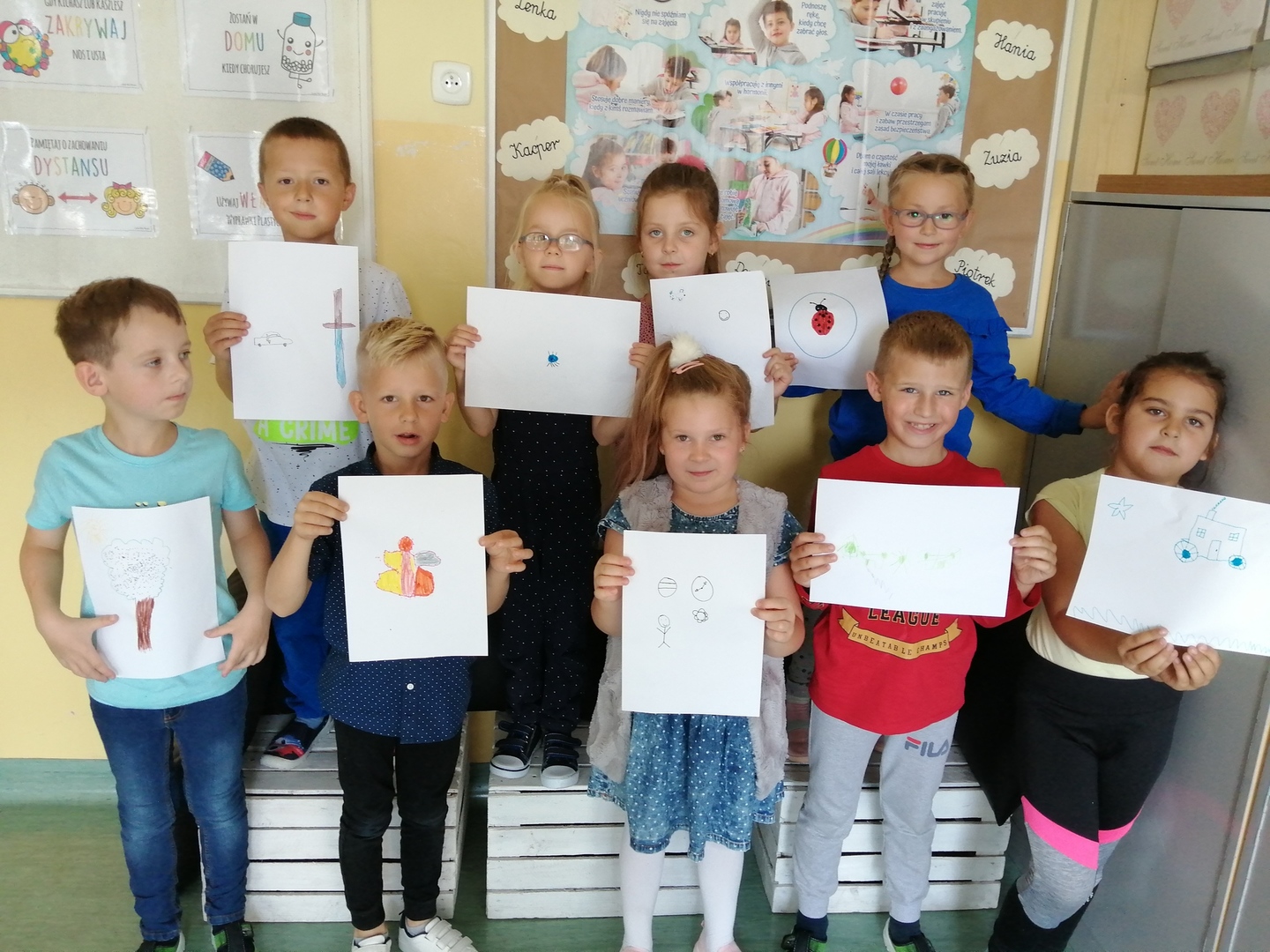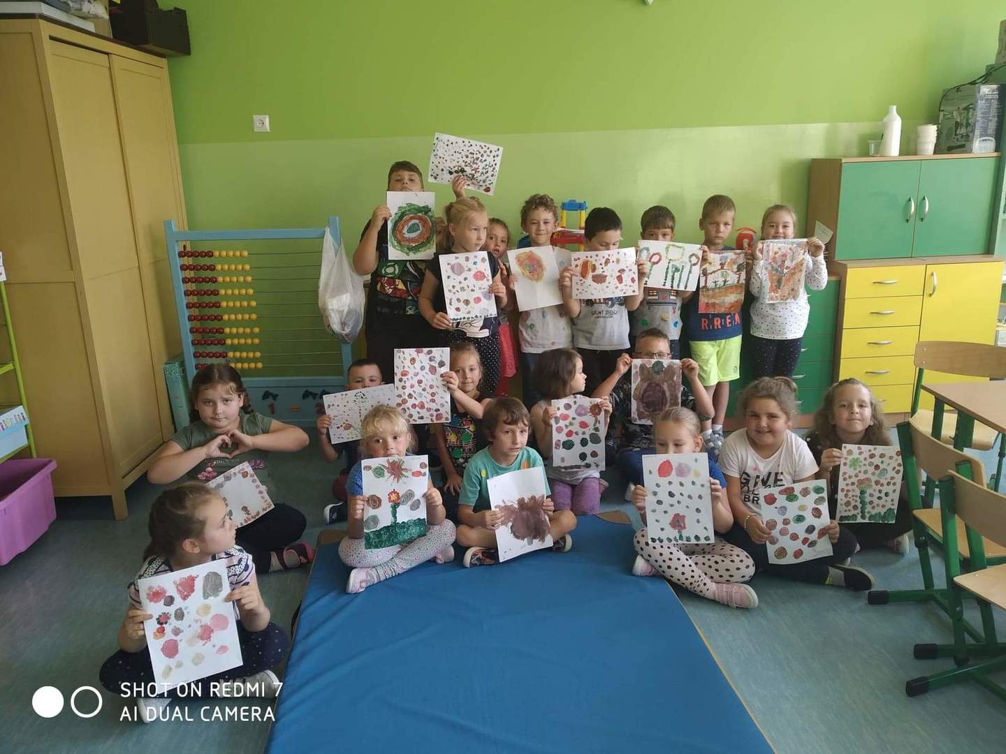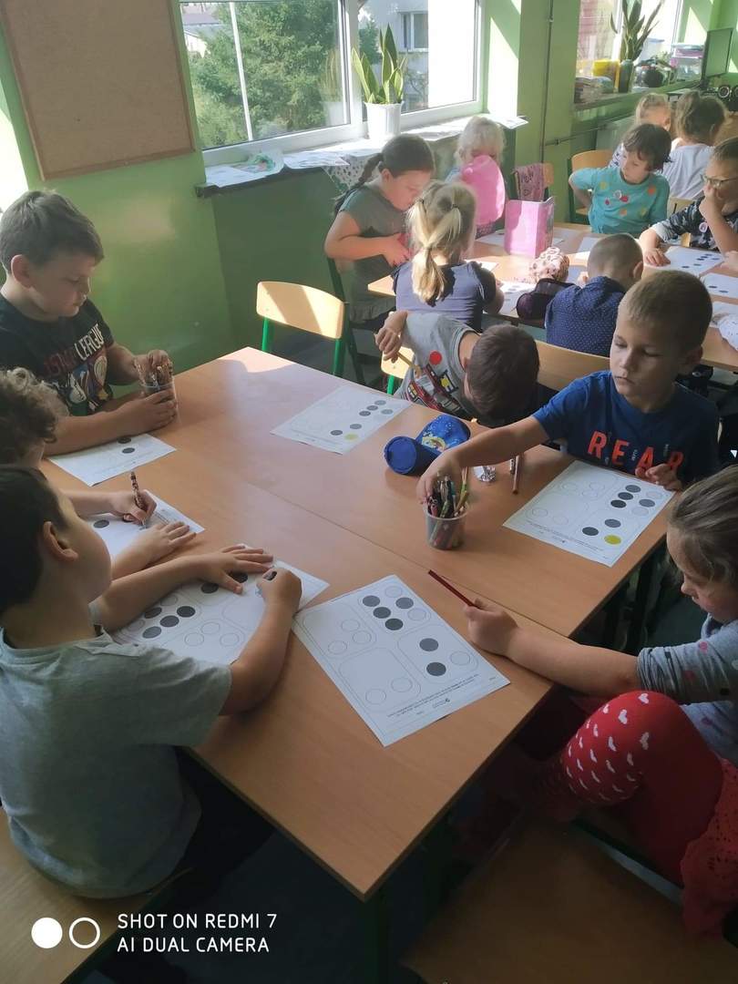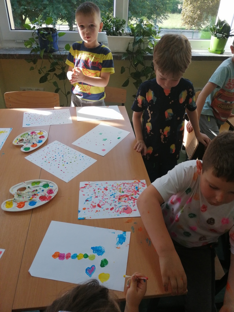 Historia Vashti z książki „The Dot” Petera H. Reynoldsa zapoczątkowała Międzynarodowy Dzień Kropki obchodzony na całym świecie 15 września. Przedszkolaki z oddziałów przedszkolnych i uczniowie klasy I w Dobrej również włączyli się w obchody święta kreatywności, talentu i odwagi w pokonywaniu trudności a kropki towarzyszyły dzieciom przez cały dzień. Obchody Dnia Kropki rozpoczęliśmy właśnie od poznania losów małej Vashti, która dzięki kropce uwierzyła w siebie. Historia ta uświadomiła dzieciom, że każdy z nich ma jakieś ukryte talenty, które gdzieś drzemią głęboko i czekają na ich odkrycie. Kropki królowały nie tylko na ubraniach, ale również w zabawach ruchowych, dydaktycznych i podczas tworzenia kropkowych, fantazyjnych obrazków.