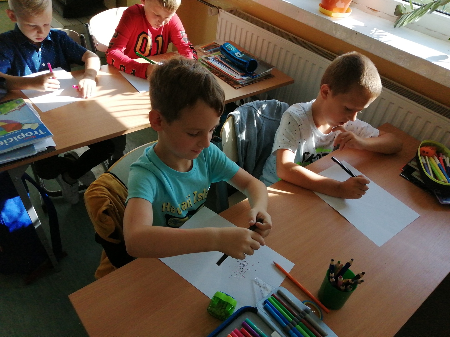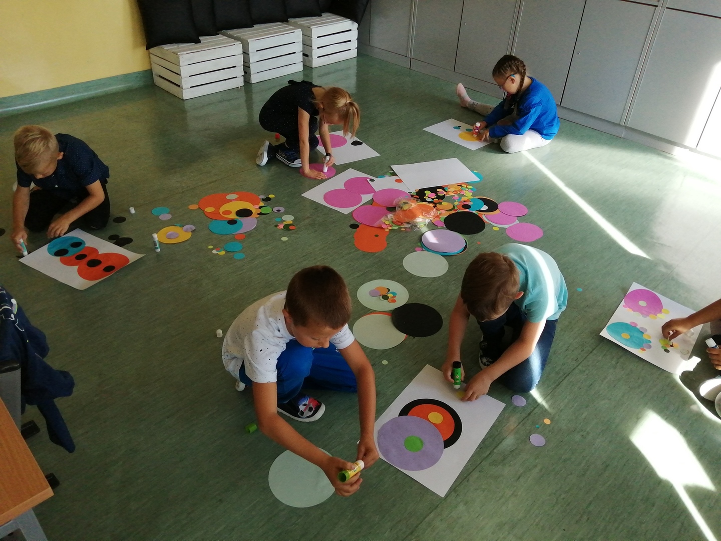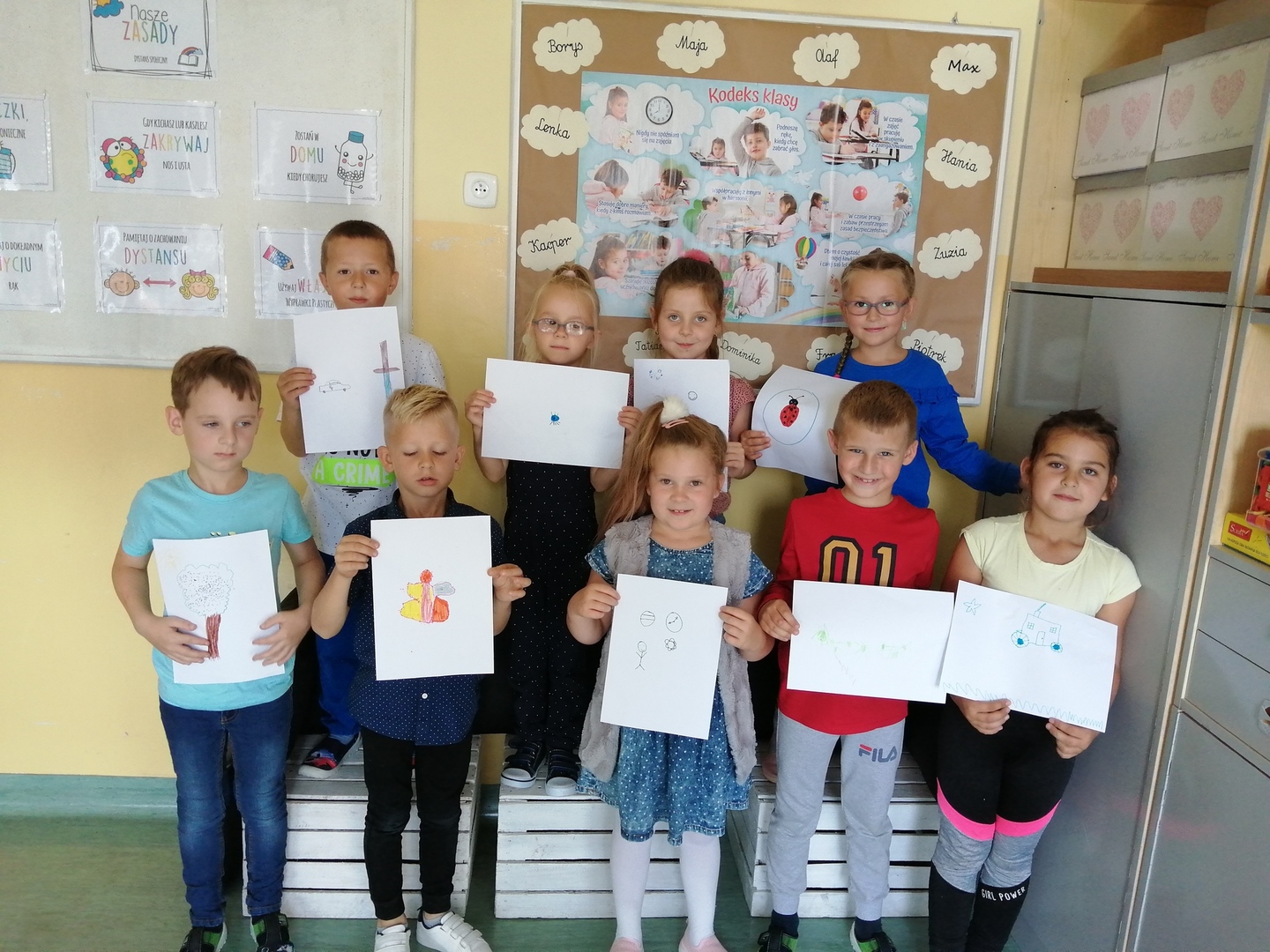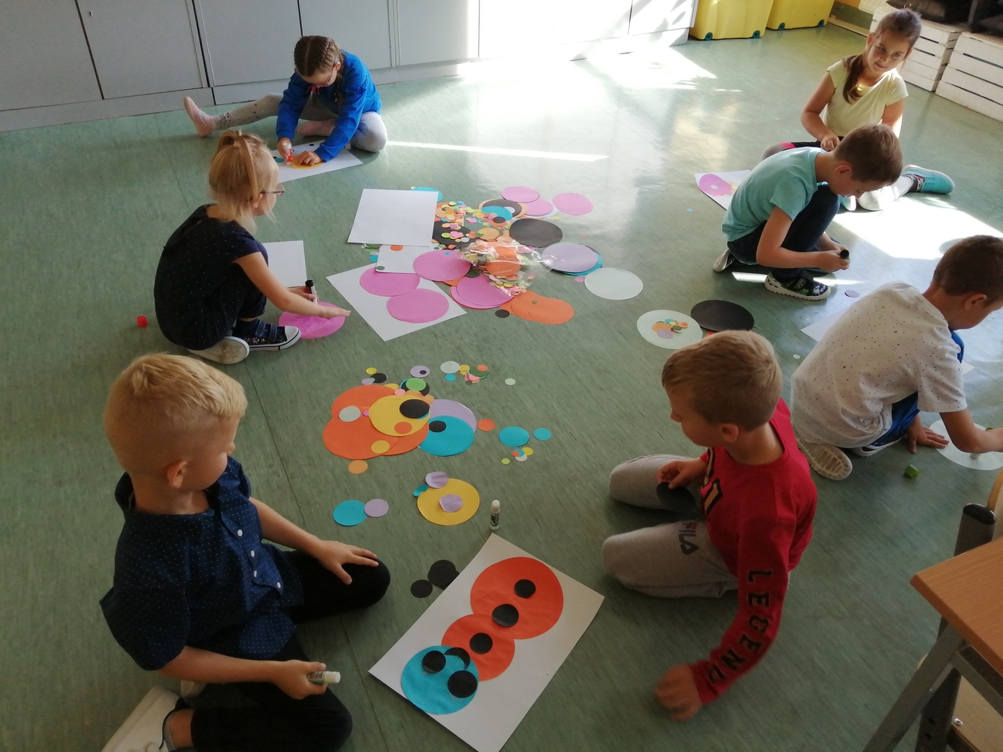 Historia Vashti z książki „The Dot” Petera H. Reynoldsa zapoczątkowała Międzynarodowy Dzień Kropki obchodzony na całym świecie 15 września. Przedszkolaki z oddziałów przedszkolnych i uczniowie klasy I w Dobrej również włączyli się w obchody święta kreatywności, talentu i odwagi w pokonywaniu trudności a kropki towarzyszyły dzieciom przez cały dzień. Obchody Dnia Kropki rozpoczęliśmy właśnie od poznania losów małej Vashti, która dzięki kropce uwierzyła w siebie. Historia ta uświadomiła dzieciom, że każdy z nich ma jakieś ukryte talenty, które gdzieś drzemią głęboko i czekają na ich odkrycie. Kropki królowały nie tylko na ubraniach, ale również w zabawach ruchowych, dydaktycznych i podczas tworzenia kropkowych, fantazyjnych obrazków.