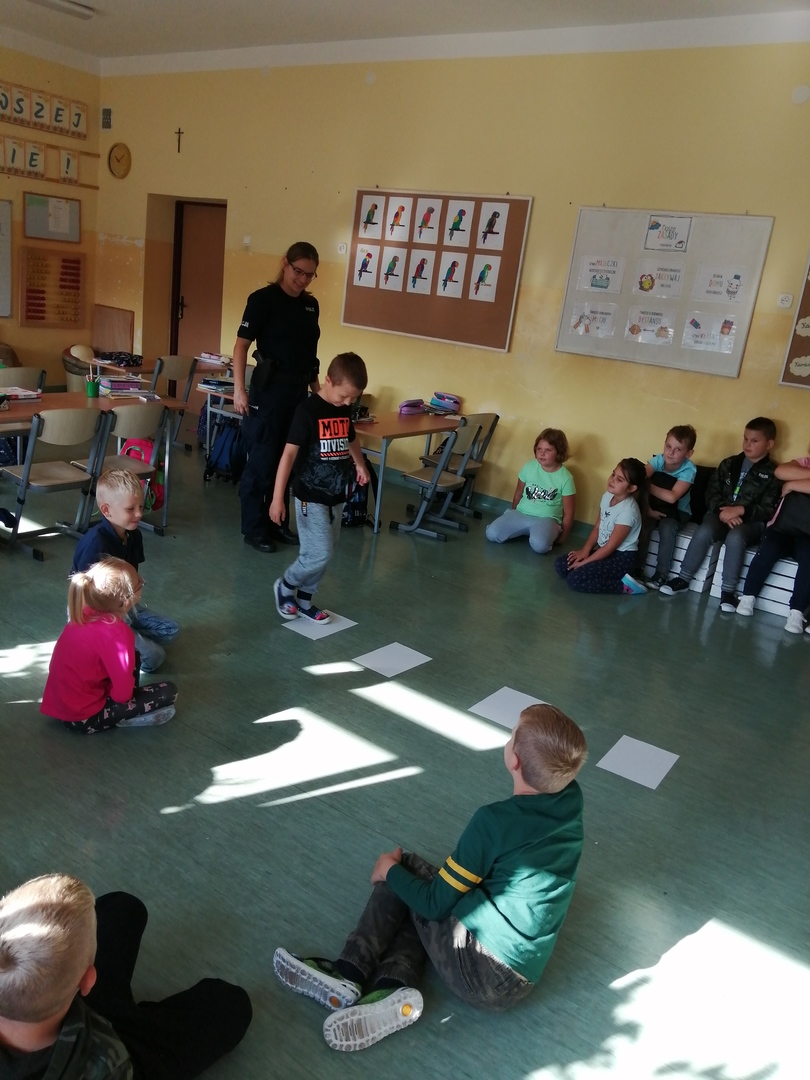 Uczniowie bardzo aktywnie uczestniczyli w spotkaniu, zadawali wiele pytań dotyczących bezpieczeństwa. Wykazywali się również dobra znajomością zasad przechodzenia przez jezdnię, jak również znaków drogowych.