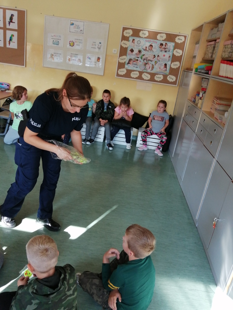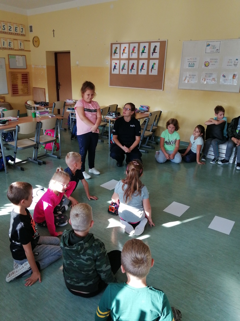 Policjanci przypomnieli zasady bezpiecznego poruszania się po drodze w przypadku, kiedy nie ma chodnika lub pobocza, prawidłowego przekraczania jezdni, zachowania w miejscach oczekiwania na przyjazd autobusów. Podkreślili także, jak ważne jest noszenie elementów odblaskowych na odzieży czy plecakach, zwłaszcza po zmroku. Przestrzegali najmłodszych przed zabawami w pobliżu jezdni.