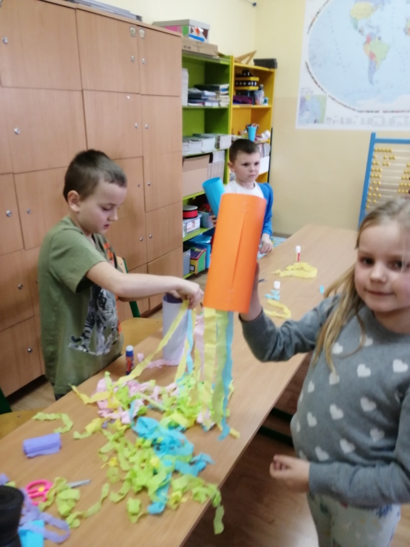 Tematyka ekologiczno – przyrodnicza realizowana jest również w formie zajęć plastycznych i technicznych, podczas których uczniowie opracowywali KODEKS MŁODEGO EKOLOGA, prowadzili kalendarz pogody, konstruowali wiatromierz oraz tworzyli obraz ćmy.