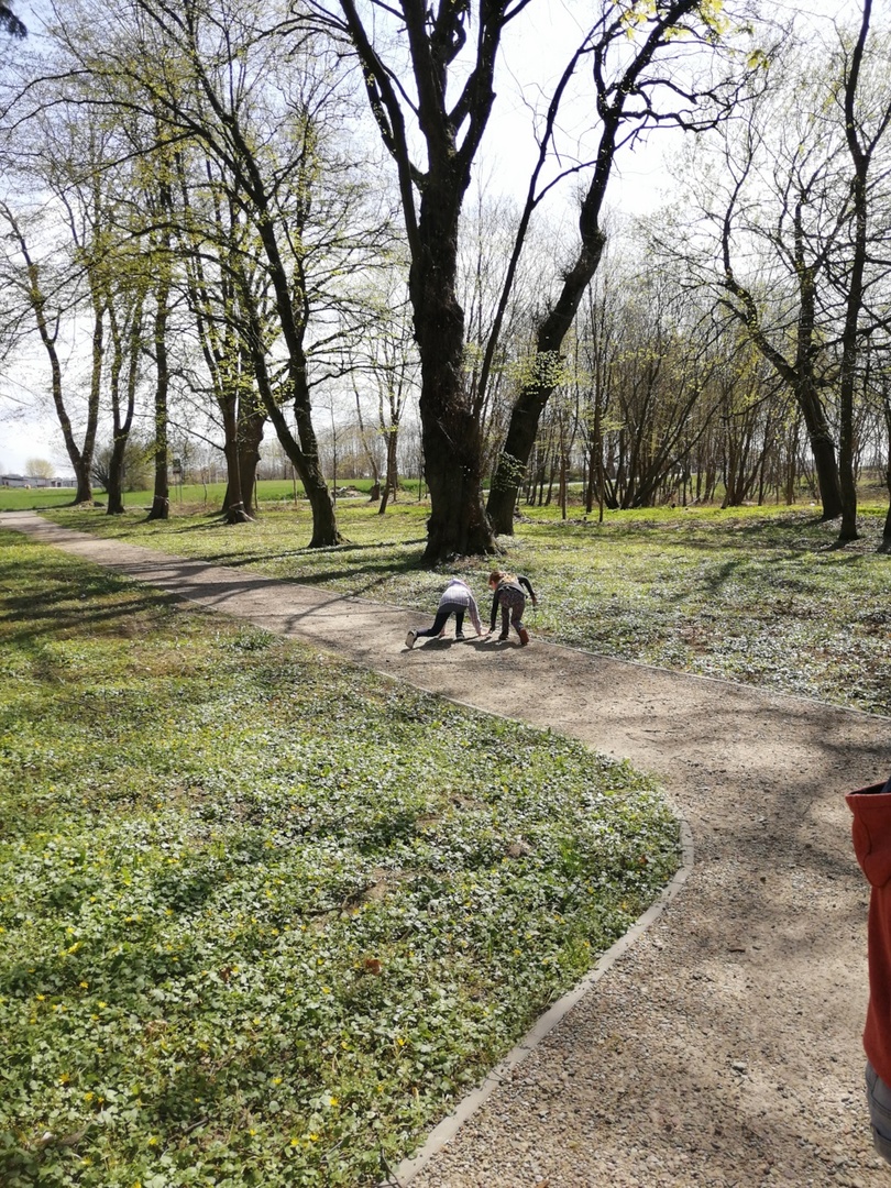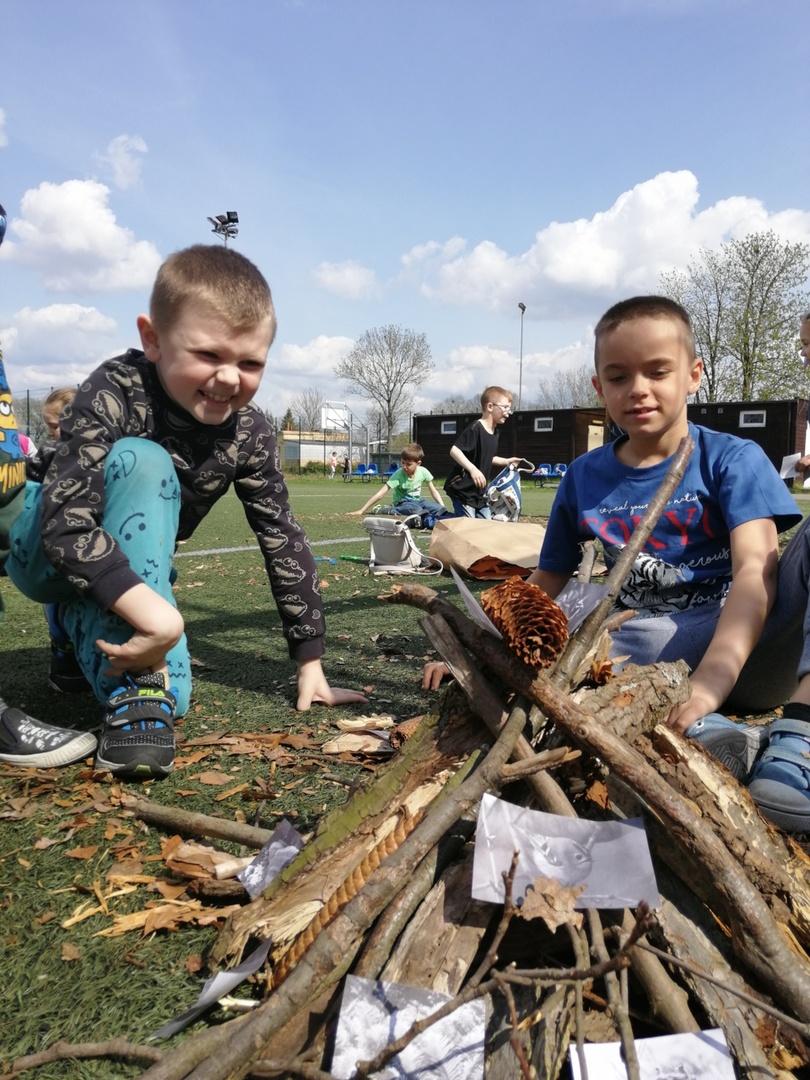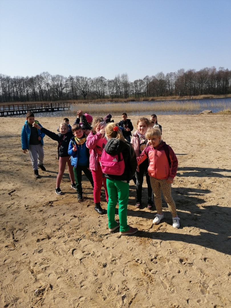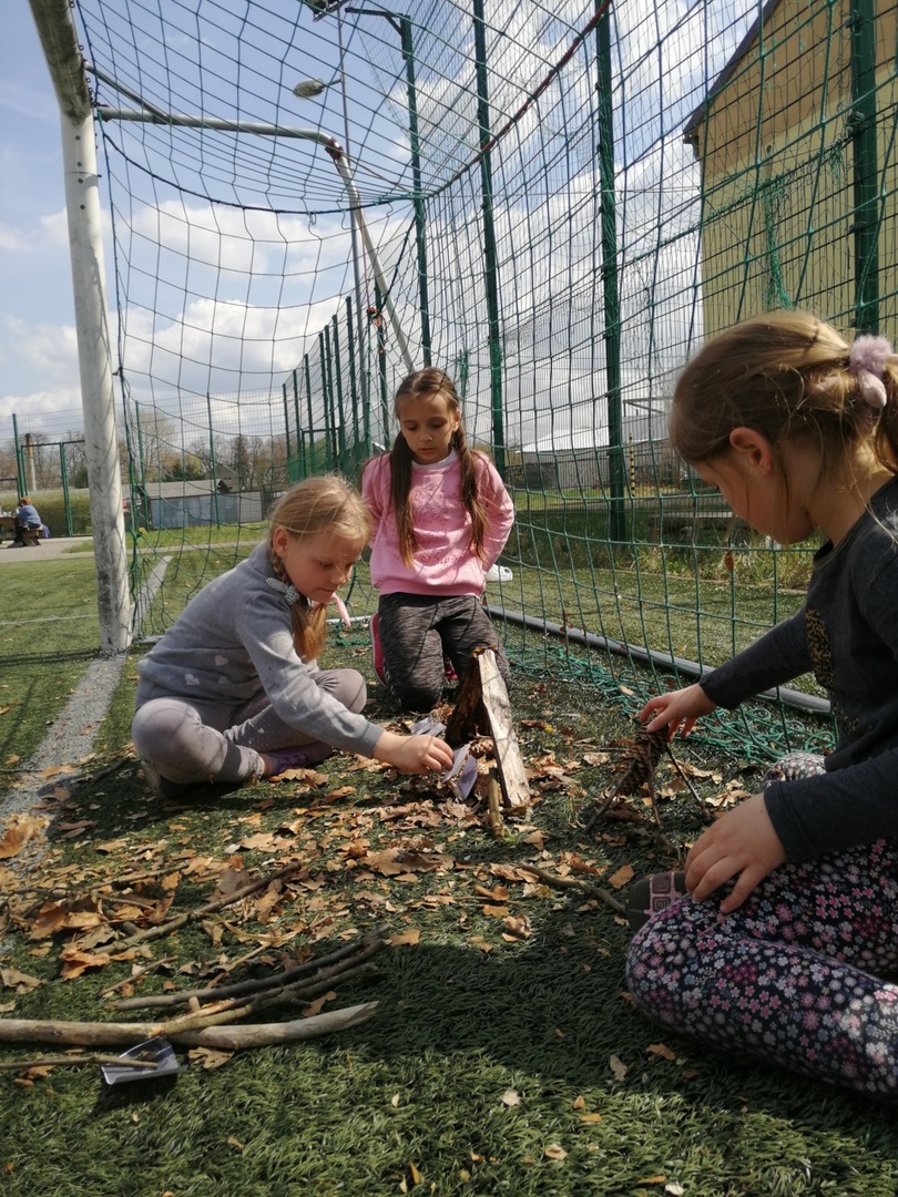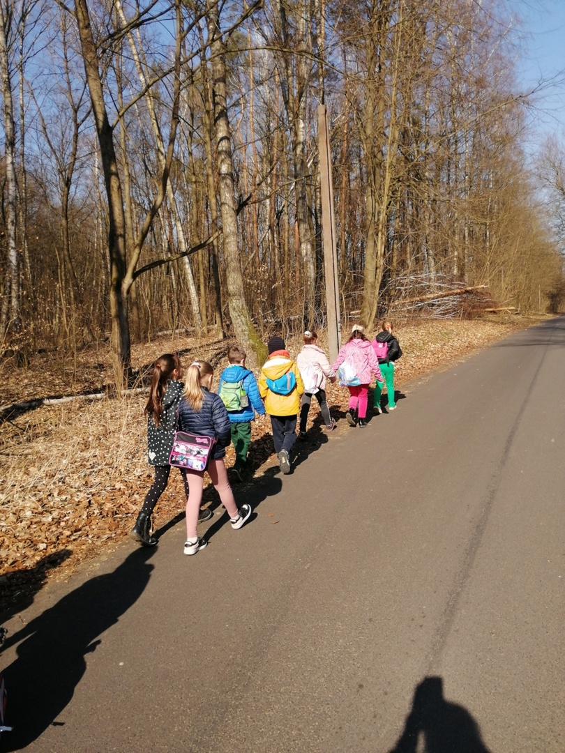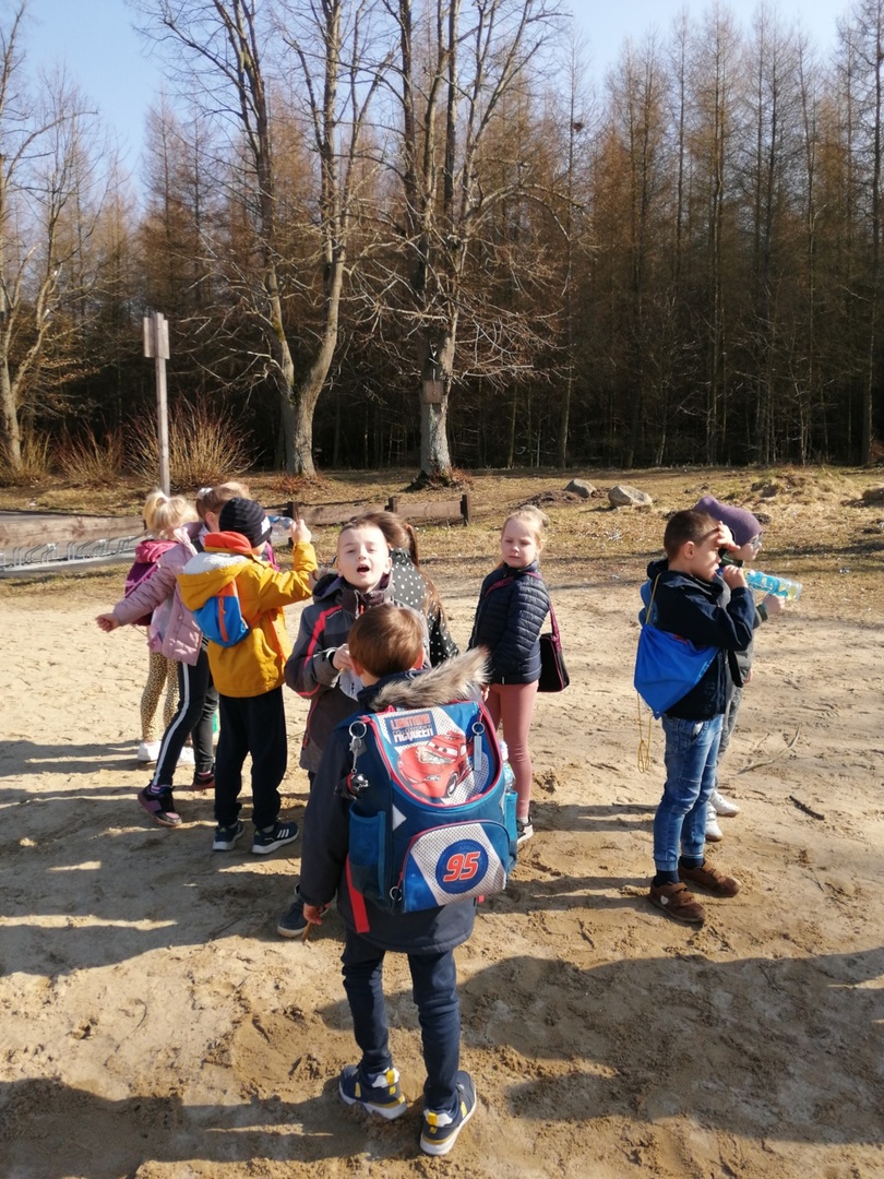 Pierwszoklasiści w sposób aktywny prowadzą obserwacje w terenie, podczas których rozpoznawają gatunki drzew i krzewów w najbliższej okolicy, szukają oznak wiosny i prowadzą obserwacje pogody.
