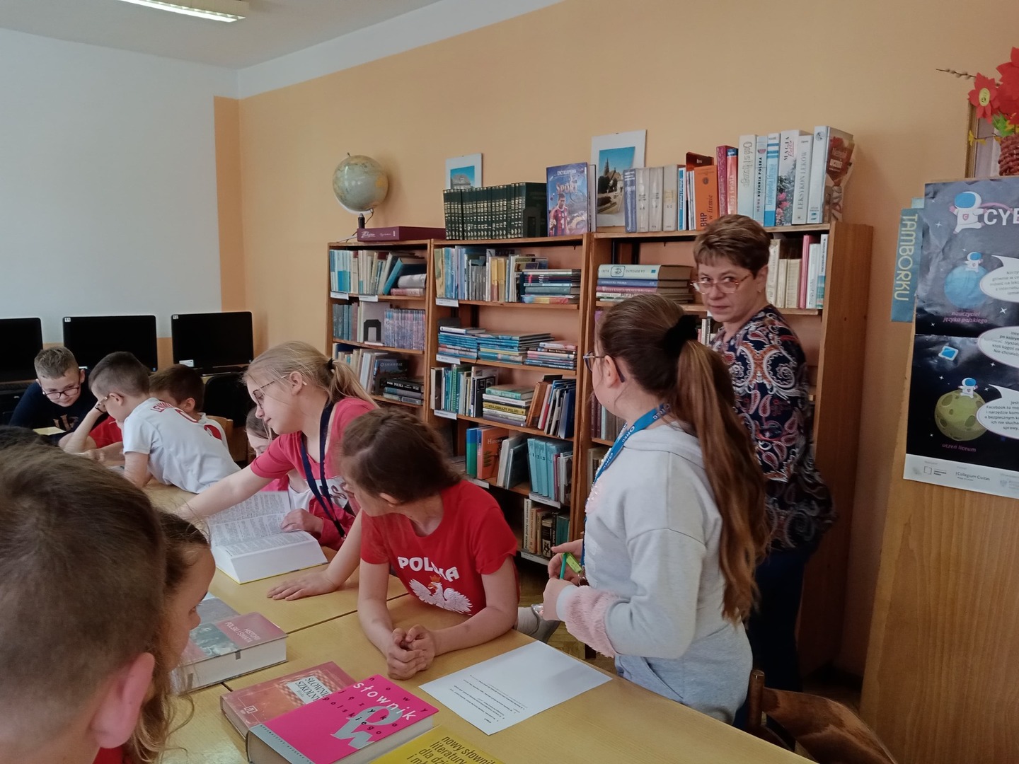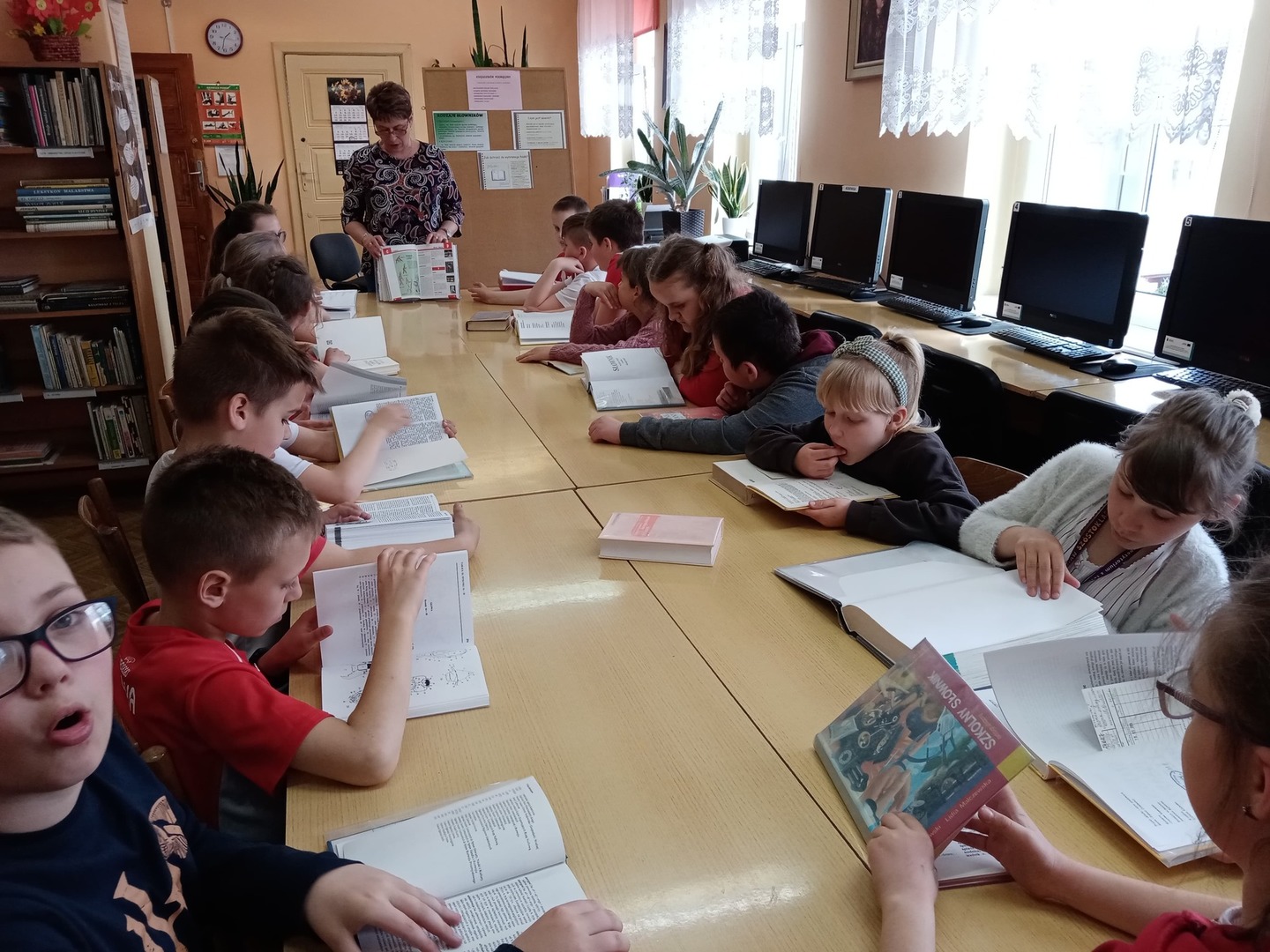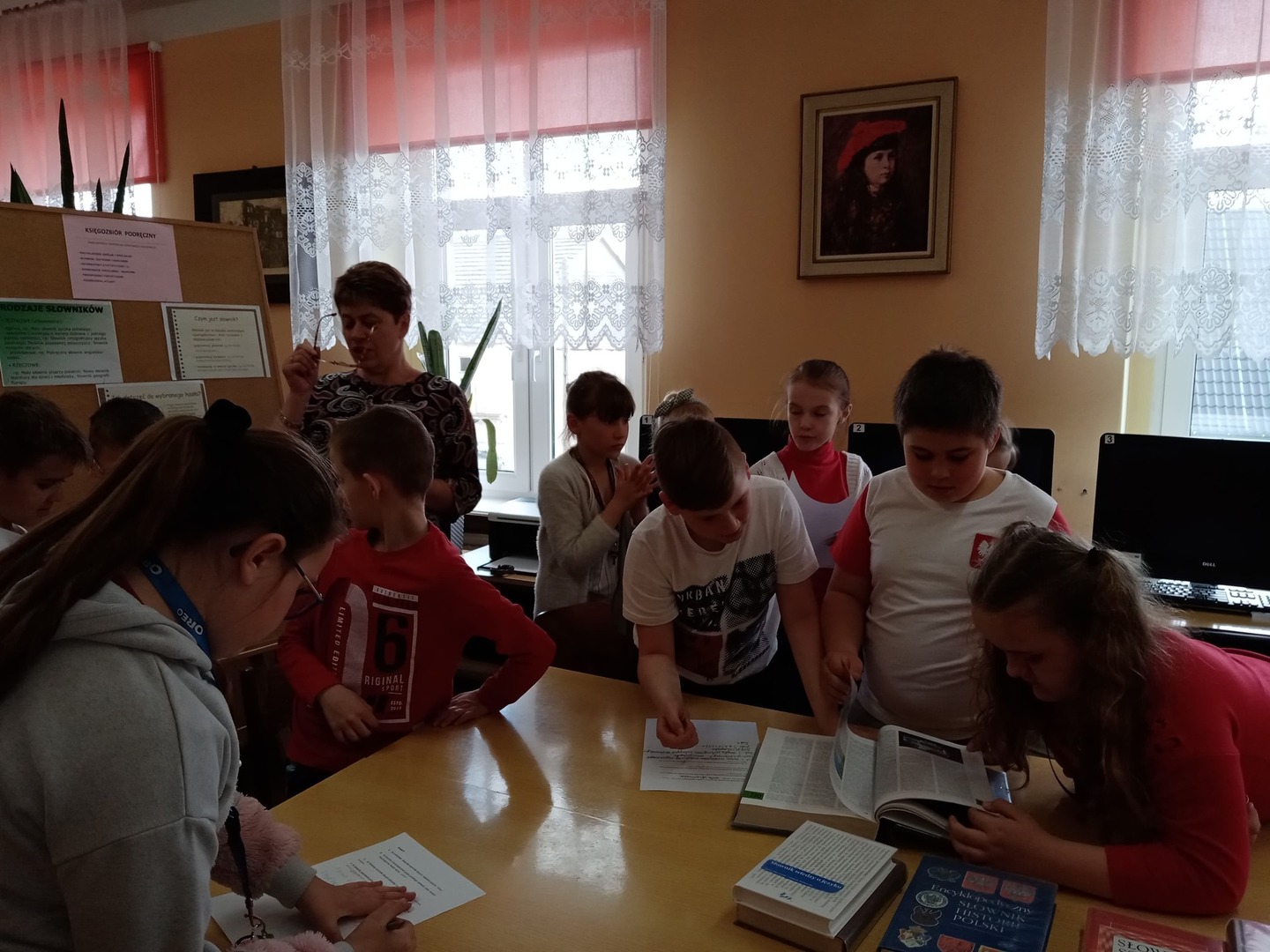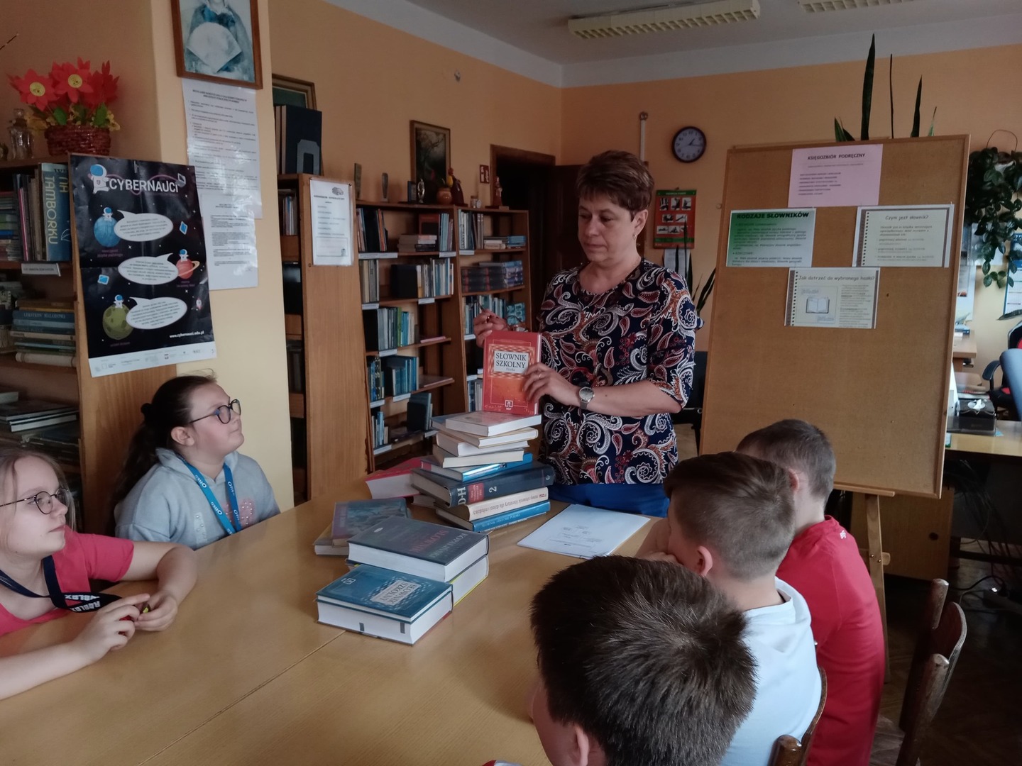 Uczniowie klasy trzeciej w ramach projektu Pomorze Zachodnie - wsparcie pedagogiczno - psychologiczne "Zabawy z ortografią" odwiedzili Bibliotekę Publiczną w Dobrej. Warsztaty przygotowała i prowadziła Pani Wiesława Mielewczyk. Uczniowie poznali różnego rodzaju słowniki, leksykony, encyklopedie, poradniki. Omawiane pozycje mogli dokładnie obejrzeć i porównać. W podsumowaniu uczniowie rozwiązywali zadania, które dotyczyły praktycznych umiejętności posługiwania się poznanymi słownikami, poradnikami itp. Wszystkie zadania zostały wykonane prawidłowo.