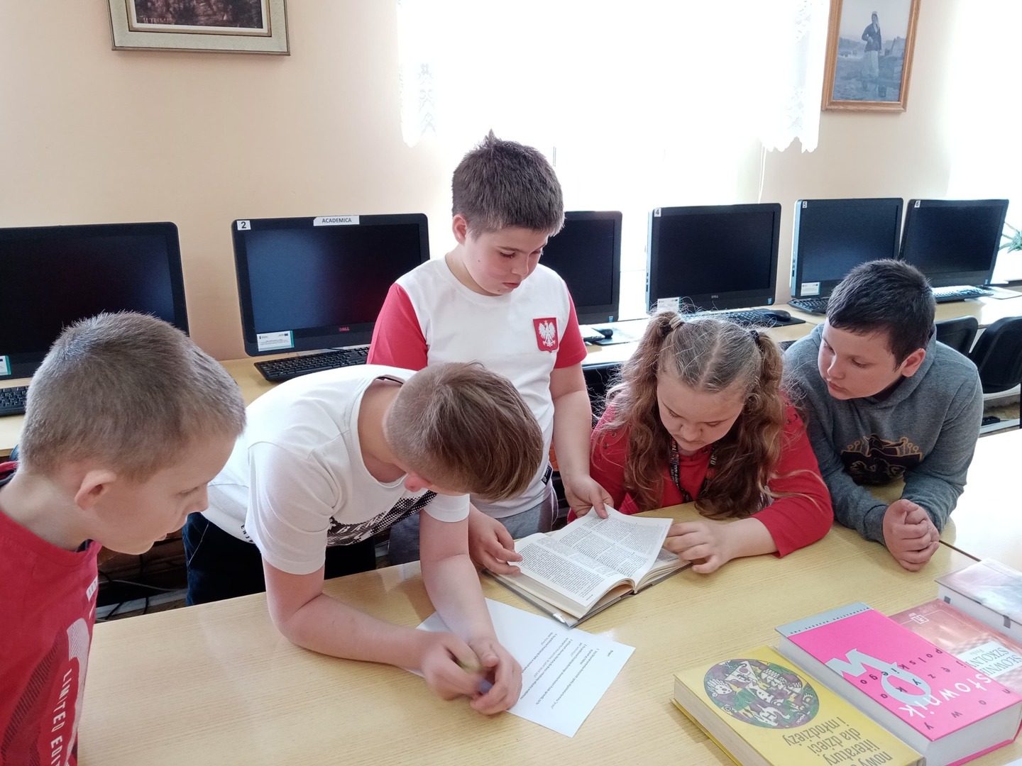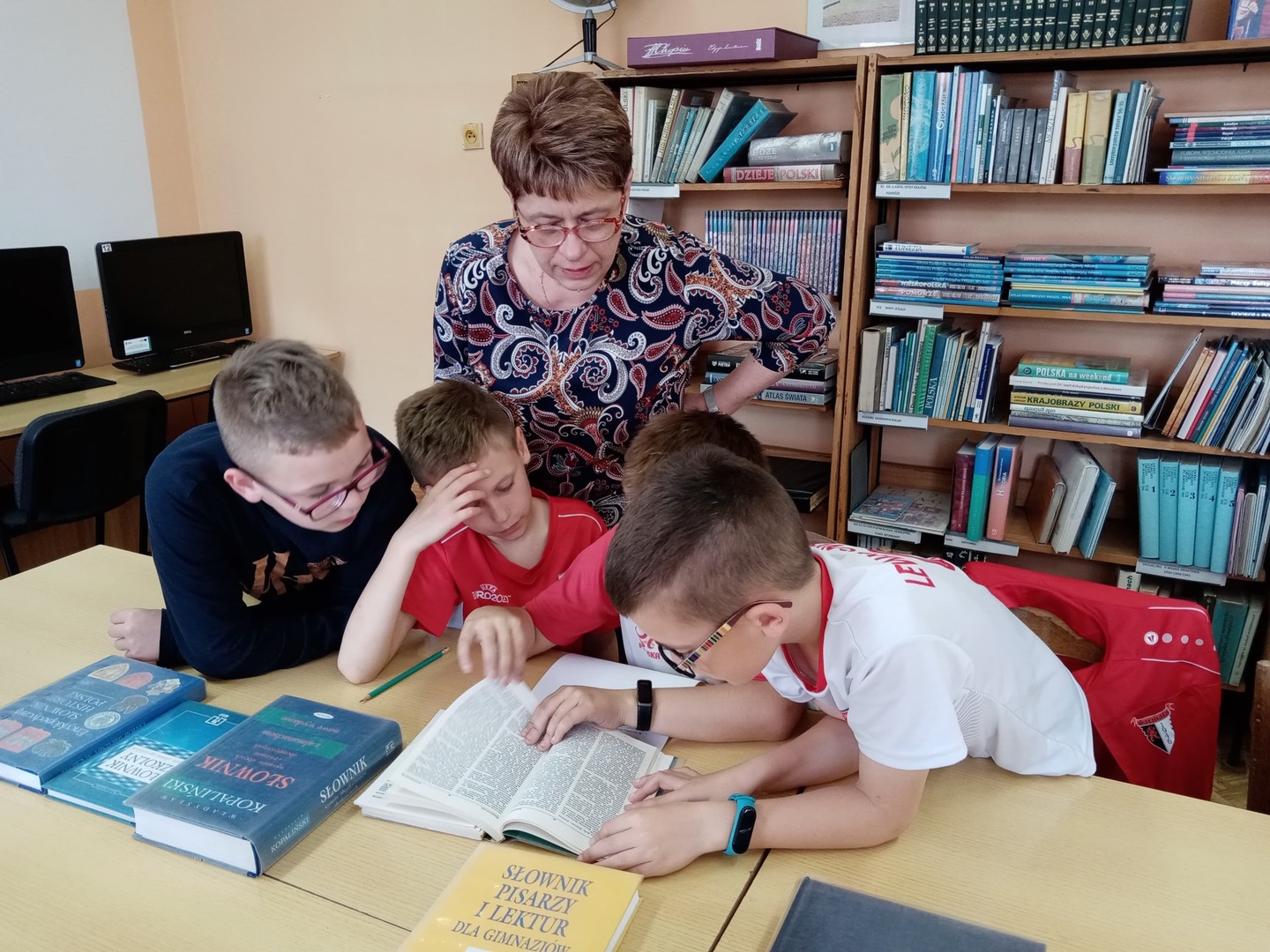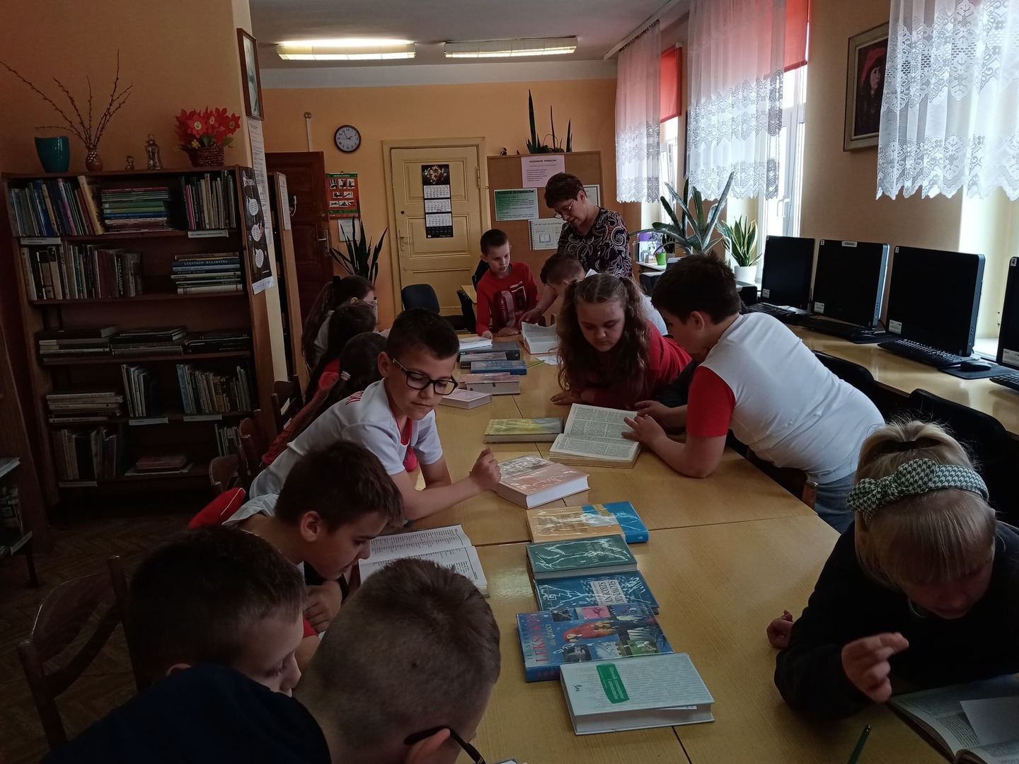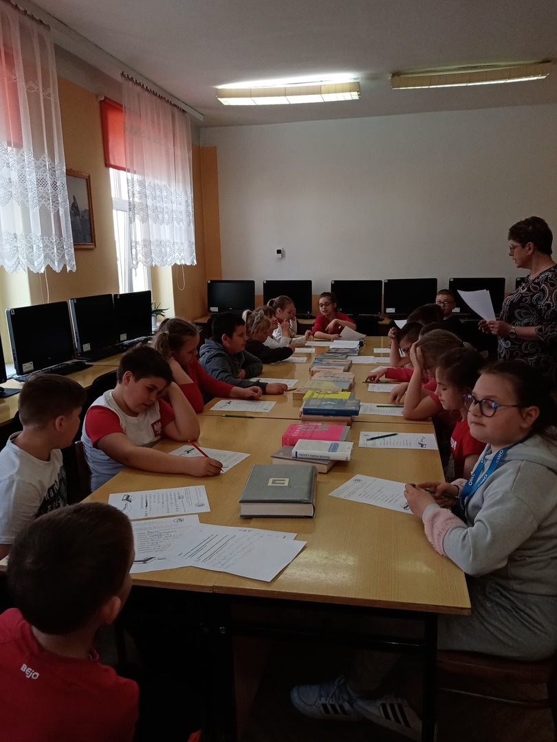 Uczniowie klasy trzeciej w ramach projektu Pomorze Zachodnie - wsparcie pedagogiczno - psychologiczne "Zabawy z ortografią" odwiedzili Bibliotekę Publiczną w Dobrej. Warsztaty przygotowała i prowadziła Pani Wiesława Mielewczyk. Uczniowie poznali różnego rodzaju słowniki, leksykony, encyklopedie, poradniki. Omawiane pozycje mogli dokładnie obejrzeć i porównać. W podsumowaniu uczniowie rozwiązywali zadania, które dotyczyły praktycznych umiejętności posługiwania się poznanymi słownikami, poradnikami itp. Wszystkie zadania zostały wykonane prawidłowo.