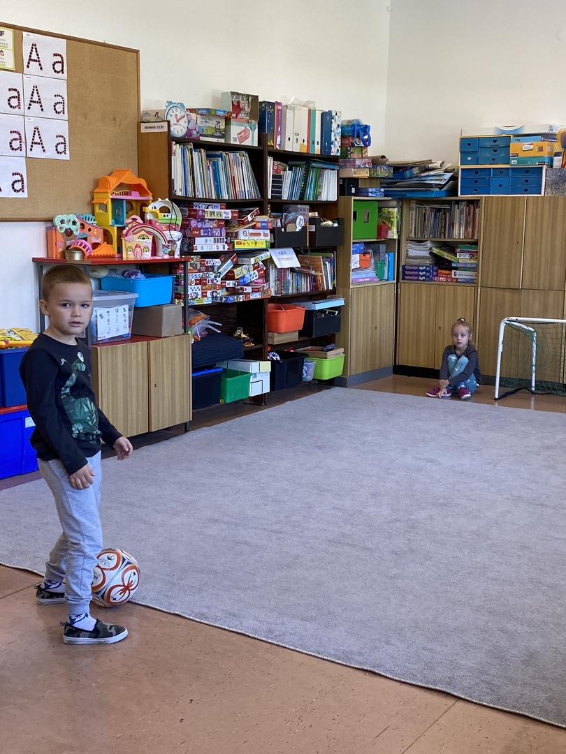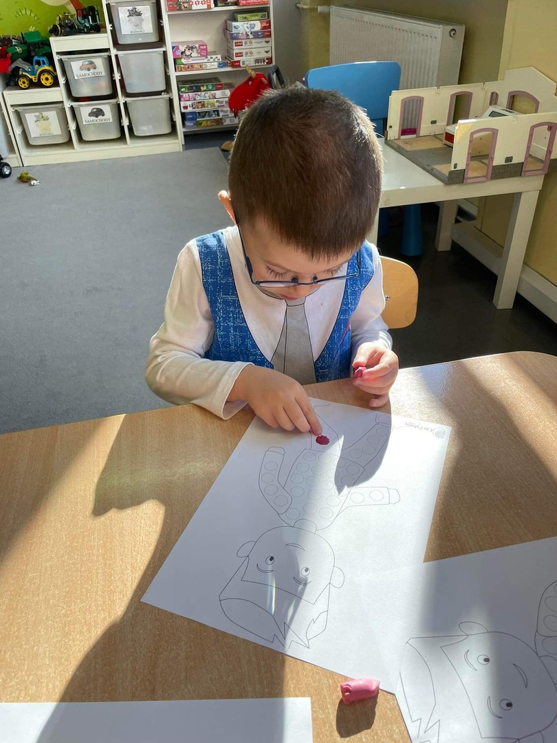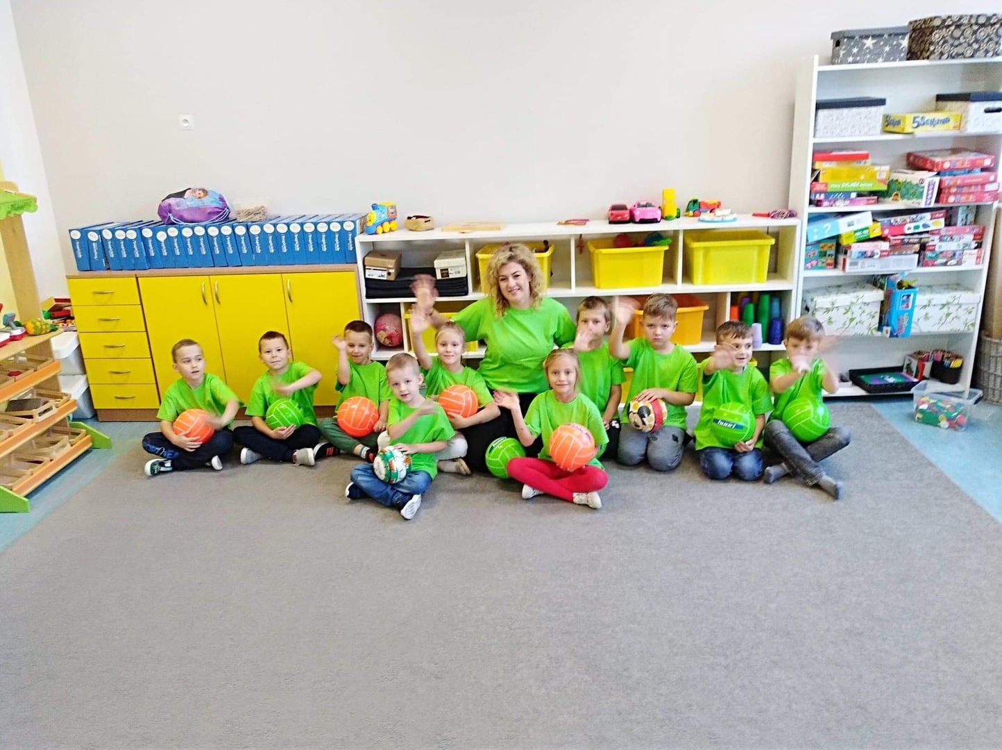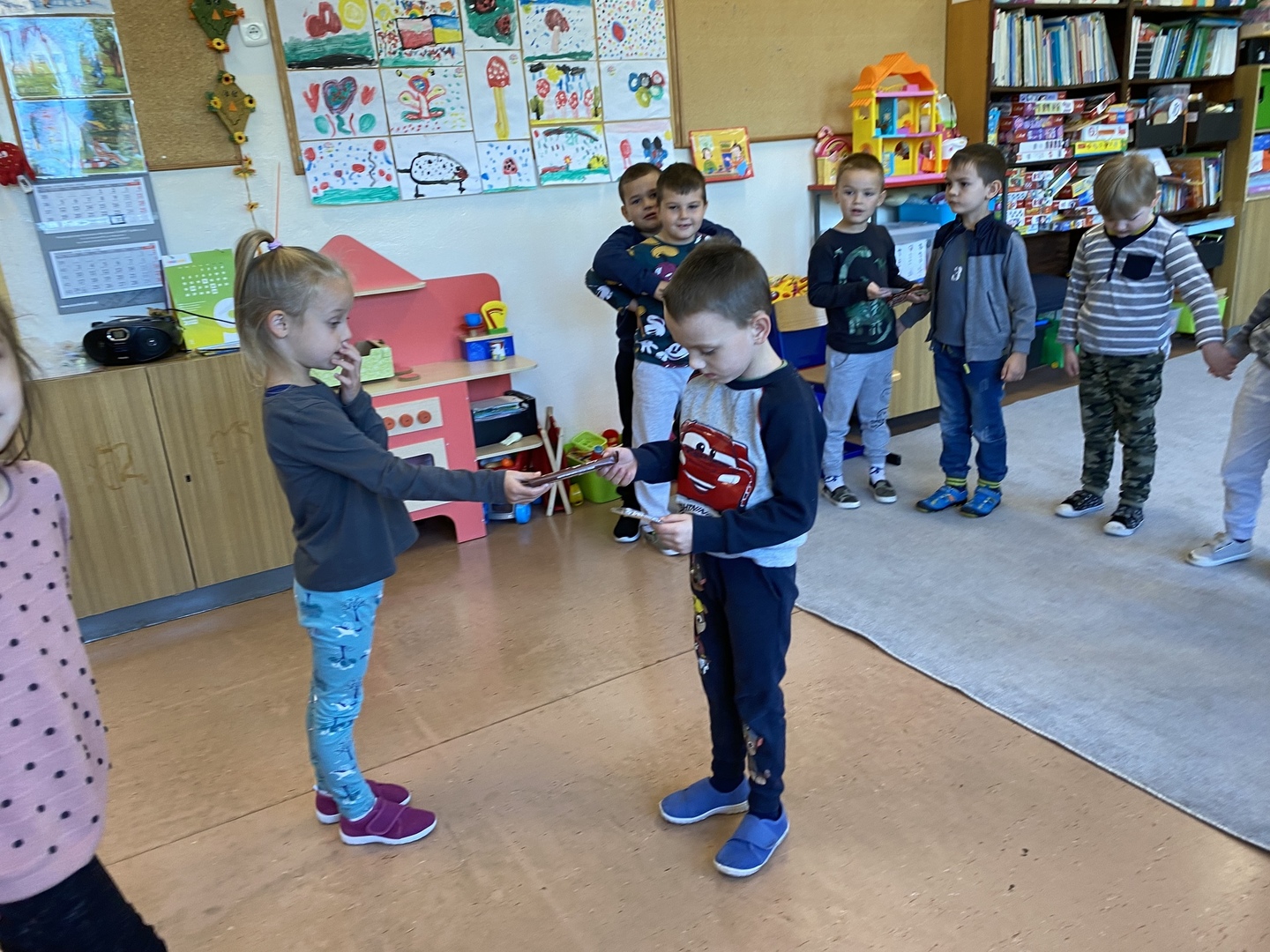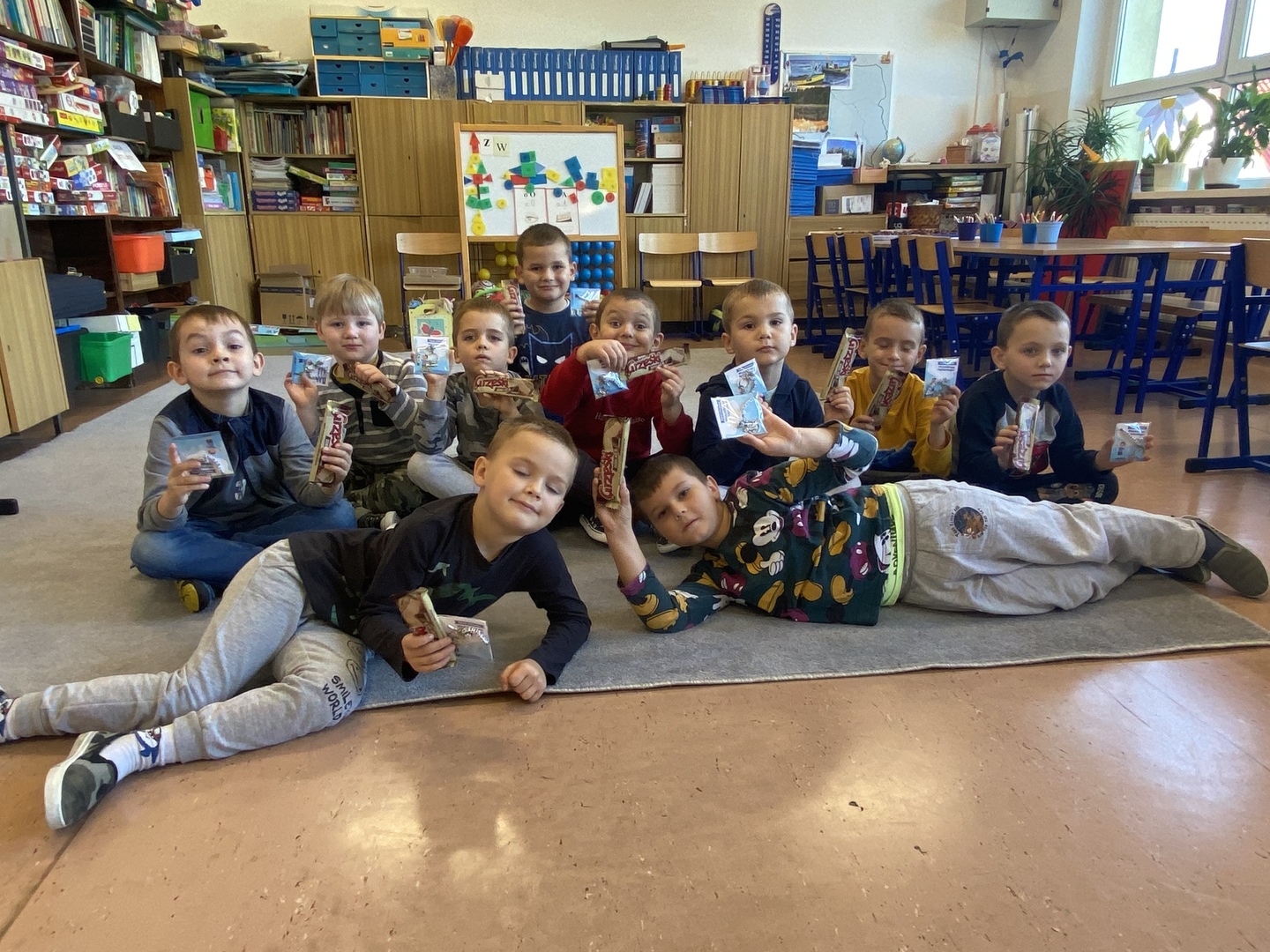 Dzień już od rana rozpoczął się nietypowo, bo od wspólnie oglądanej przez wszystkie grupy bajki. Później były życzenia od koleżanek, gromkie sto lat, wręczanie drobnych upominków przygotowanych przez rodziców i pamiątkowych dyplomów. W czasie zajęć też było trochę inaczej niż zwykle. Niektórzy zostali Supermenami, inni mogli pozować do portretu wykonywanego przez koleżankę lub sami się sportretować. Część chłopców miała okazję poćwiczyć strzały na bramkę i popróbować sił podczas siłowania się na rękę.
