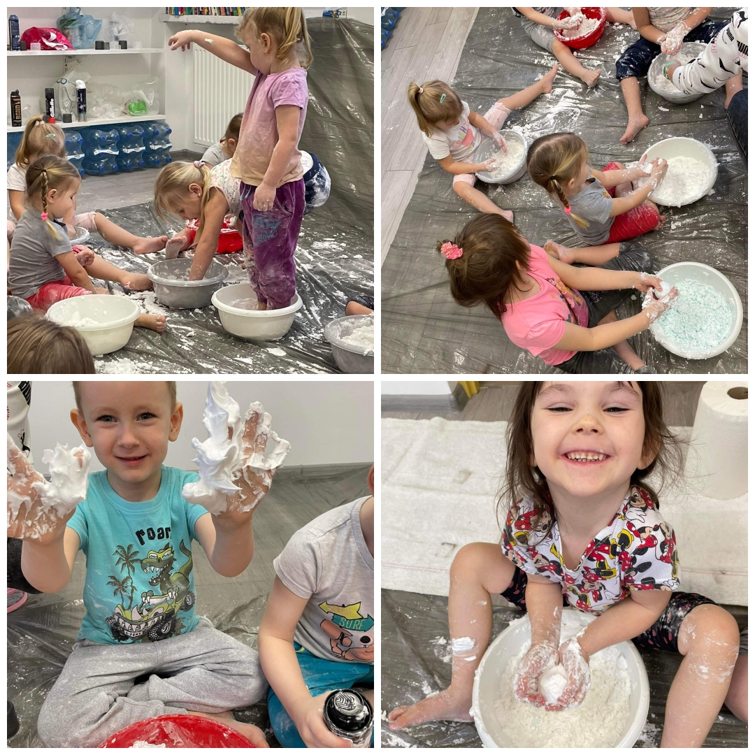 Za oknem śniegu brak, dlatego dzieci zrobiły swój własny i nietopniejący śnieg 😊 ❄️🐞🫐