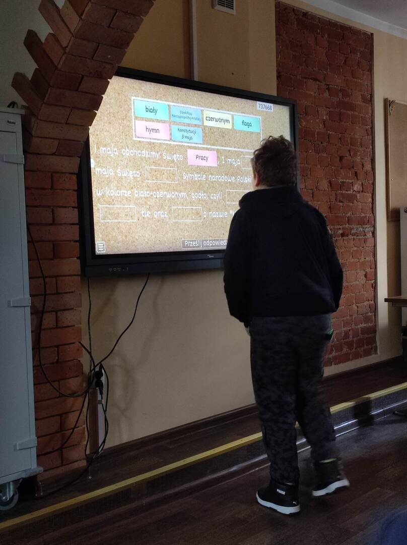 Już za kilka dni będziemy obchodzić ważne majowe święta, dlatego też uczniowie pochodzący z Ukrainy mieli okazję uczestniczyć w dodatkowych zajęciach języka polskiego z wykorzystaniem pomocy zakupionych w ramach projektu „Aktywna Tablica”.