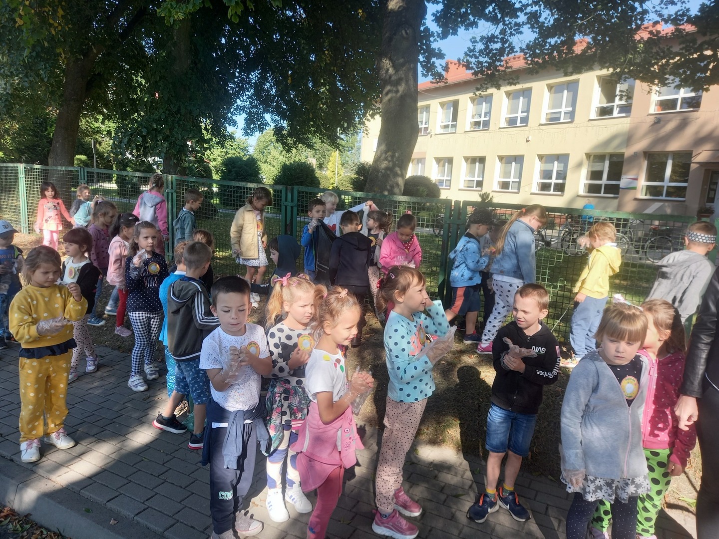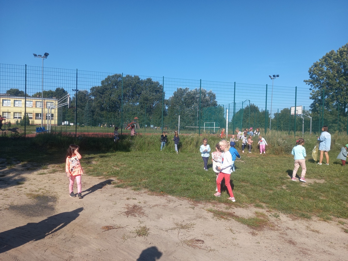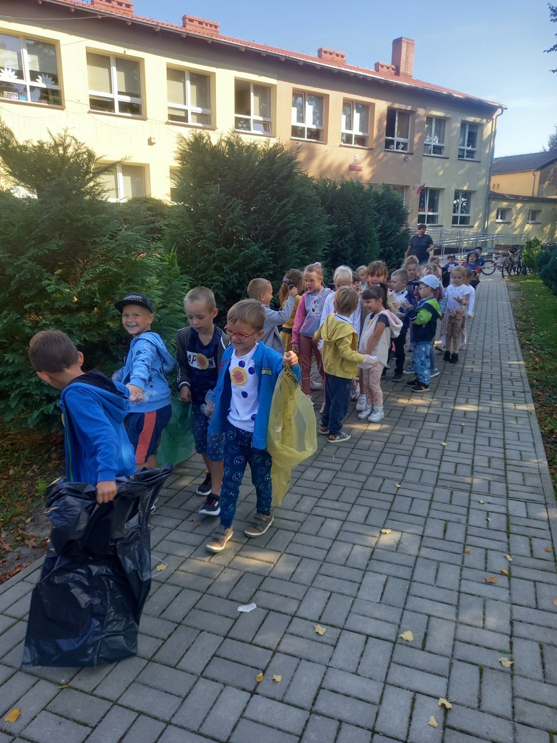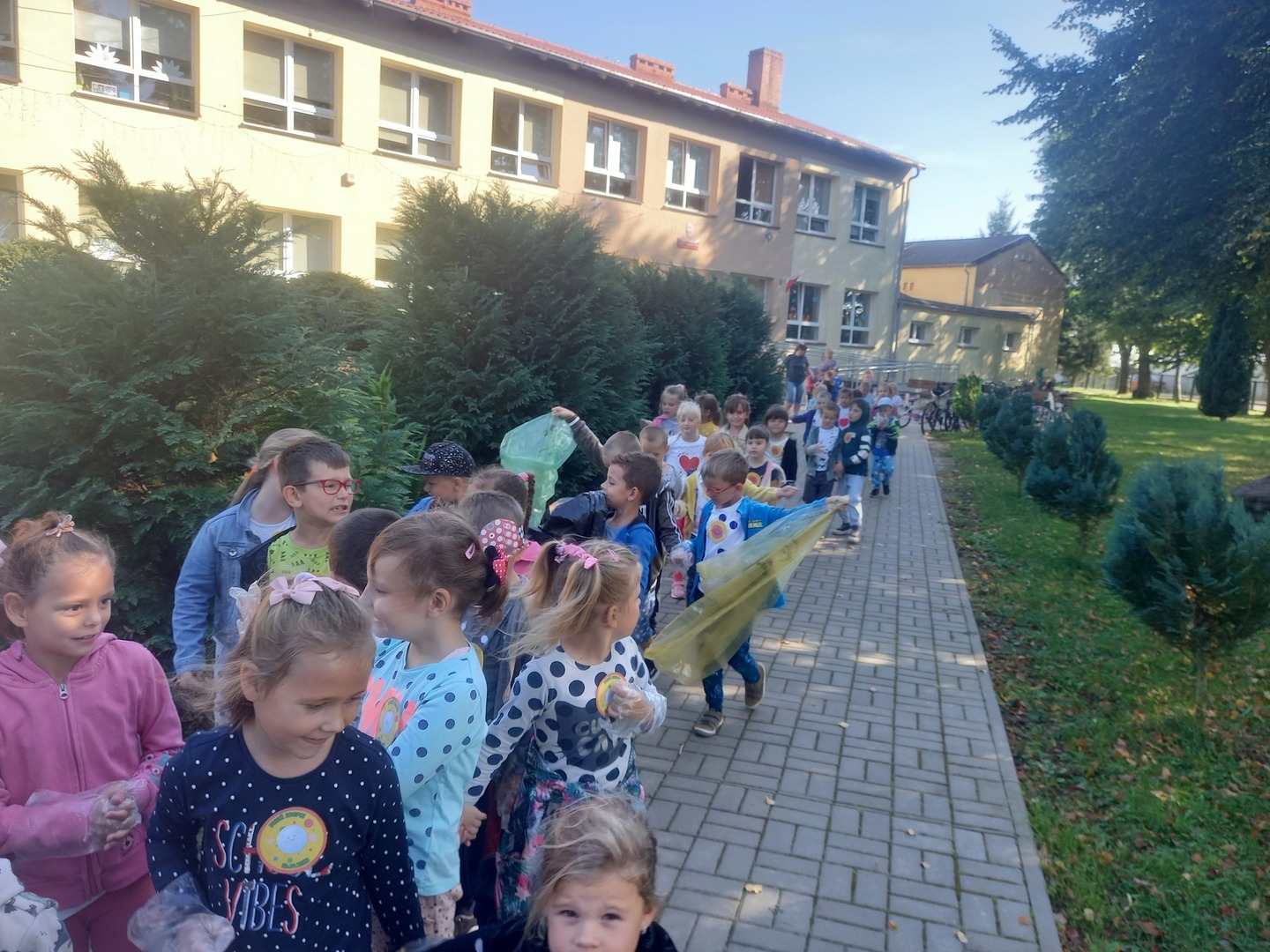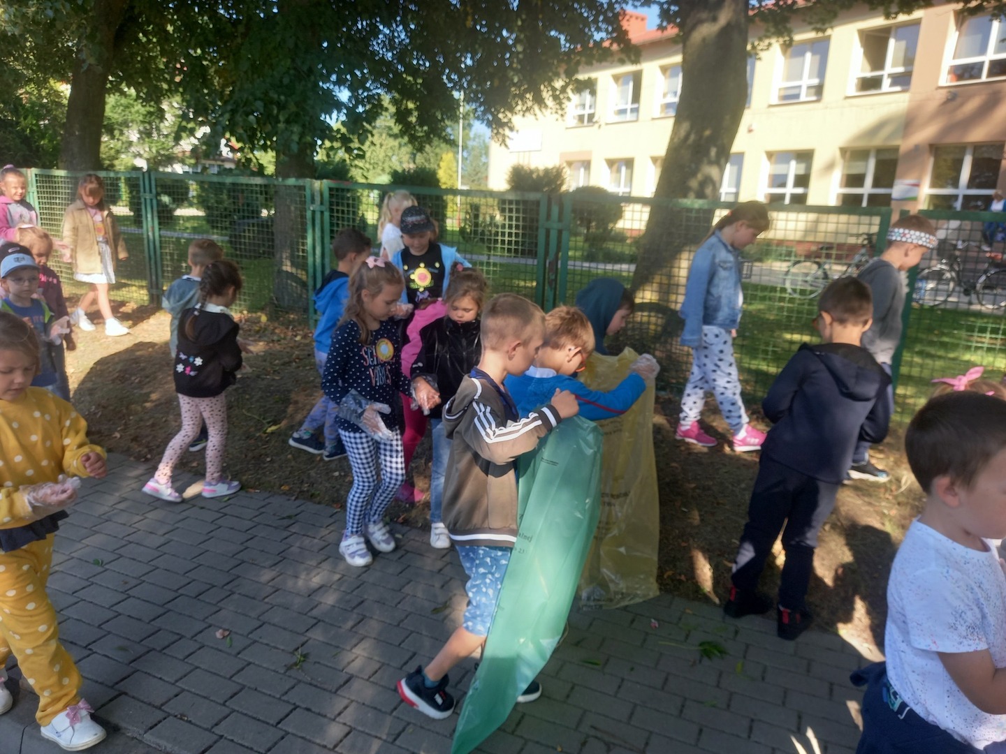 Tradycyjnie jak co roku przedszkolaki uczestniczyły w Akcji Sprzątania Świata, której celem jest promowanie od najmłodszych lat zasad dbania o środowisko. Dzieci z chęcią i radością włączyły się do akcji by posprzątać „swój mały świat ” czyli najbliższe otoczenie wokół szkoły. Przedszkolaki wyruszając na akcję otrzymały rękawiczki i worki na śmieci. Akcja odbyła się w formie zabawy, dzieci dowiedziały się, że należy dbać o przyrodę, chronić ją, by korzystać z jej uroków. Coroczna akcja Sprzątania Świata jest świetną okazją, aby uświadomić dzieciom jak wiele dobrego człowiek może zrobić dla środowiska poprzez właściwe zachowanie.