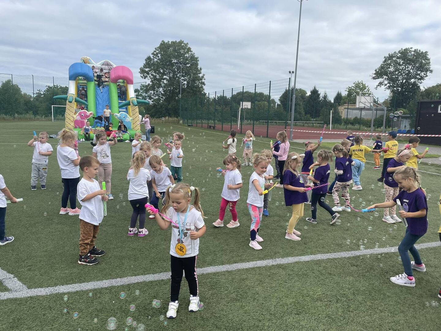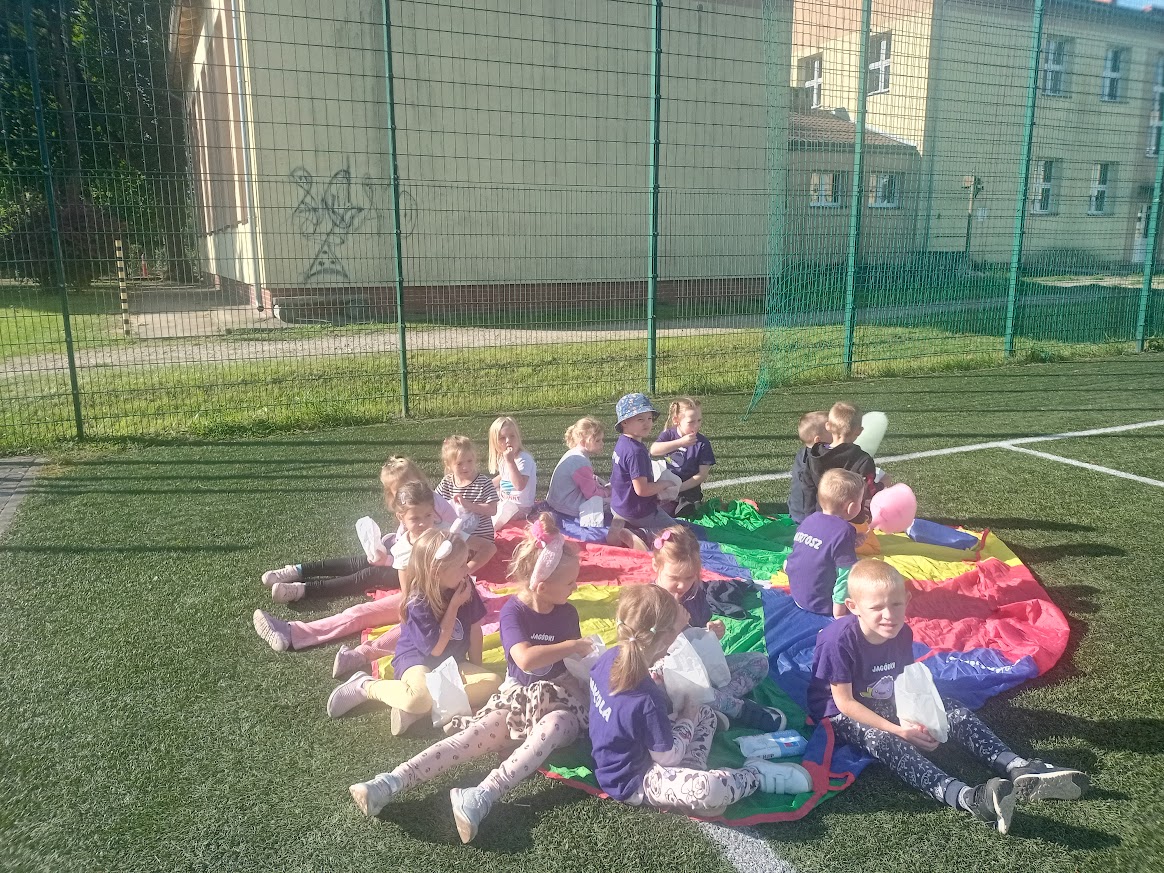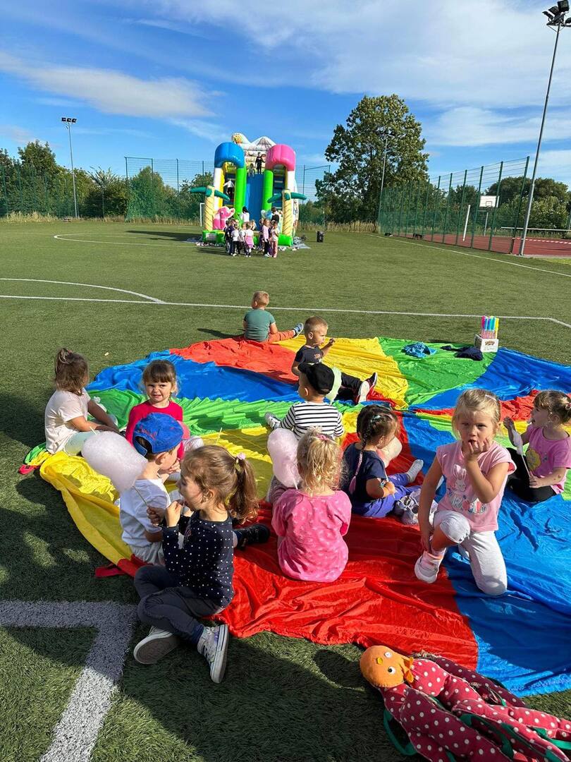 Nasze Słoneczka ☀️, Biedronki 🐞, Jagódki 🫐, Pszczółki 🐝 i zerówiaki także obchodziły to święto. Oprócz zabaw w swoich grupach, dzieci mogły cieszyć się zamkiem dmuchanym, zjeść watę cukrową i popcorn oraz napić się przepysznej lemoniady. Na koniec atrakcji wszystkie przedszkolaki wspólnie puszczały bańki mydlane 🫧🫧
