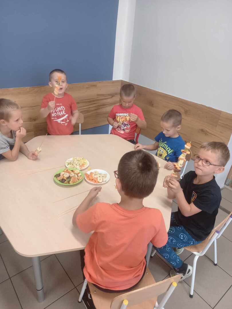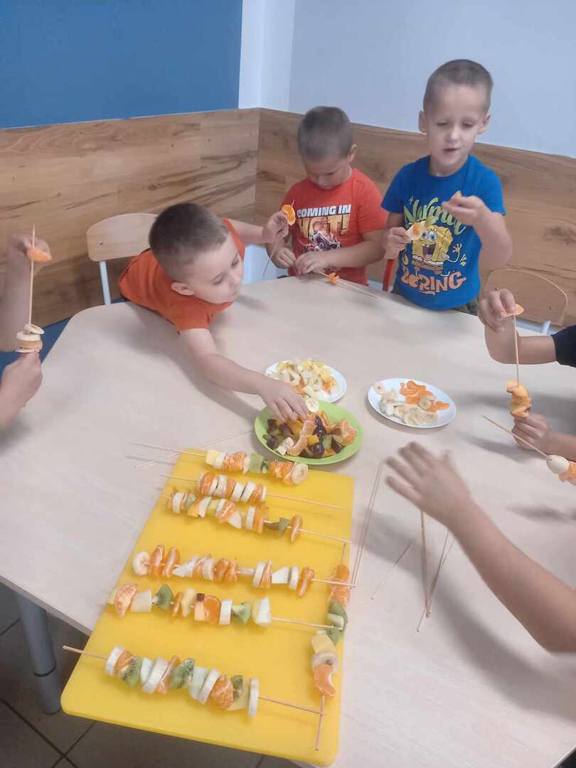 Ostatnie dni w grupie Pszczółki mijały pod znakiem owoców w sadzie. Dzieci polisensorycznie zapoznały się z różnymi owocami, wzięły udział w zabawach ruchowych i matematycznych. Pszczółki ochoczo rozwiązywały zagadki, wykonywały ćwiczenia oraz samodzielnie przygotowały pyszne i zdrowe szaszłyki owocowe. Zdrowa rywalizacja, w którą wplecione zostały treści programowe, to świetny sposób na ciekawą zabawę i naukę.