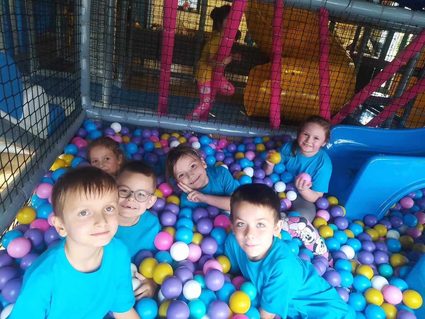 W piątek, 27 października dzieci z oddziałów zerowych wyruszyły na wycieczkę do sali zabaw "Kraina zabawy" w Nowogardzie. Celem naszej wycieczki była przede wszystkim integracja rówieśniczych grup, rozwijanie motoryki dużej i małej dzieci oraz stworzenie możliwości radosnego spędzenia czasu. W sali zabaw przedszkolaki mogły skorzystać z licznych atrakcji, m.in. z basenu z tysiącem kulek, tuneli, zjeżdżalni, kącików zabawy. Każdy bez trudu znalazł coś dla siebie. Zadowolone, nieco zmęczone, pełne wrażeń dzieci wróciły do Przedszkola.