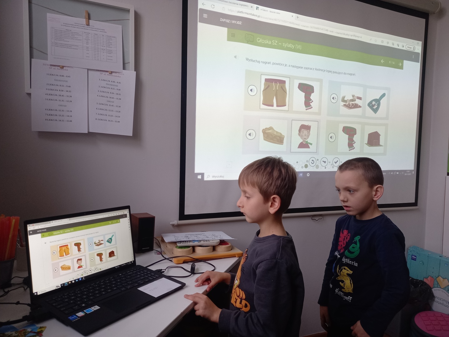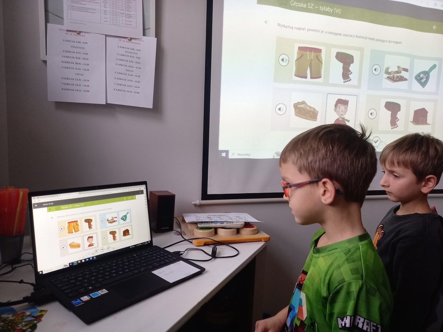 Zajęcia logopedyczne z wykorzystaniem tablicy interaktywnej z programu Aktywna Tablica, edukacyjnych platform internetowych oraz programów z serii mTalent przyczyniają się do wyrównywania szans edukacyjnych, większego zaangażowania dzieci, rozwijania kompetencji komunikacyjnych i informatycznych. Uczniowie poprzez radosną zabawę uczą się i poszerzają swoją wiedzę.