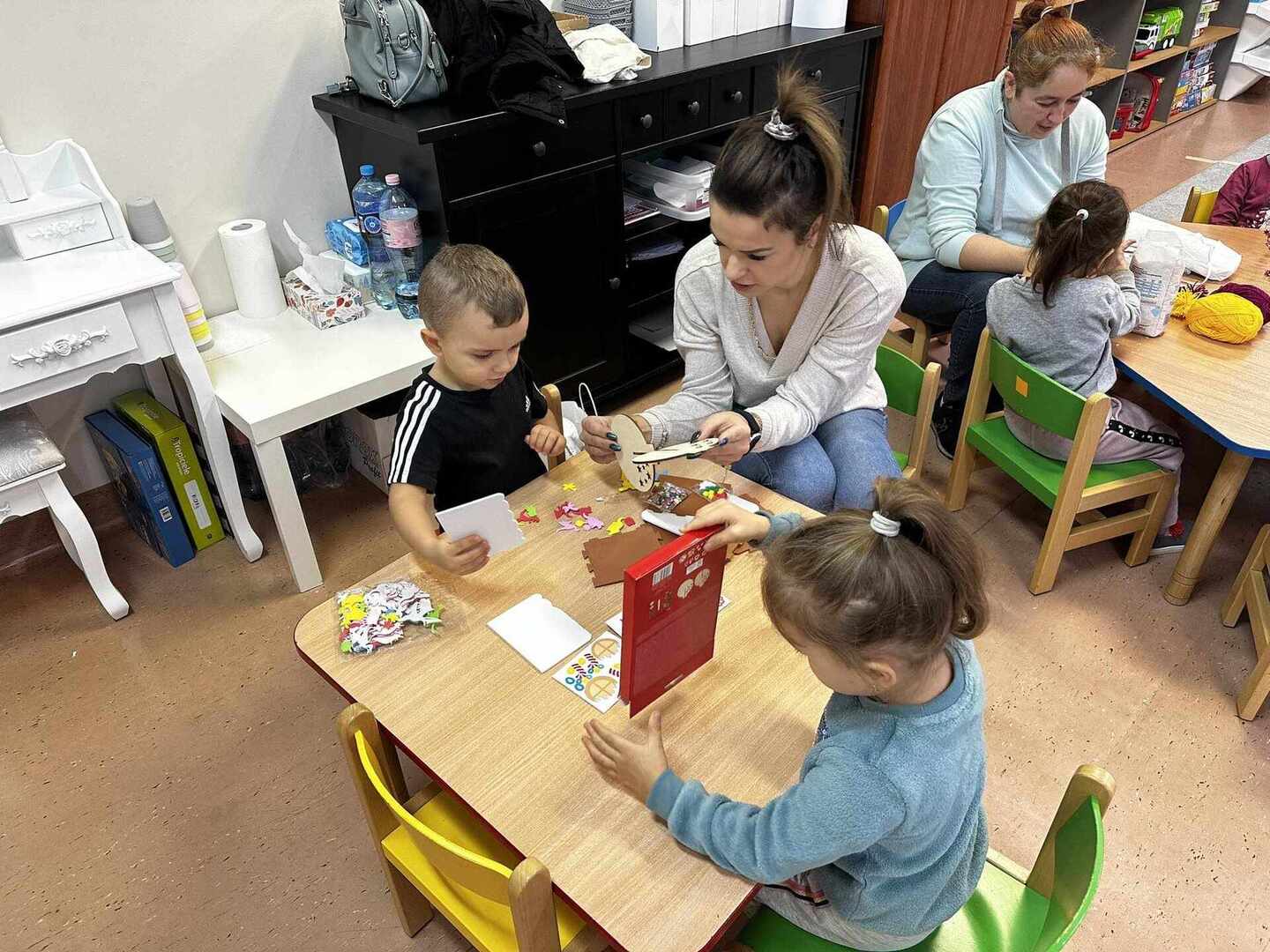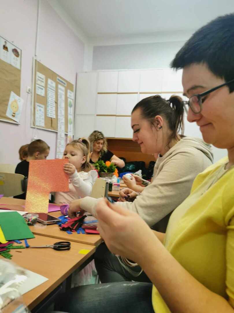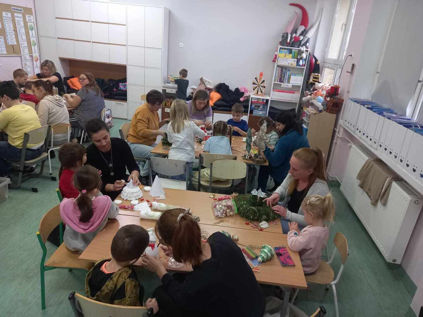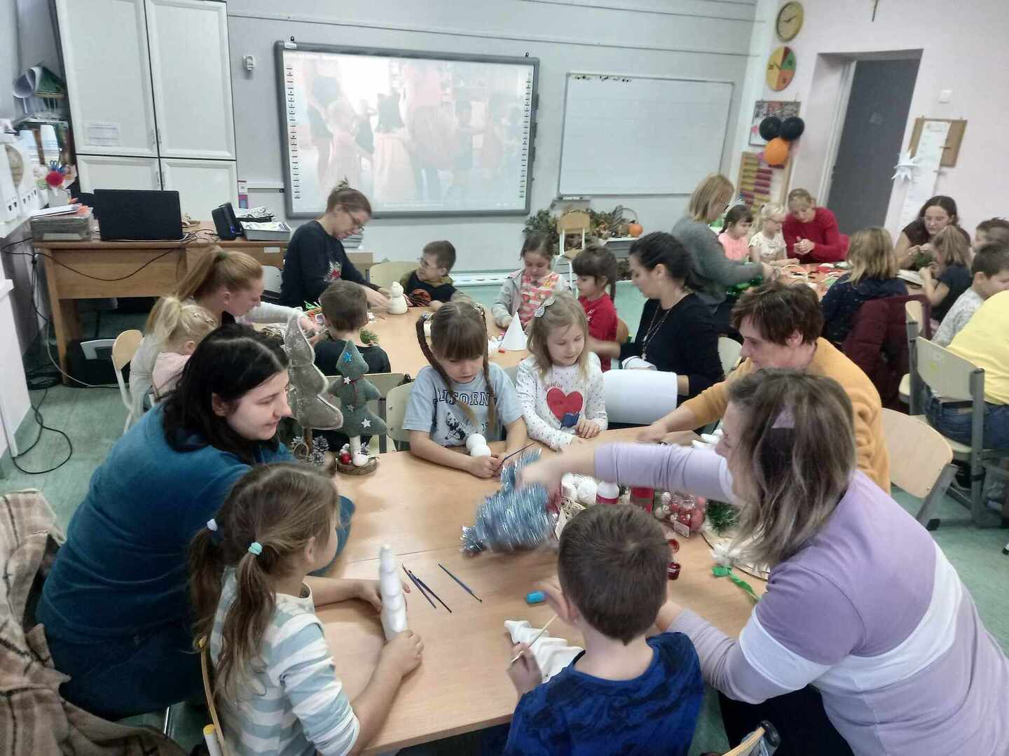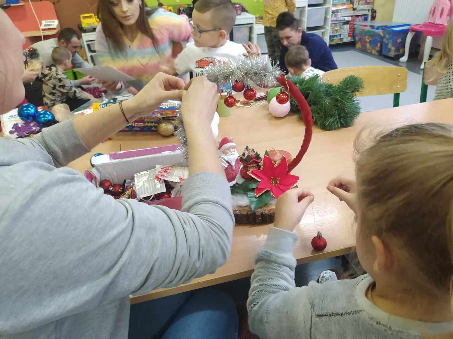 Celem warsztatów było rozbudzanie aktywności dzieci i rodziców, odczuwanie więzi emocjonalnej z rodziną i przywiązania do najbliższych, rozwijanie zdolności i odczuwanie radości z podejmowanej aktywności umysłowej i plastycznej. Rodzice i dzieci z zapałem wykonywali na kiermasz bożonarodzeniowy piękne ozdoby, stroiki, aniołki, gwiazdki, bombki, choinki, itp., wykazując przy tym wiele pomysłowości i kreatywności.
