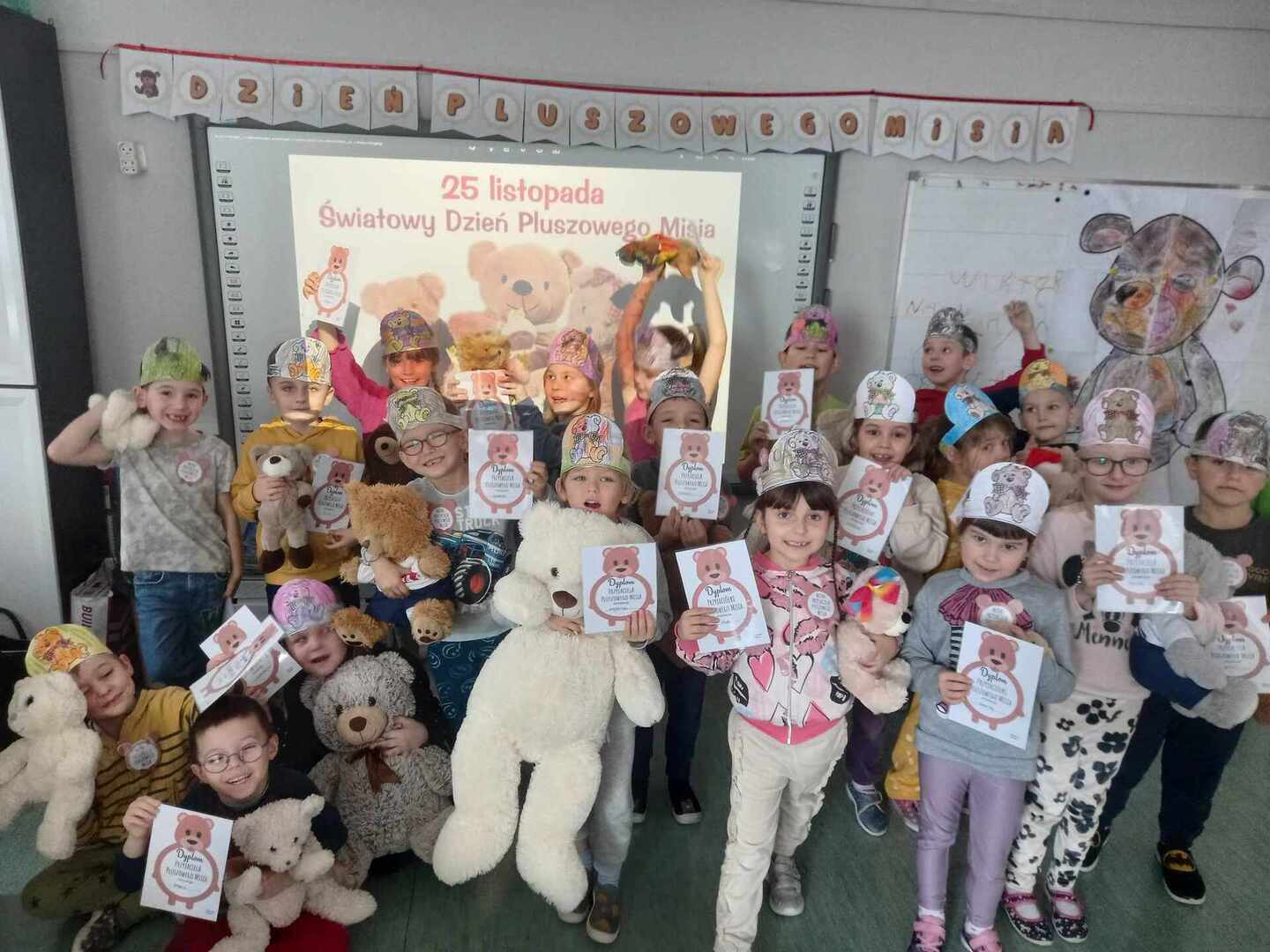 Już w piątek w naszych oddziałach przedszkolnych wszystkie dzieci uczciły ten dzień śpiewem, przygotowaniem prac plastycznych i różnym zabawami związanymi z misiami. Każde dziecko przyszło do przedszkola ze swoim małym lub dużym przyjacielem- misiem. A każdy był piękny i wyjątkowy.