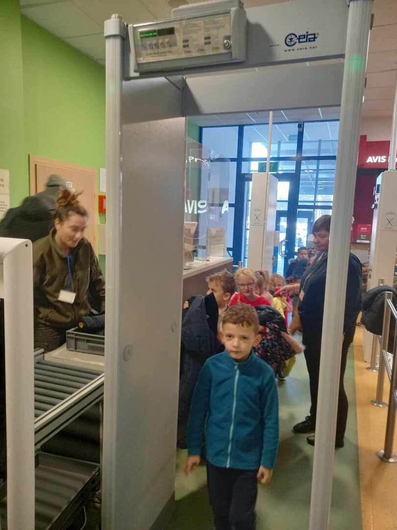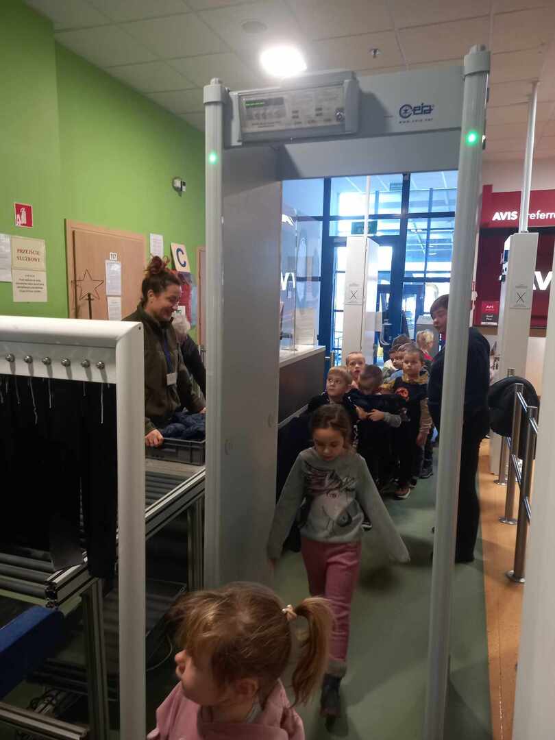 Plan wycieczki był bardzo atrakcyjny. Najpierw musieliśmy przejść przez odprawę bagażową i celną. Przechodziliśmy przez specjalne bramki, które potrafią wykryć wszystkie metalowe przedmioty i prześwietlić bagaż. Tu mieliśmy okazję dowiedzieć się , czego nie należy wnosić na pokład samolotu i co zrobić , aby odprawa odbyła się szybko i sprawnie.