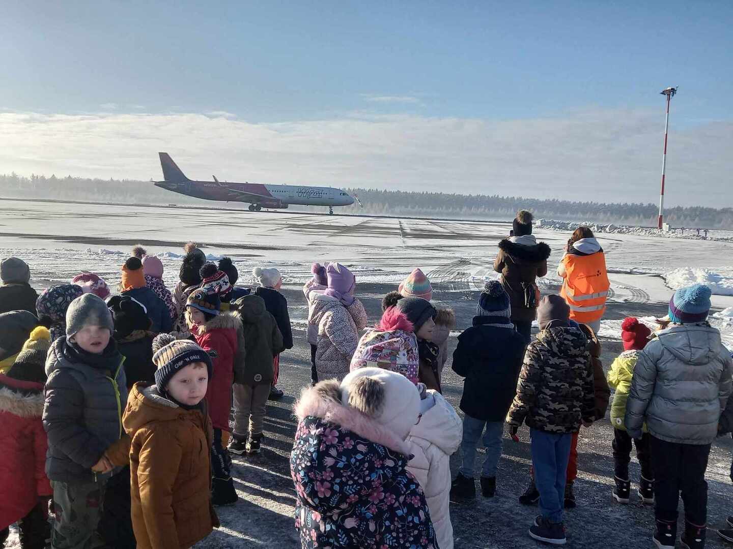 W dniu 27.11.23r przedszkolaki z grup Jagódki” oraz 0a pojechały na wycieczkę do Port lotniczy Szczecin Goleniów. Celem wycieczki było zapoznanie z pracą ludzi na lotnisku i jego funkcjonowaniem.