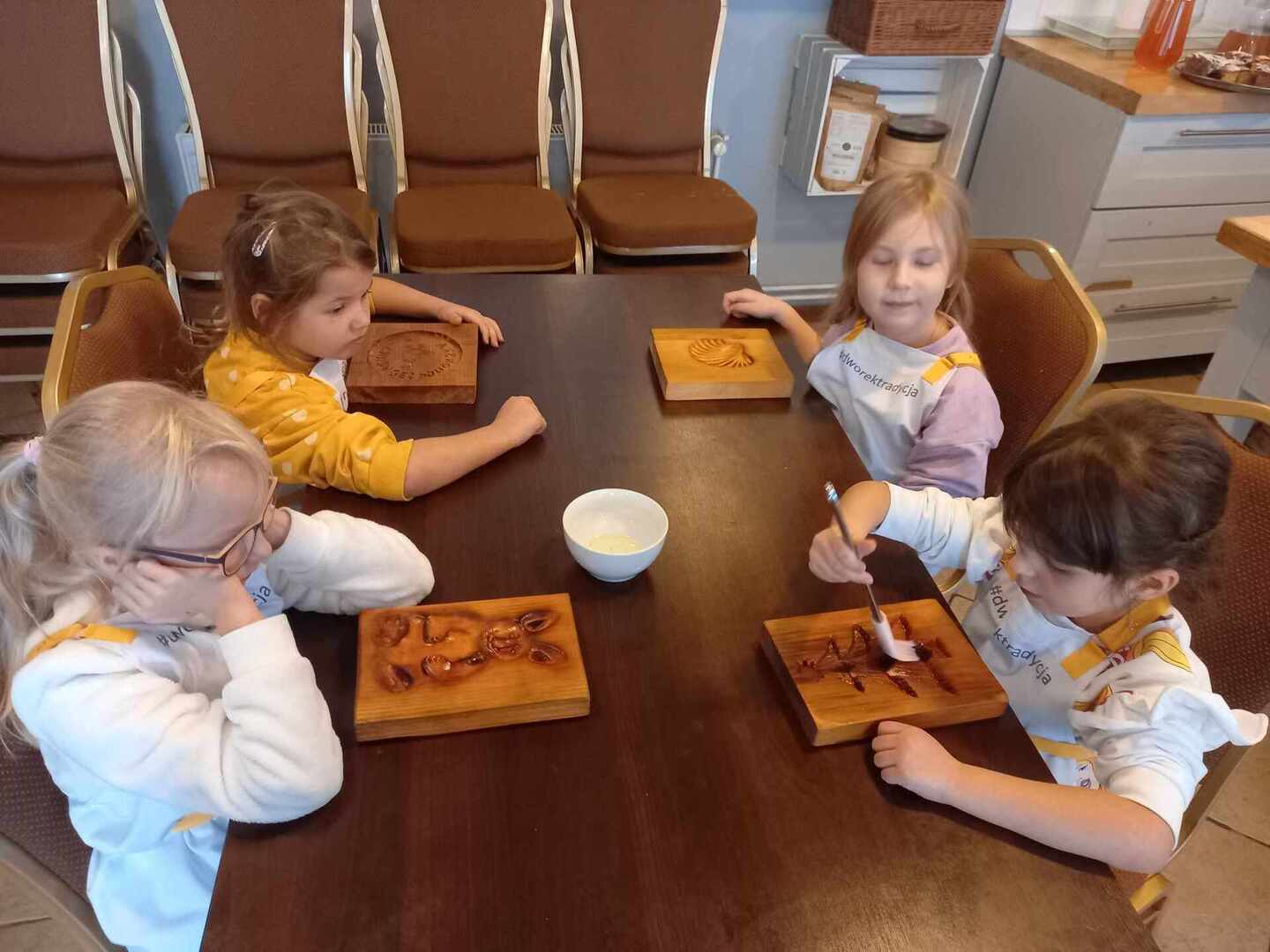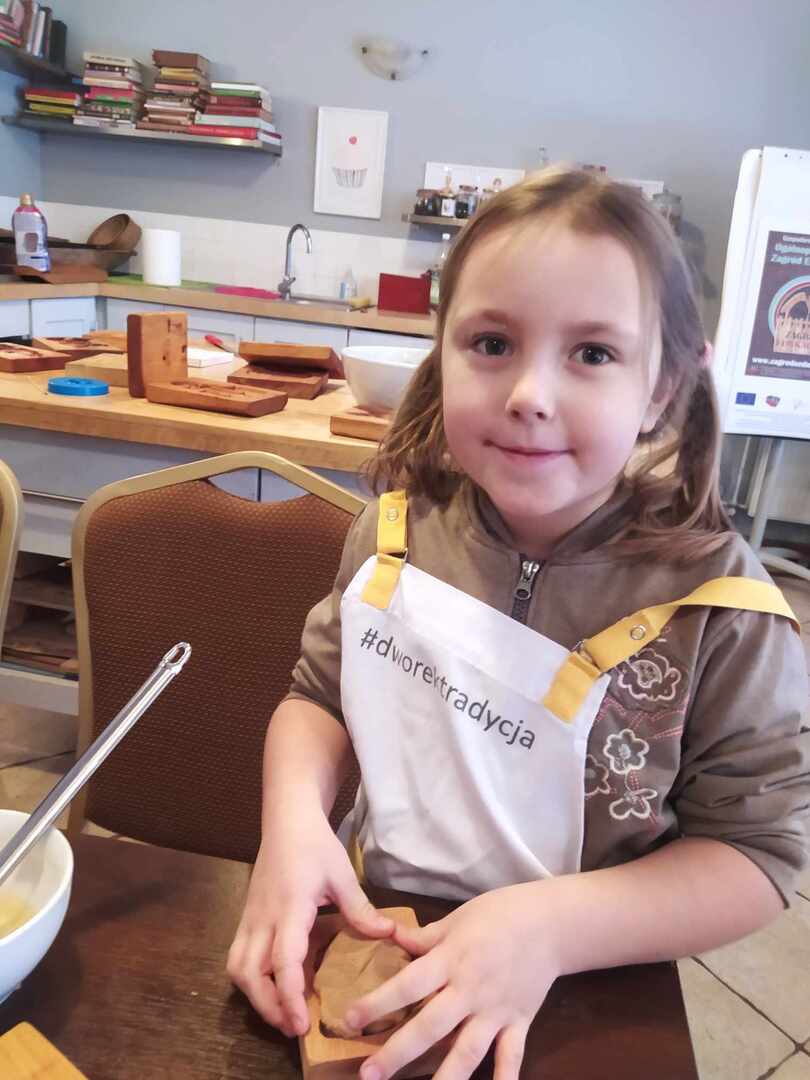 Podczas drugiego warsztatu zerówiaki wypiekały tradycyjne pierniki szczecińskie według oryginalnej, starej receptury. Zajęcia praktyczne zostały poprzedzone rozmową na temat pochodzenia przypraw i ich zastosowania w dawnej i dzisiejszej kuchni. Następnie każdy samodzielnie przygotował formę do wypieku swojego piernika oraz uzupełnił ją ciastem. W oczekiwaniu na pierniki, dzieci delektowały się domowym ciastem i kompotem.