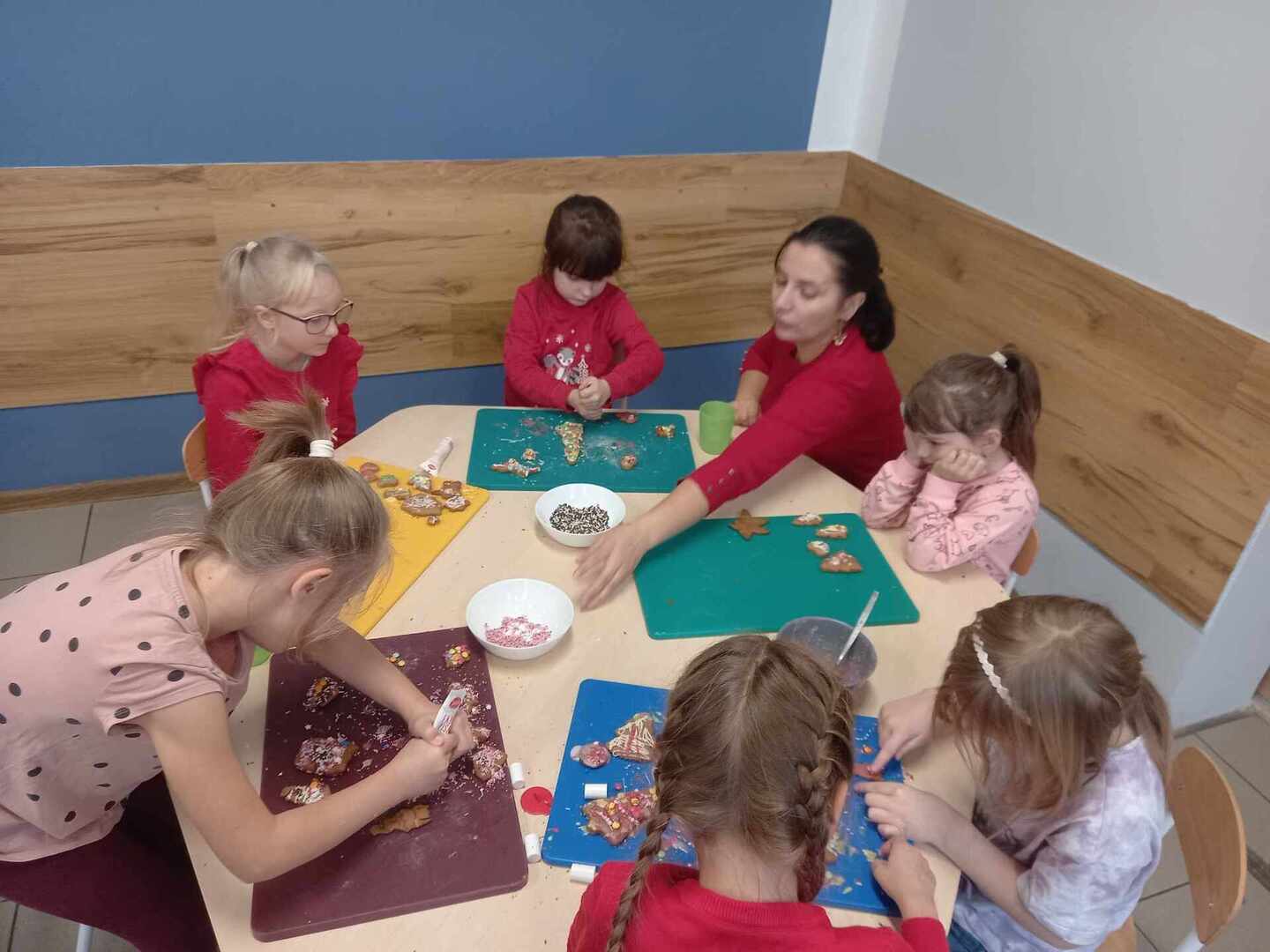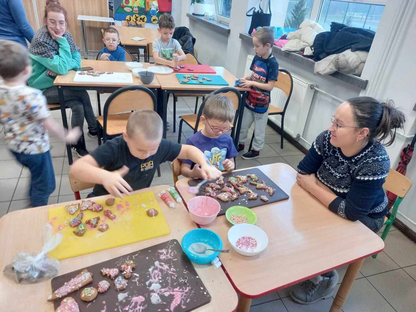 Dnia 11 grudnia 2023 r przedszkolaki z grupy Pszczó艂ki, w ramach przygotowa艅 do 艢wi膮t Bo偶ego Narodzenia zaprosi艂y swoich Rodziców do wspólnego pieczenia pierników. Pracowite Pszczó艂ki samodzielnie formowa艂y, wa艂kowa艂y, a nast臋pnie wykrawa艂y pierniczki w ró偶norodnych kszta艂tach, a po upieczeniu dekorowa艂y wg w艂asnych pomys艂ów. Wszystkie te dzia艂ania da艂y nam wiele rado艣ci, jednak najprzyjemniejszym etapem okaza艂a si臋 degustacja 馃構. Warsztaty odby艂y si臋 w mi艂ej, rodzinnej atmosferze i przynios艂y nam wszystkim wiele pozytywnych emocji, tak wa偶nych w tym 艣wi膮tecznym czasie 馃巹馃巺.