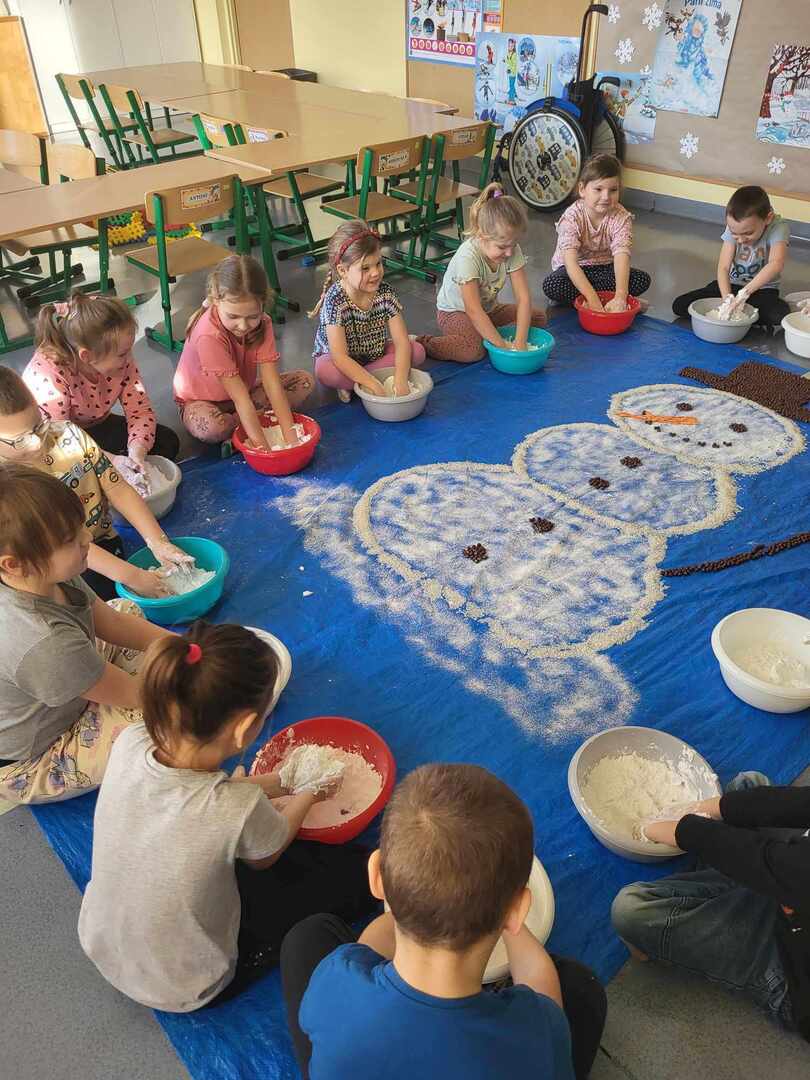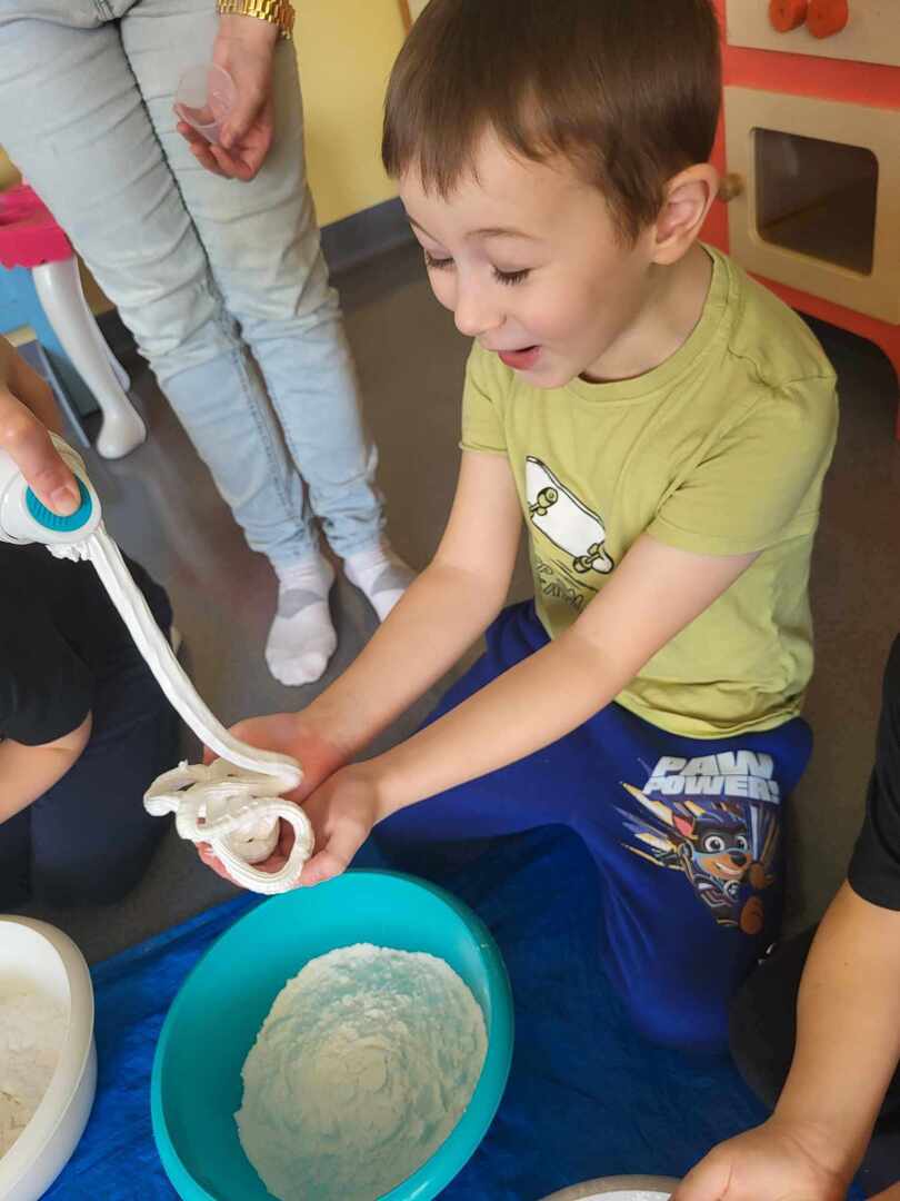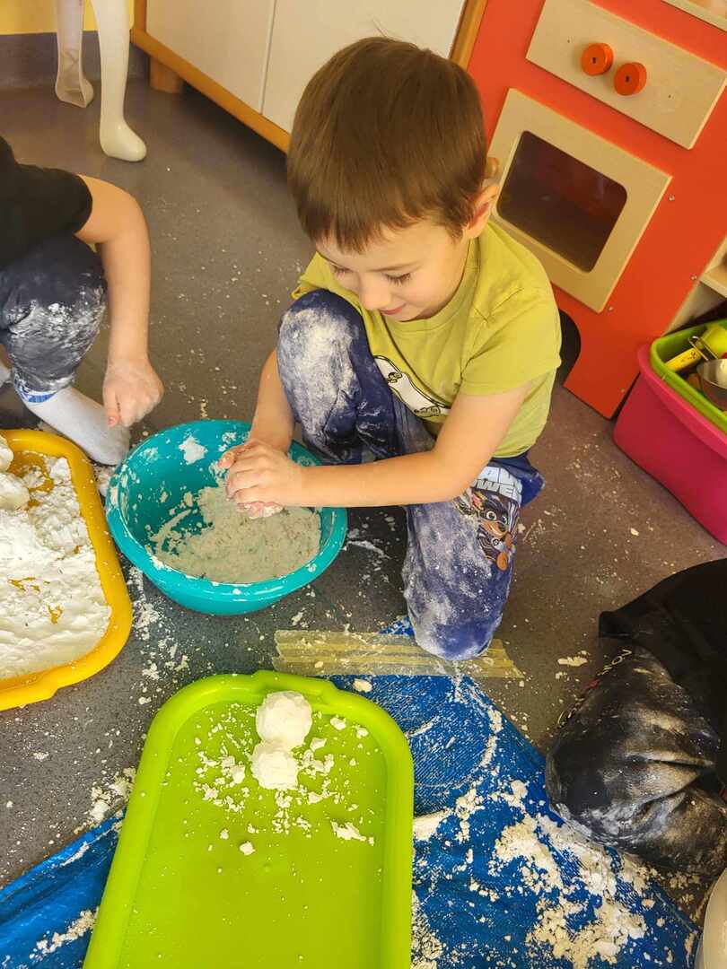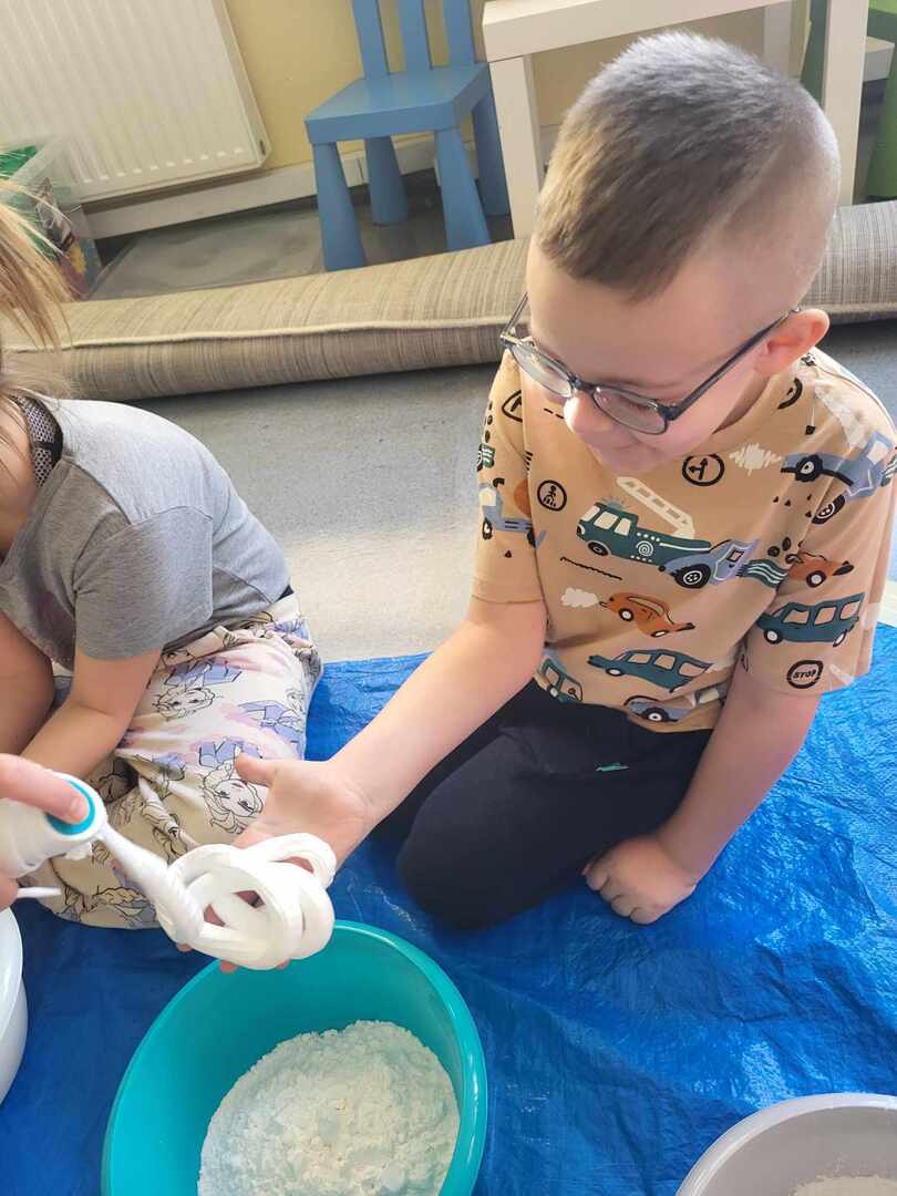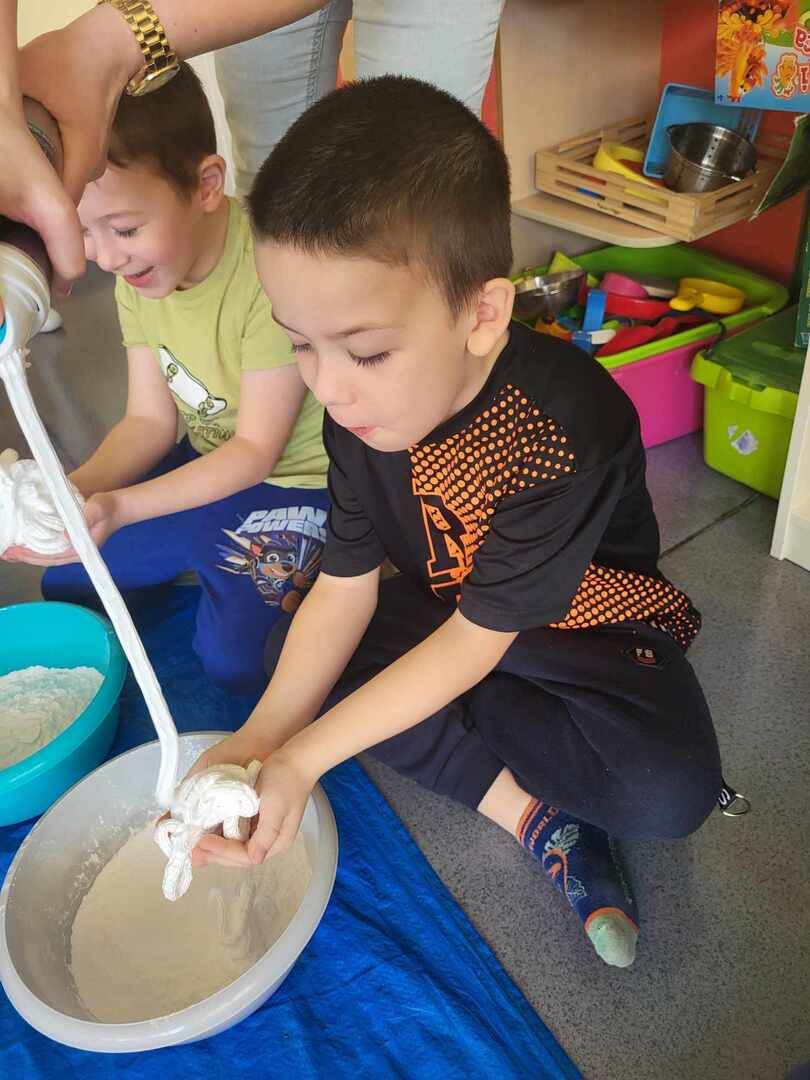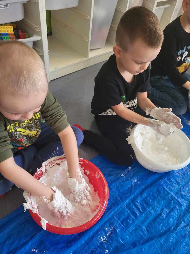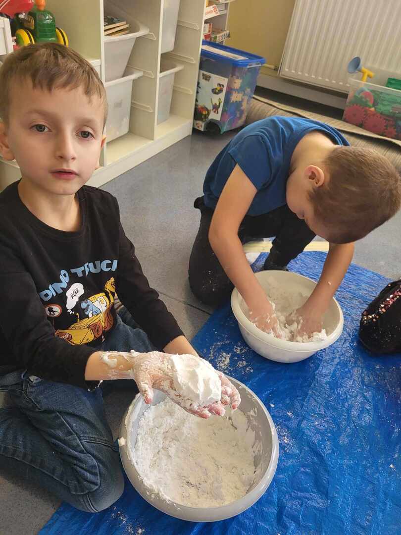 ❄️☃️❄️ Zima dostarcza nam wiele pomysłów na wspaniałe zabawy, również te sensoryczne. Dziś, kiedy za oknem nie widać już śniegu, grupa 0 „B” postanowiła stworzyć swój własny, sztuczny śnieg. Sensoryczne zabawy były niezwykłą przyjemnością dla małych rąk, wskazane zwłaszcza w ich rozwoju i ćwiczeniu motoryki, ale także w oddziaływaniu na inne zmysły. Lepienie, ugniatanie, formowanie, to tylko kilka z aktywności dzisiejszego dnia. Nowe doświadczenie zabawy sztucznym śniegiem sprawiło dzieciom wiele radości. ❄️☃️❄️