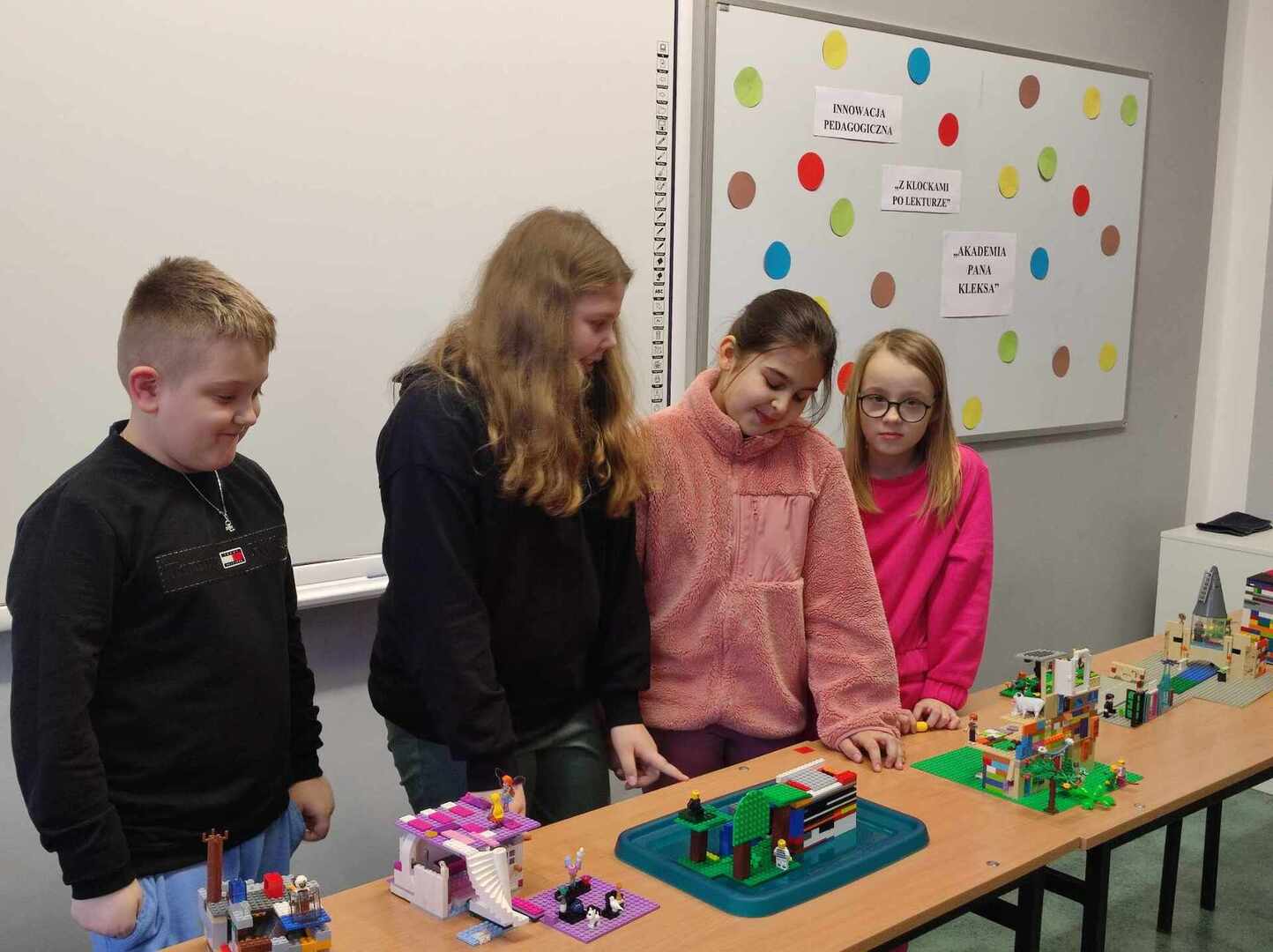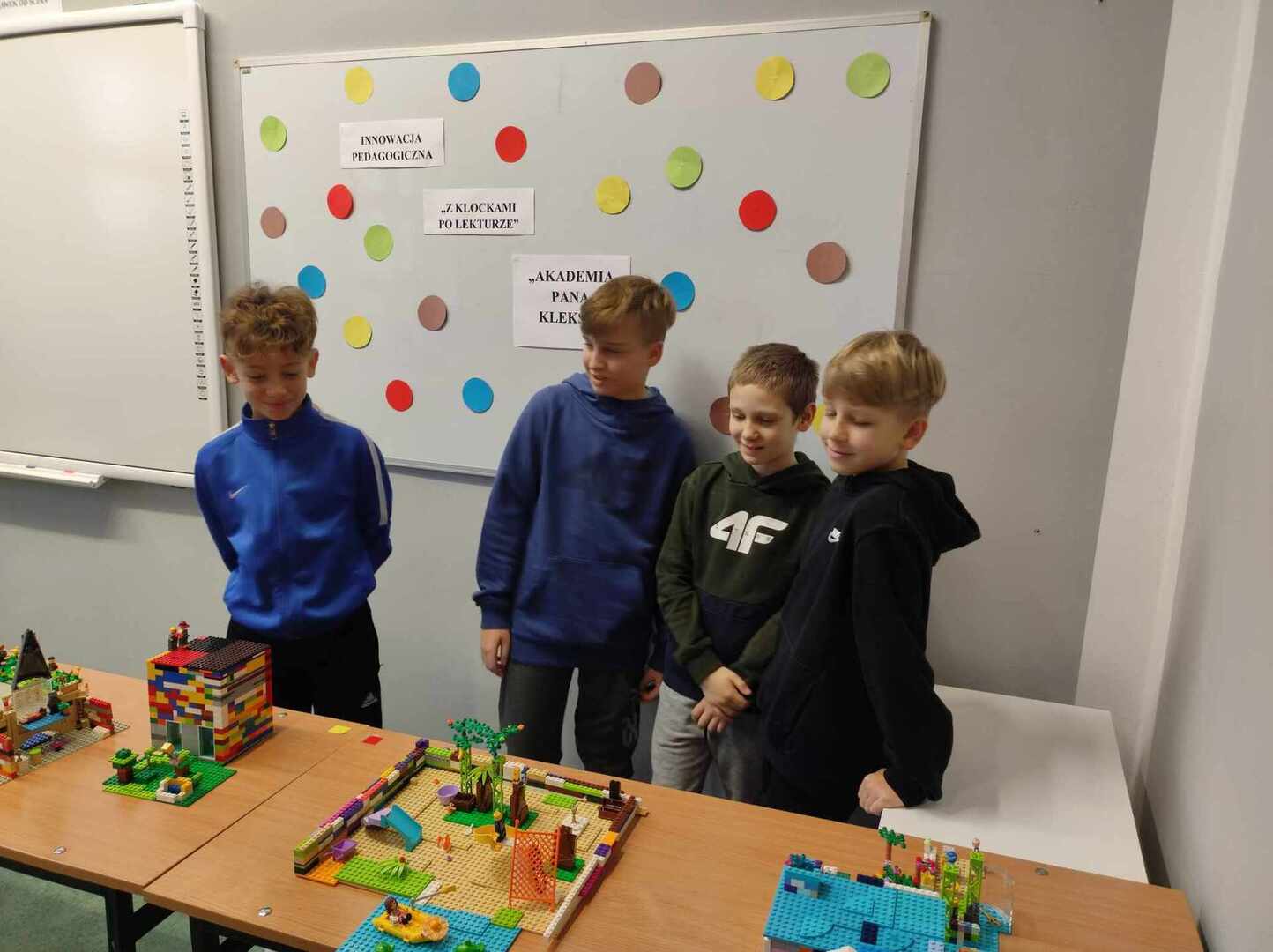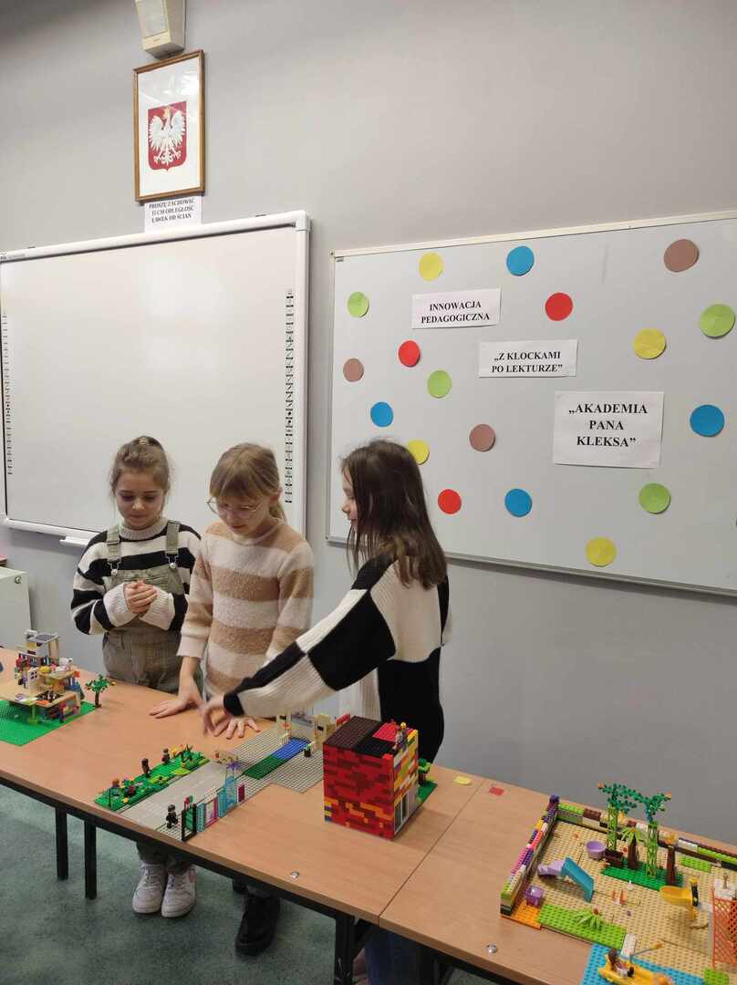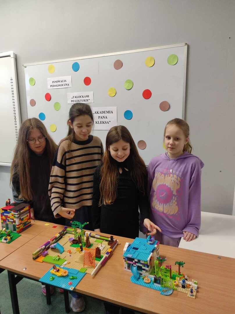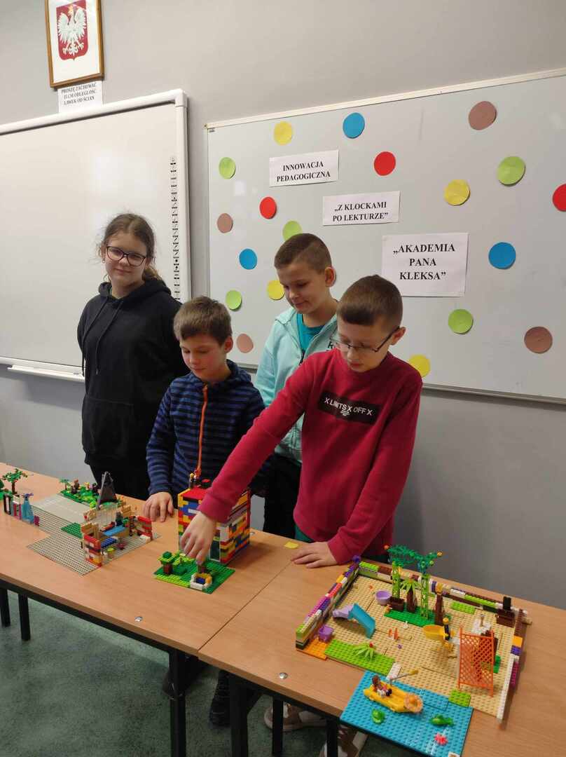 ,Z klockami po lekturze” to innowacja pedagogiczna realizowana w klasie 4a. Zadaniem uczniów jest stworzenie makiety z klocków, która w ciekawy sposób nawiązuje do omówionej lektury szkolnej. Dzieci bardzo chętnie angażują się w pracę podczas zajęć, tworzą wspaniałe budowle, wykazują się bogatą wiedzą na temat miejsc akcji i w atrakcyjny sposób starają się je odtworzyć.