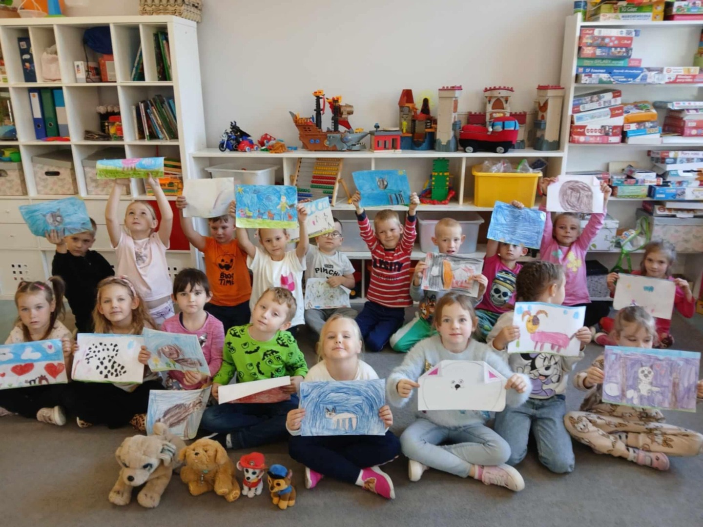 25 października wszystkie grupy przedszkolne z wielką radością włączyły się w obchody Dnia Kundelka. Ten niepozorny piesek jest wyjątkowy i jedyny w swoim rodzaju. Jego święto przypada w Dniu Ustawy o Ochronie Zwierząt. Z okazji obchodów Dnia Kundelka nasze przedszkolaki miały okazję poznać różne rasy psów, przypomnieć sobie jakie obowiązki i odpowiedzialność związana jest z posiadaniem psa oraz dowiedzieć się, jakie są zasady bezpiecznej zabawy z czworonogiem. W tym dniu dzieci przyniosły do przedszkola swoje maskotki - pieski, książeczki a także zdjęcia swoich pupili i poduszeczki. Przedszkolaki z wielkim zaangażowaniem rysowały swoje pieski i projektowały maski swoich ulubieńców. Na koniec wspólnymi siłami wykonały budę dla swojego ulubieńca. 🐕🦺🐕🦮