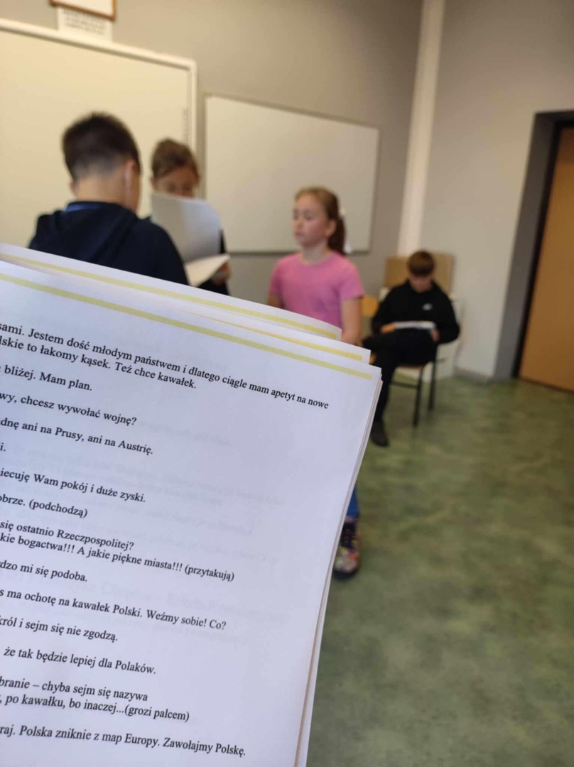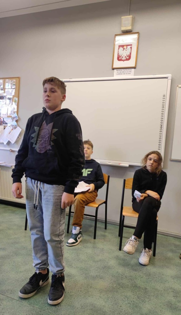 We wrześniu i październiku młodzi aktorzy chętnie uczestniczyli w warsztatach z zakresu emisji głosu, bawili się pantomimą, odgrywali scenki dramowe. Uczniowie mieli okazję zapoznać się z informacjami na temat powstania antycznego i średniowiecznego teatru oraz różnego rodzaju widowisk teatralnych. Entuzjaści sztuki aktorskiej przygotowują występ z okazji Narodowego Święta Niepodległości. Mamy nadzieję, że nasza opowieść o odzyskaniu niepodległości zachęci wszystkich do refleksji oraz poznawania historii naszego kraju.