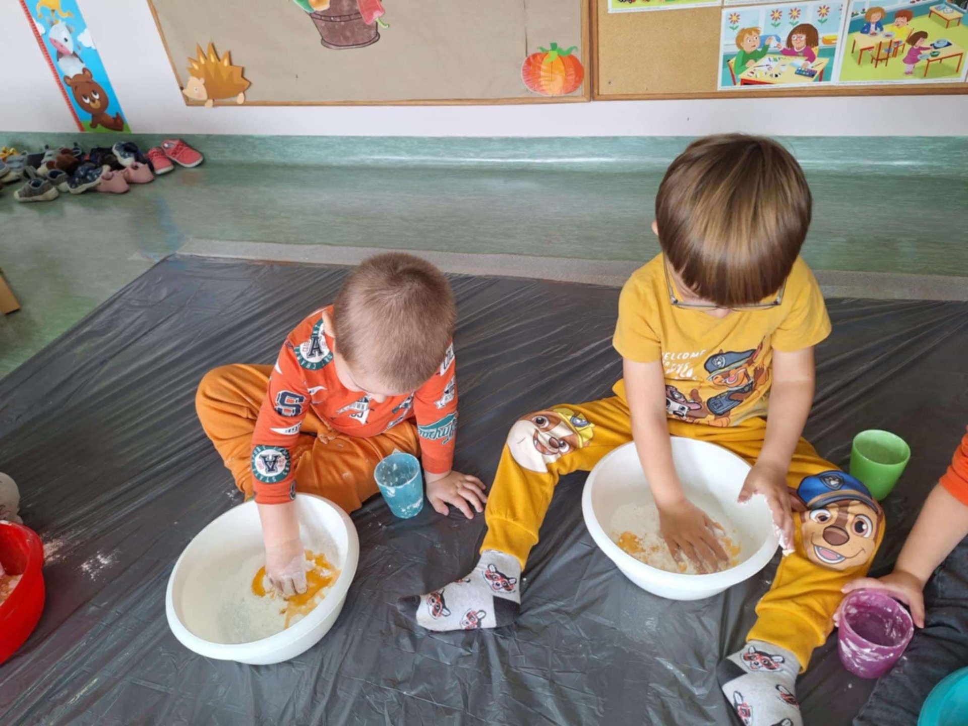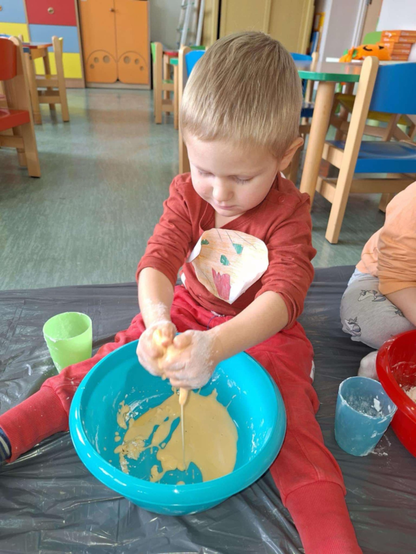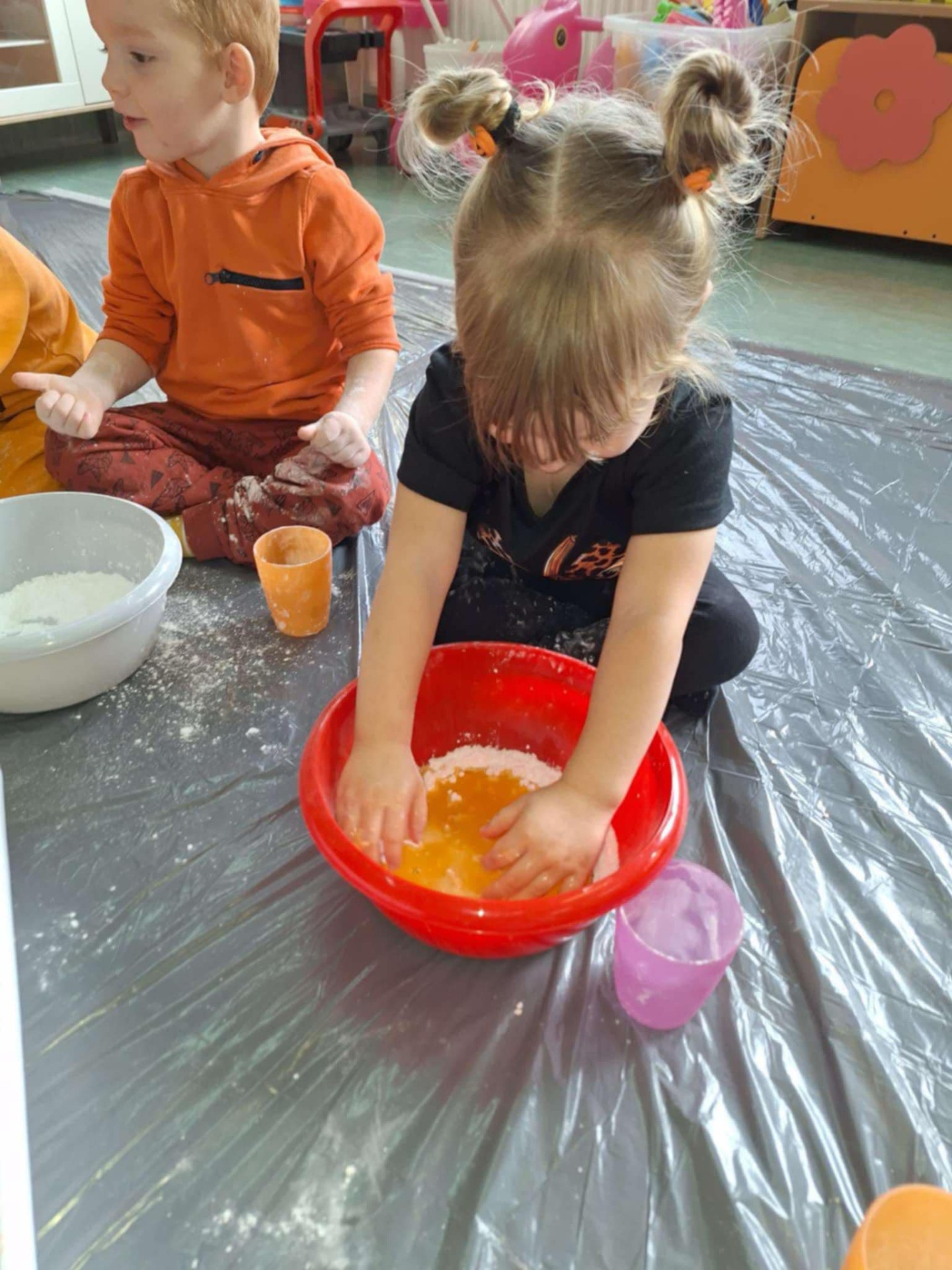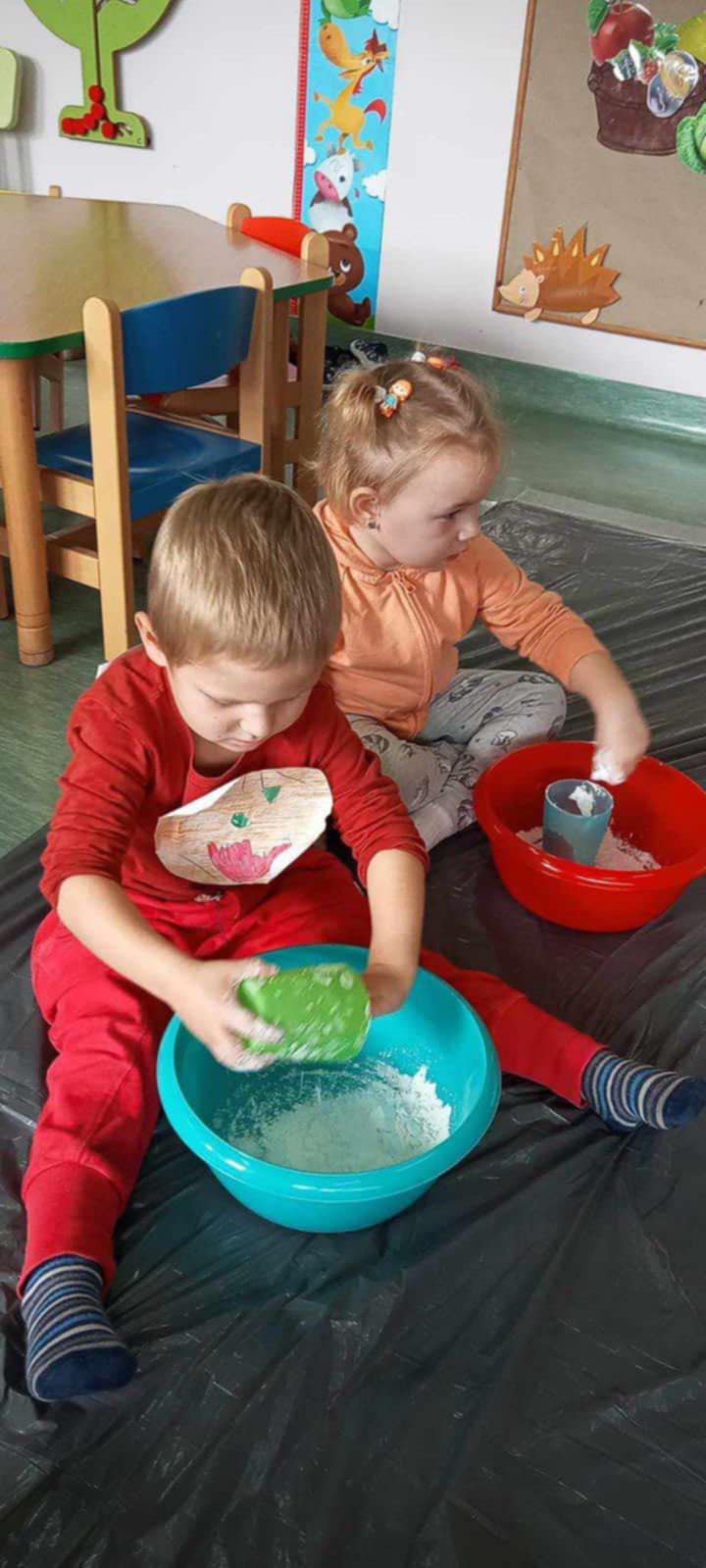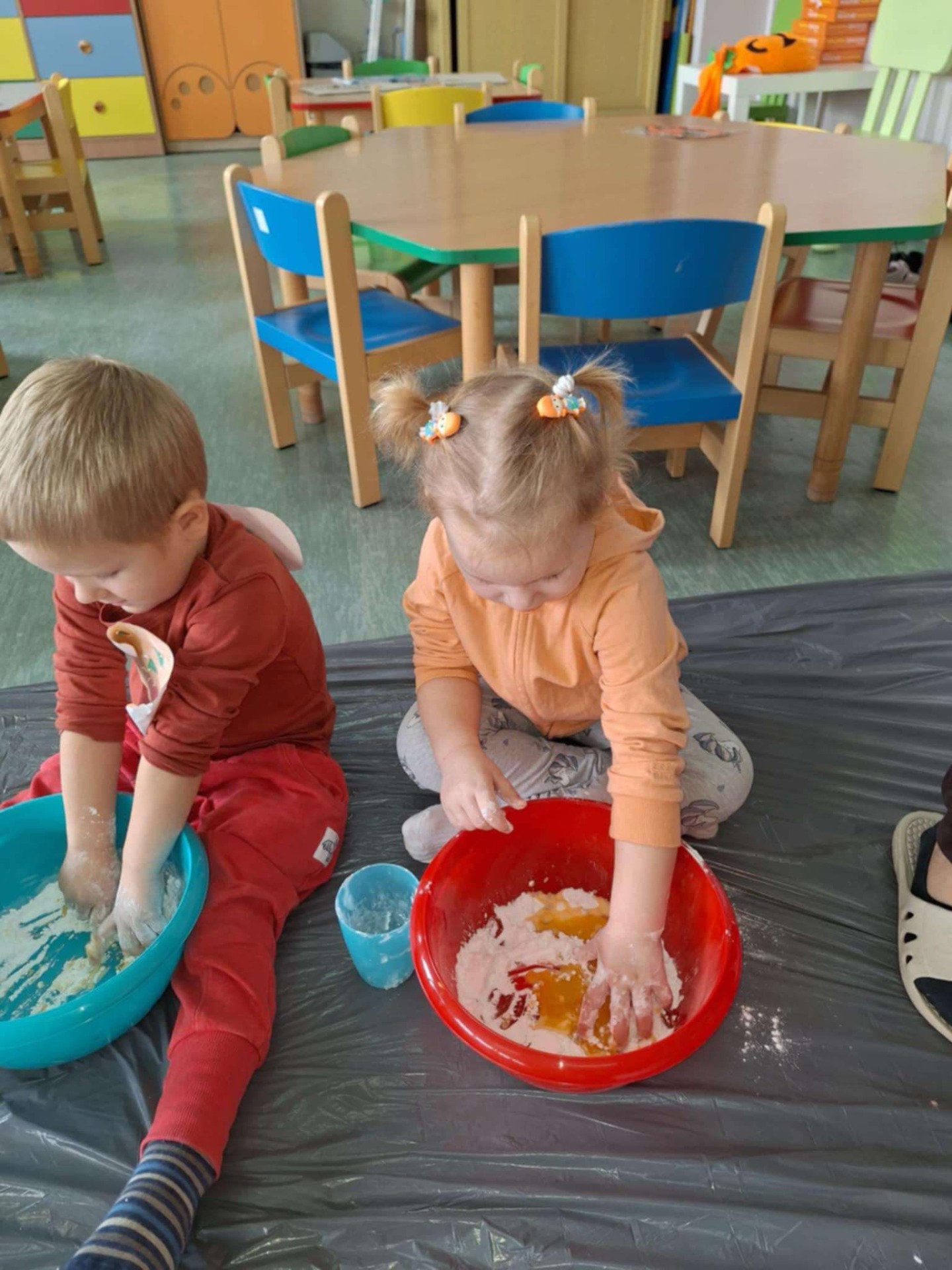 Dziś grupa przedszkolna Krasnoludków wzięła udział we wspólnej zabawie. Dzieci przyniosły ze sobą różne dynie i ubrały się na pomarańczowo. Były tańce, zabawa i to co maluchy lubią najbardziej czyli zajęcia sensoplastyczne.
