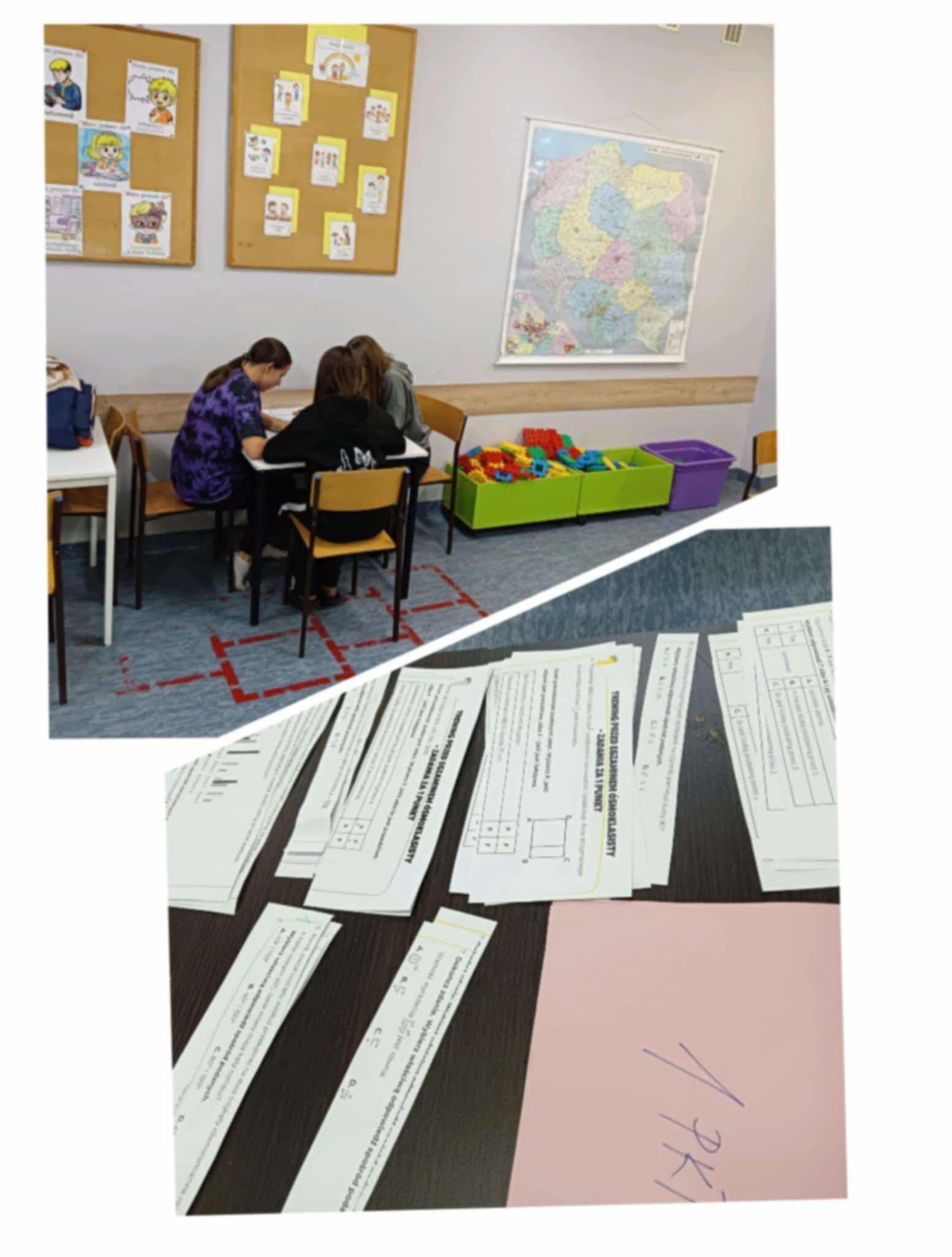 Uczniowie wykazali się zdobytą wiedzą i umiejętnościami. Niestrudzenie wykonywali wszystkie postawione przed nimi wyzwania. Podczas warsztatów rozwiązywali zadania matematyczne przygotowujące ich do egzaminu ósmoklasisty, projektowali mapy miasta oraz rozwiązywali łamigłówki językowe. Zajęcia zakończono wspólnym ogniskiem oraz zabawami integracyjnymi na terenie szkoły.