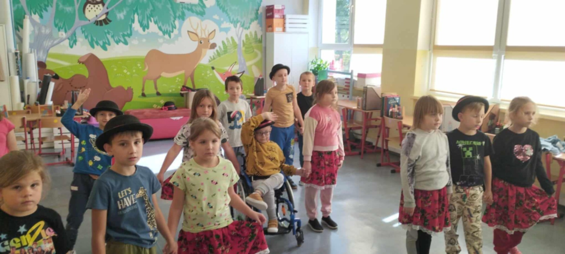 Dzieci z klas pierwszych, przygotowując się do pasowania na uczniów szkoły, uczyły się tańca ,,Trojak". Jest to śląski taniec ludowy, wykonywany w trzyosobowych grupach. W trakcie tańca zmieniały się formacje i figury, a ruchy tańczących były energiczne, pełne dynamiki oraz spontaniczności.