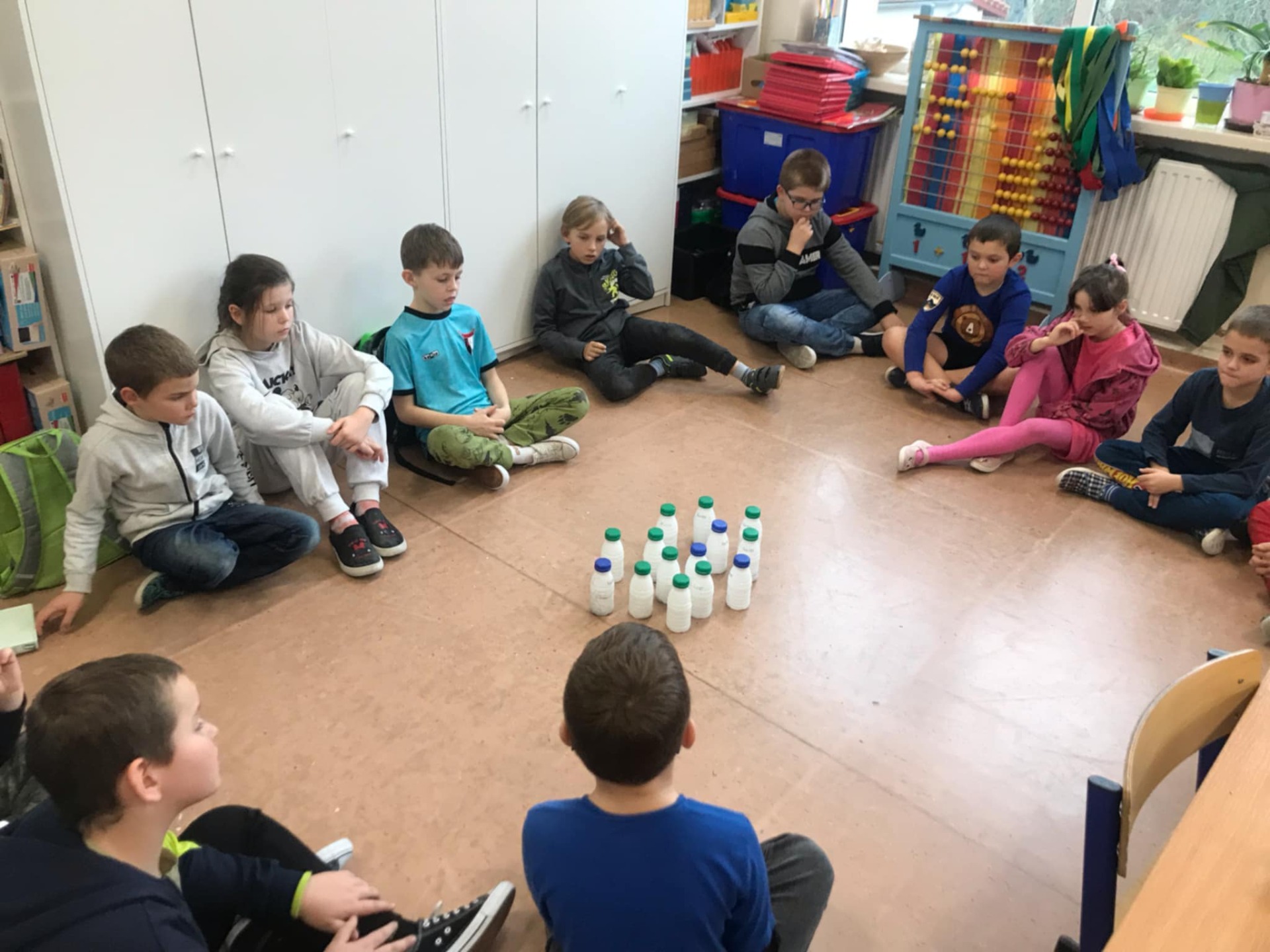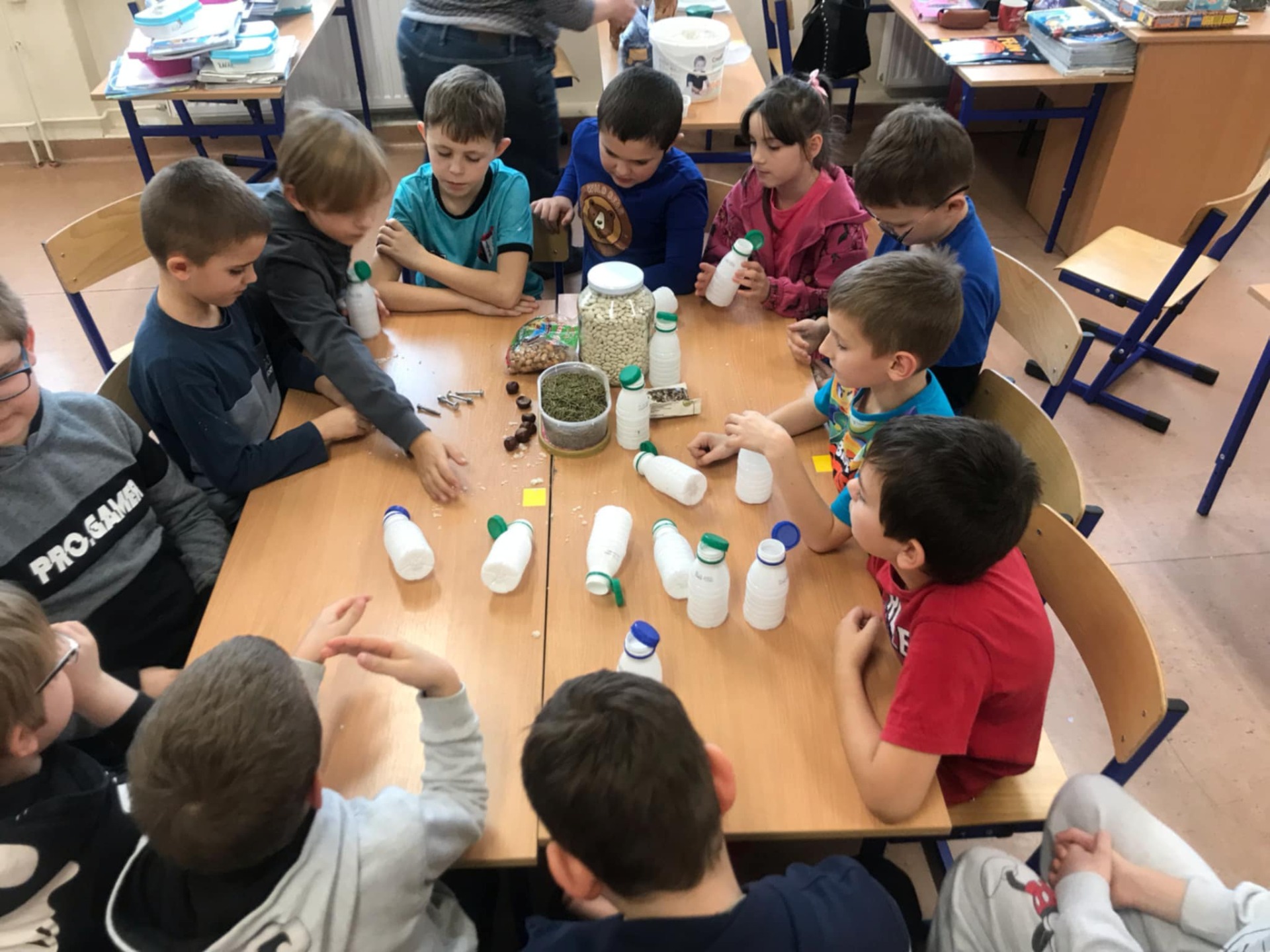 Uczniowie wykorzystali plastikowe opakowania po jogurtach oraz materiały przyrodnicze, zebrane podczas jesiennych spacerów.
