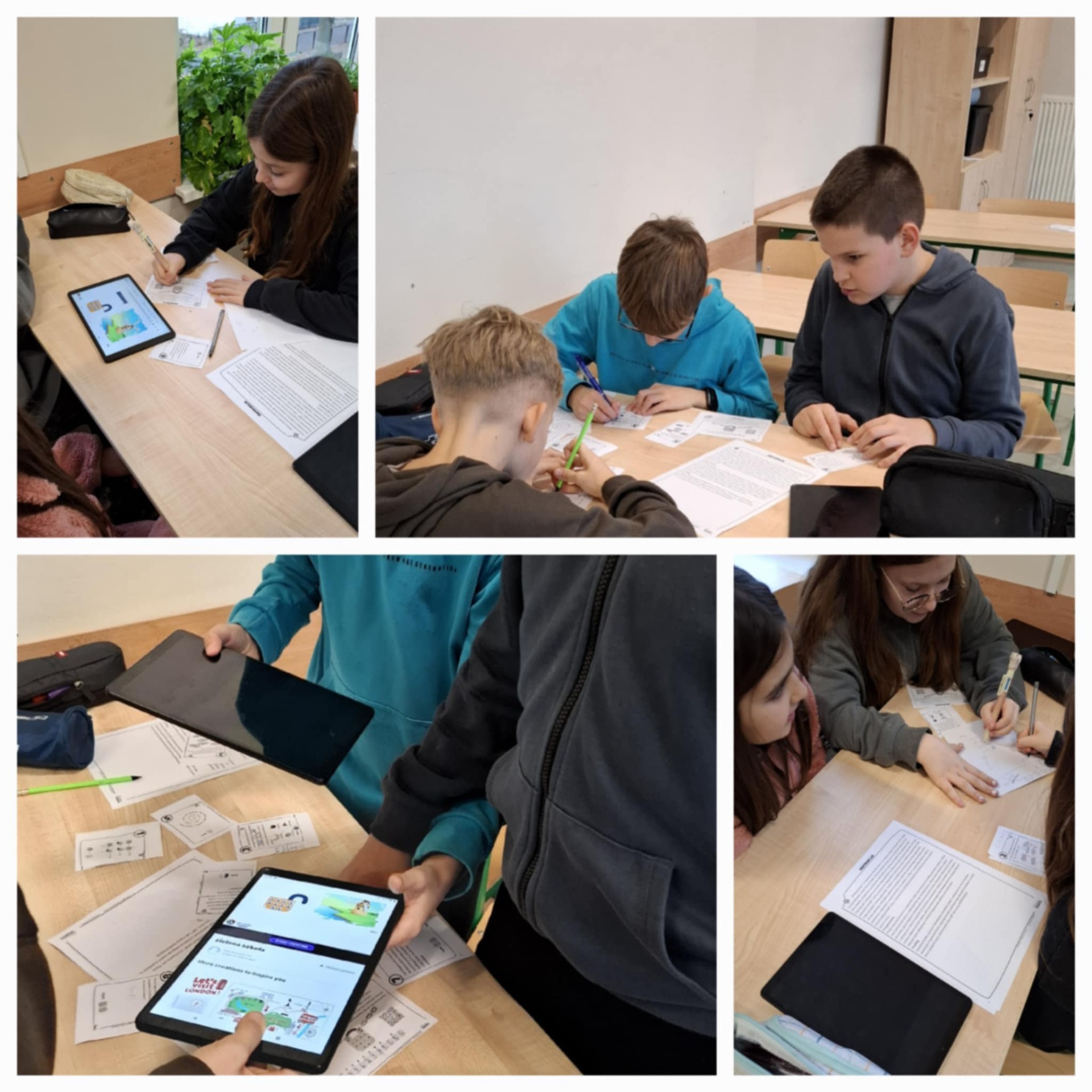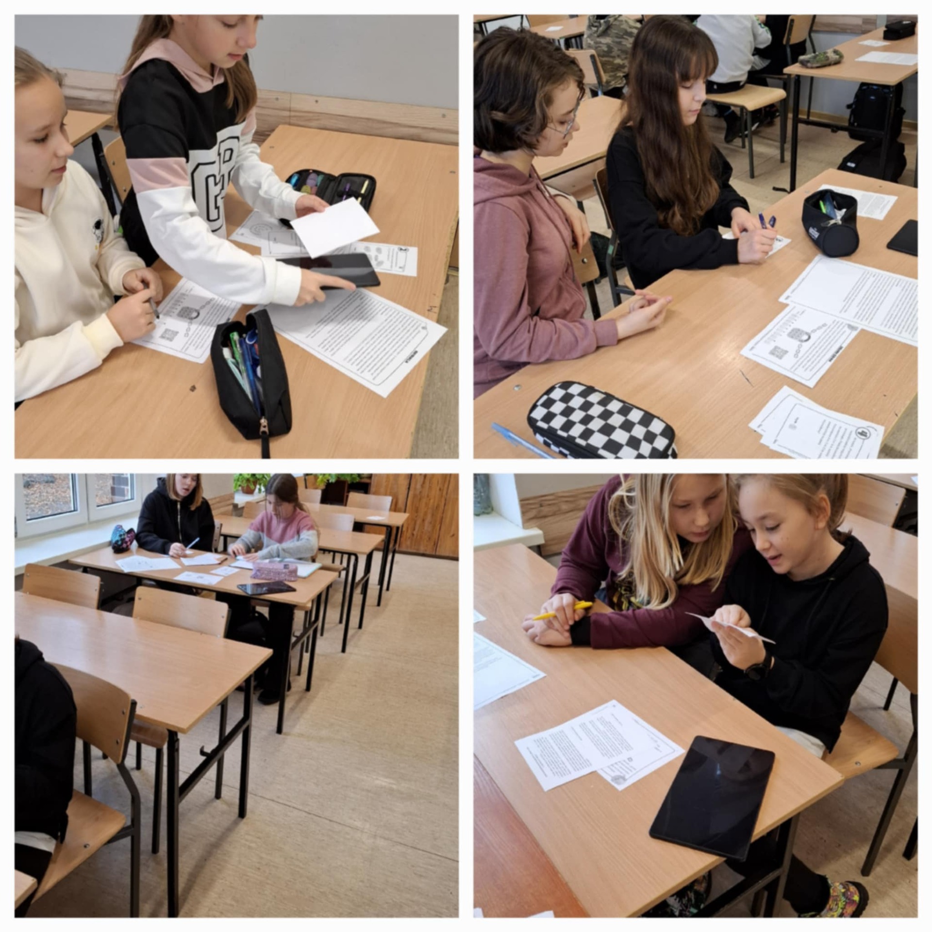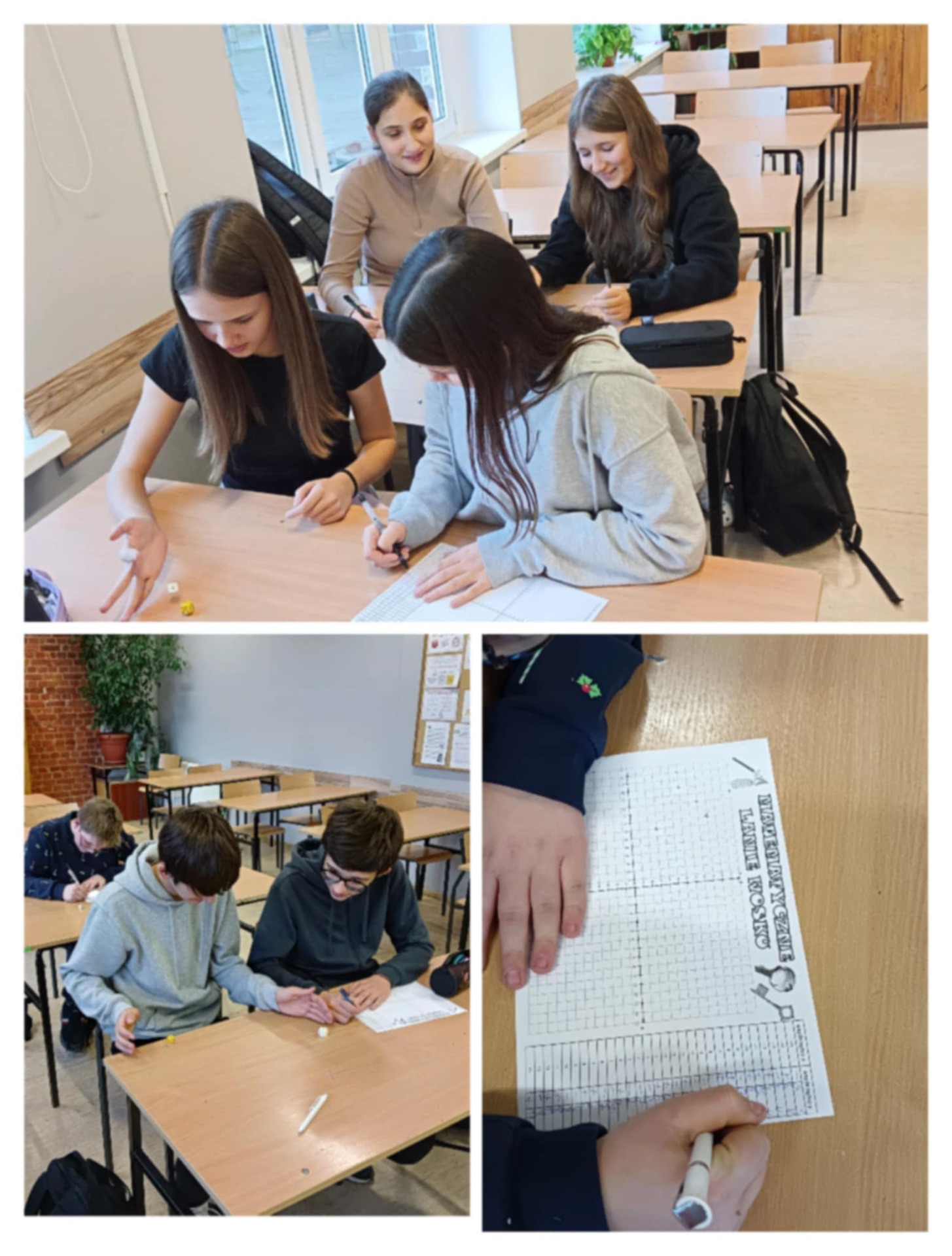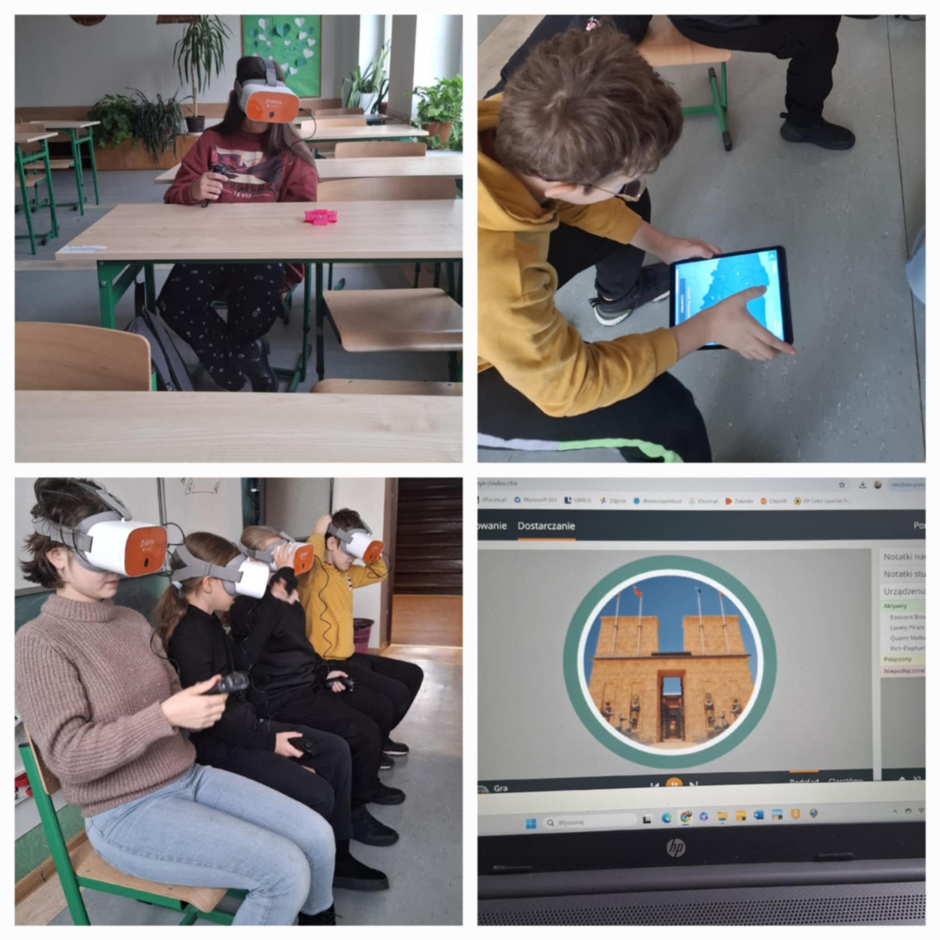 Uczniowie na zajeciach rozwijających zainteresowania z matematyki mieli okazję przenieść się do wirtualnego świata za pomocą okularów VR. Oglądaliśmy bryły przestrzenne, ale również poszukiwalismy kątów na placu Świętego Piotra w Watykanie czy w Luwrze w Paryżu. Dzięki okularom VR połączona została praktyczna wiedza z przyjemnością i dobrą zabawą podczas lekcji matematyki. Dodatkowo uczniowie rozwiązują zadania konkursowe przygotowując się do olimpiad matematycznych.