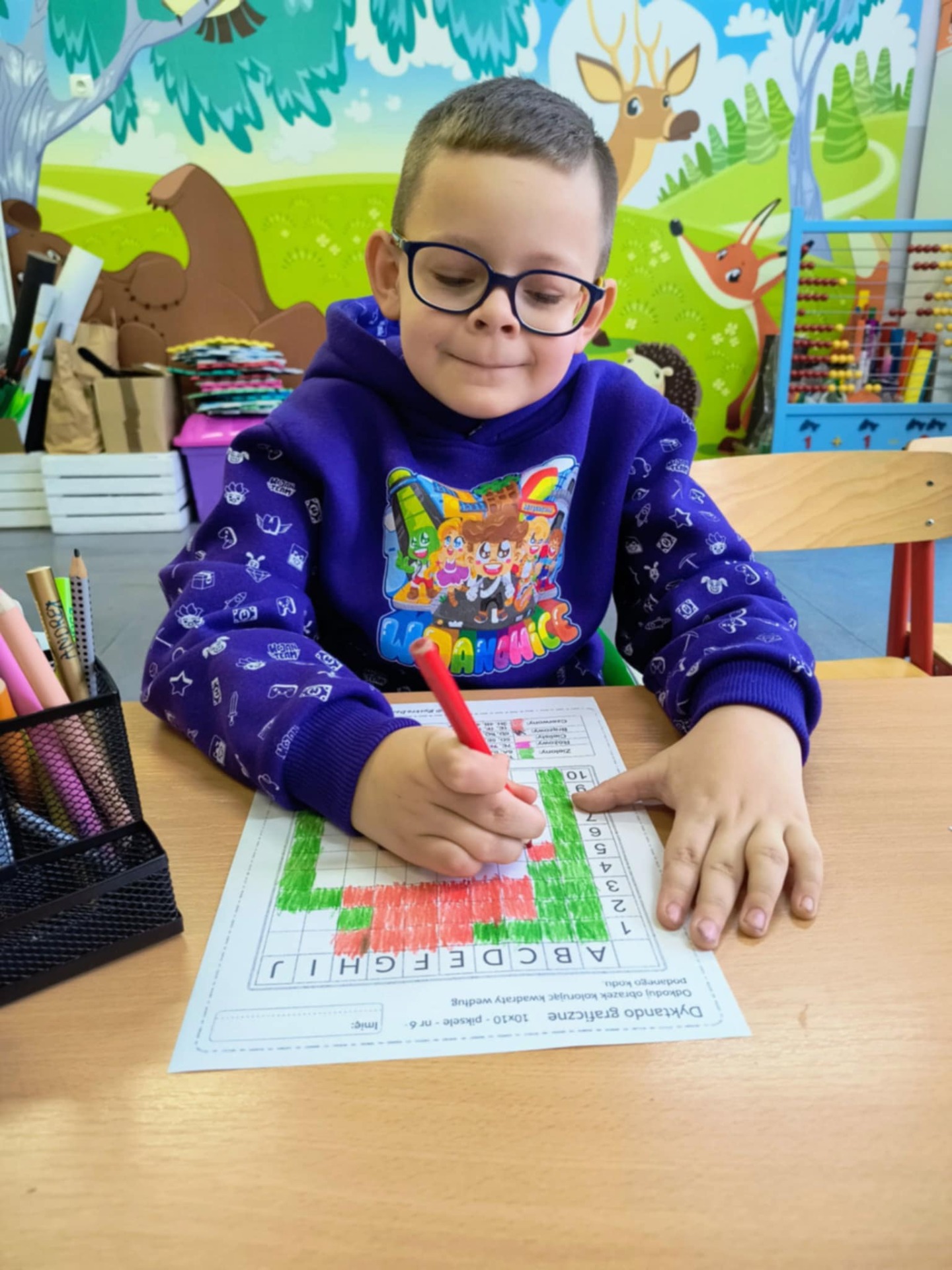 Dzięki realizacji zajęć dydaktyczno- wyrównawczych, uczniowie klas pierwszych i drugich ćwiczą słuch fonemowy; wyodrębniają zdania z potoku mowy, wyrazy w zdaniach, a także sylaby i głoski w wyrazach. Z dużym zaangażowaniem układają zdania z rozsypanek wyrazowych i doskonalą umiejętności grafomotoryczne. Uczestnicy zajęć chętnie rozwiązują zakodowane dyktanda graficzne, które rozwijają wyobraźnię, angażują podstawowe procesy myślowe, poprawiają koncentrację uwagi oraz ćwiczą percepcję wzrokową.