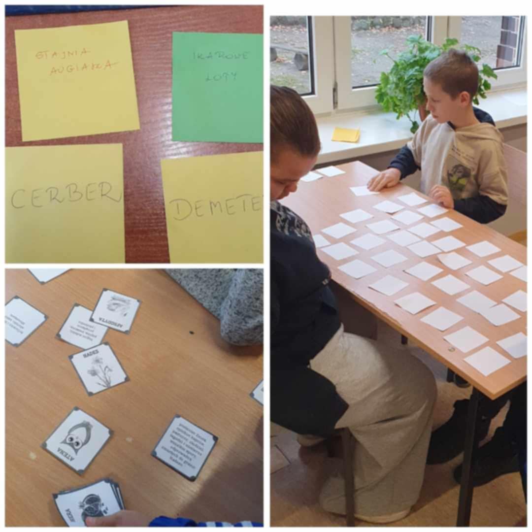 Zajęcia wyrównawcze z języka polskiego dla klas V to doskonała możliwość indywidualizacji. Mała grupa sprzyja skupieniu i aktywności. Ostatnio zajmowaliśmy się mitologią grecką, czytaliśmy mity, robiliśmy krzyżowki, zadania. Kształciliśmy nasze pióro, udało nam się napisać list do Zeusa, charakterystykę Syzyfa oraz podziękowanie dla Prometeusza. Nie zabrakło też zabaw utrwalających - memory, kalambury czy quizu dotyczącego postaci mitologicznych. Tym tematem zafascynowało się wielu uczniów. Po sprawdzeniu wiedzy będziemy przygotowywać się do Potyczek Mitologicznych.