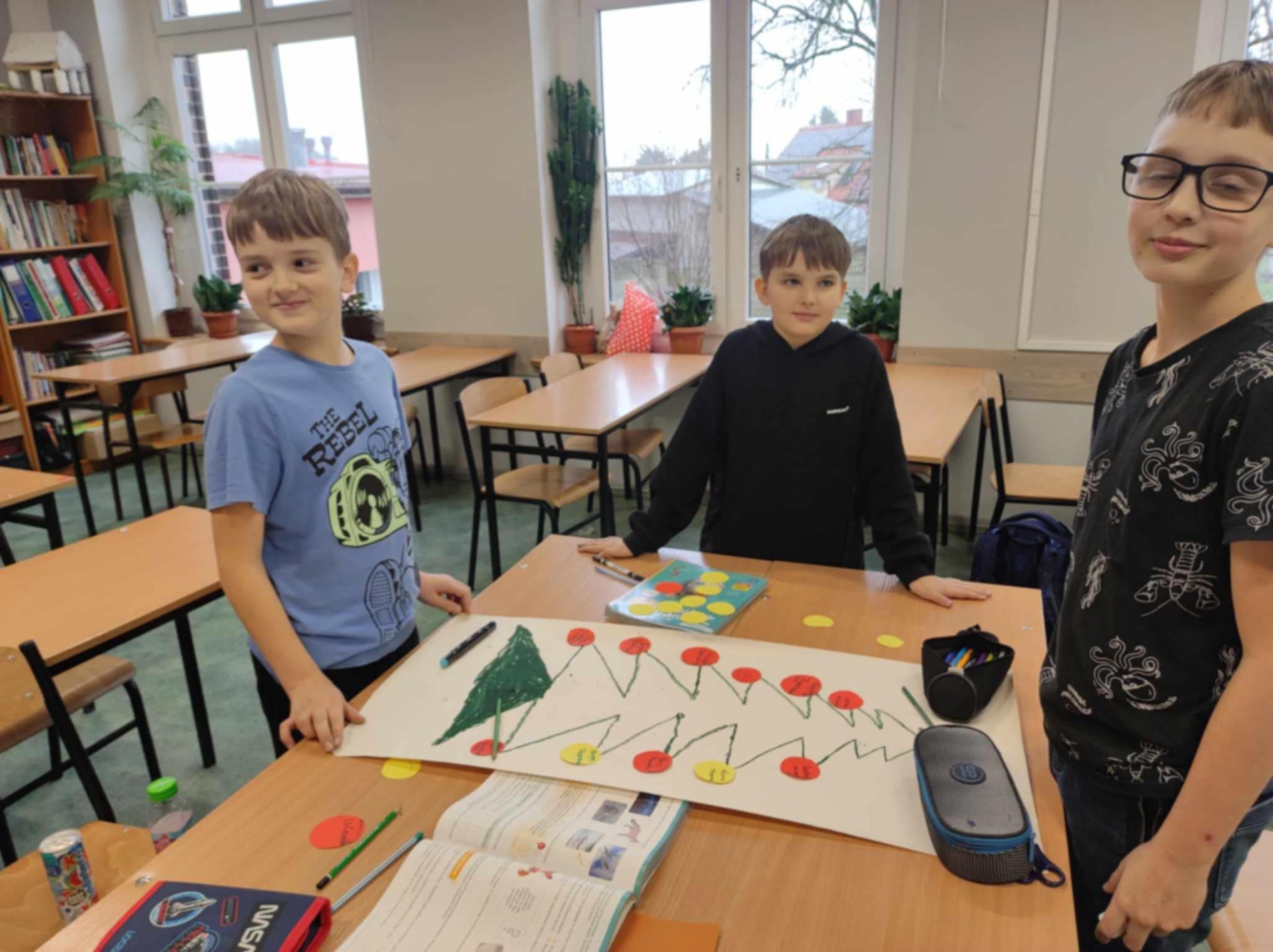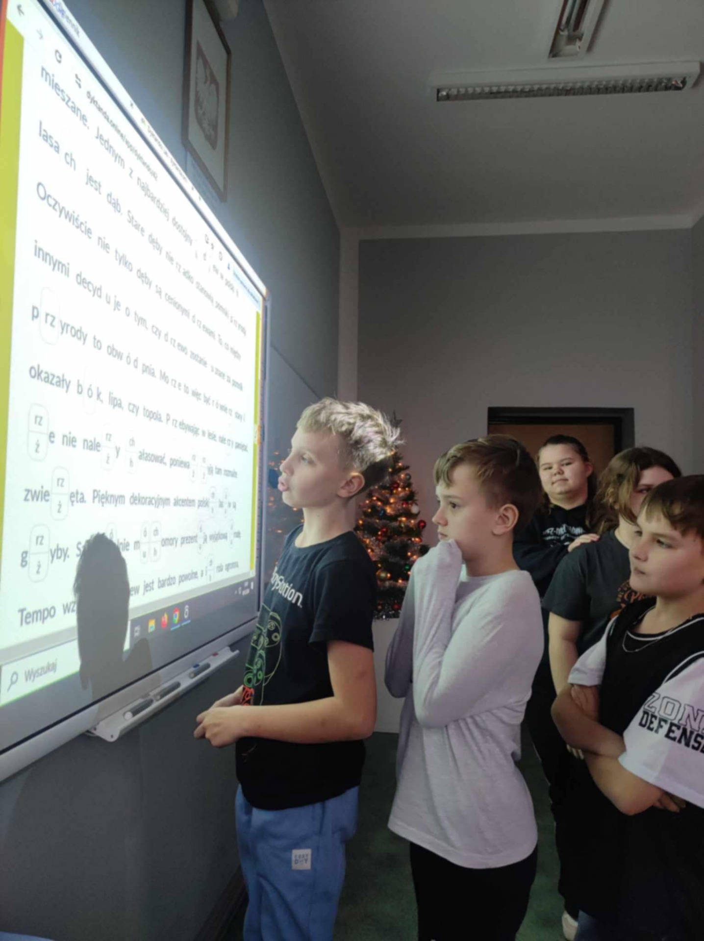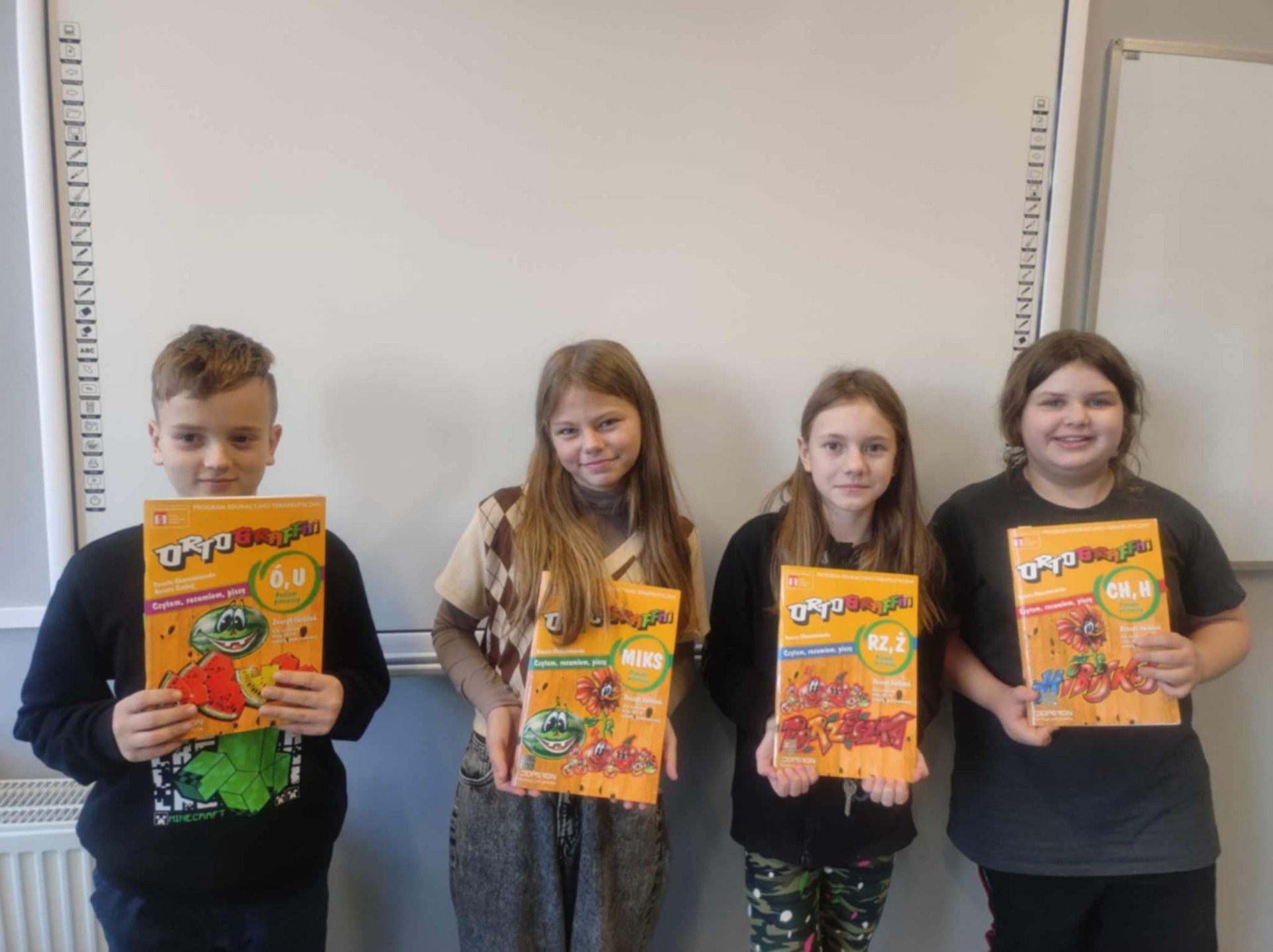 Podczas listopadowych i grudniowych zajęć dzieci utrwalały wiadomości o częściach mowy – czasownikach, rzeczownikach i przymiotnikach. Wspólnie pracowaliśmy nad doskonaleniem umiejętności czytania ze zrozumieniem (na podstawie fragmentów wybranych legend), tworzyliśmy ortograficzne choinki, a także staraliśmy się rozszyfrować świąteczne zagadki polonistyczne. Uczniowie angażowali się w rozwiązywanie zadań ortograficznych z wykorzystaniem książek z serii „Ortograffiti”, gdyż praca z takimi materiałami pomaga rozwijać umiejętność poprawnego pisania, a także poprawia zdolność szybkiego uczenia się przez wprowadzenie technik stymulujących mózg. Uczniowie chętnie wykonywali zadania interaktywne, dzięki czemu łączyli naukę z przyjemnością.