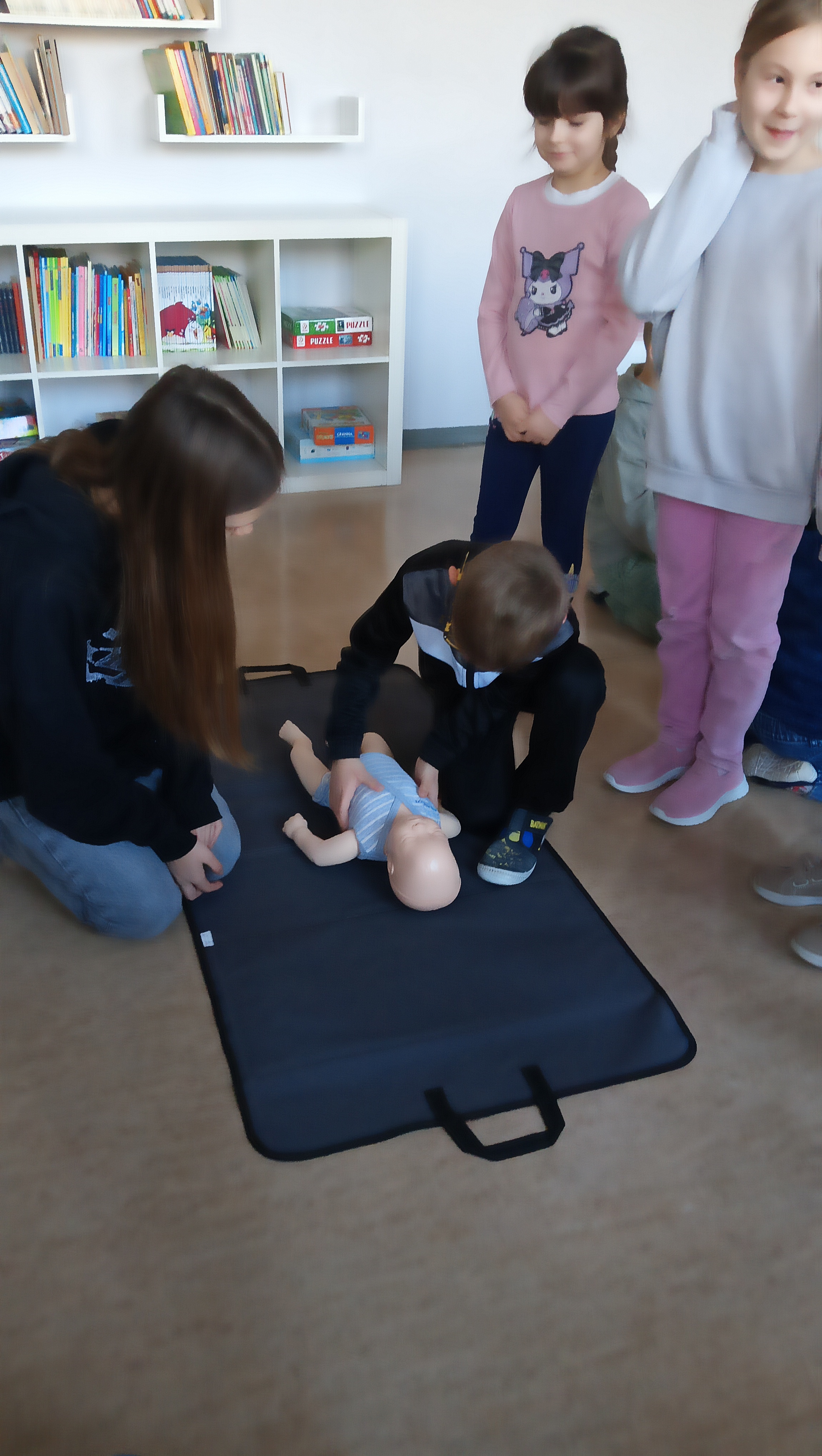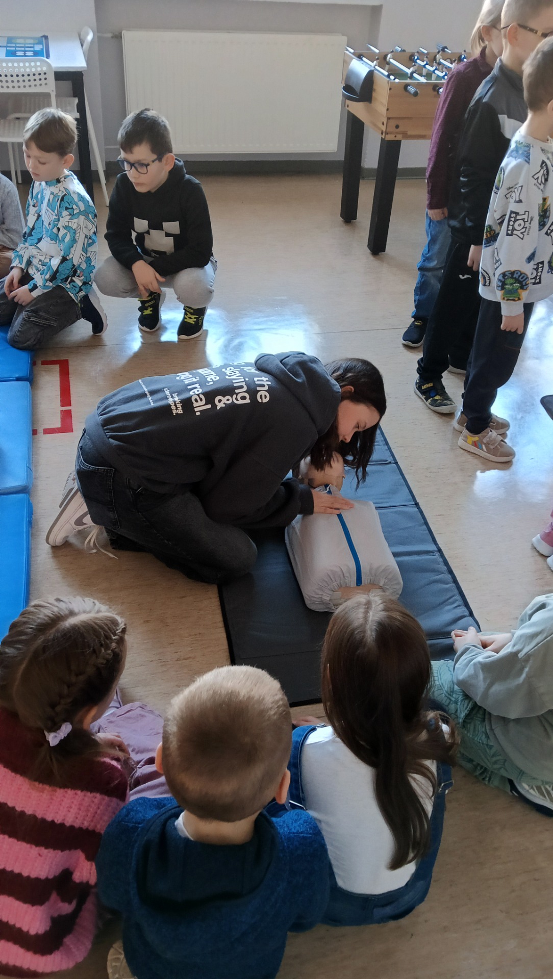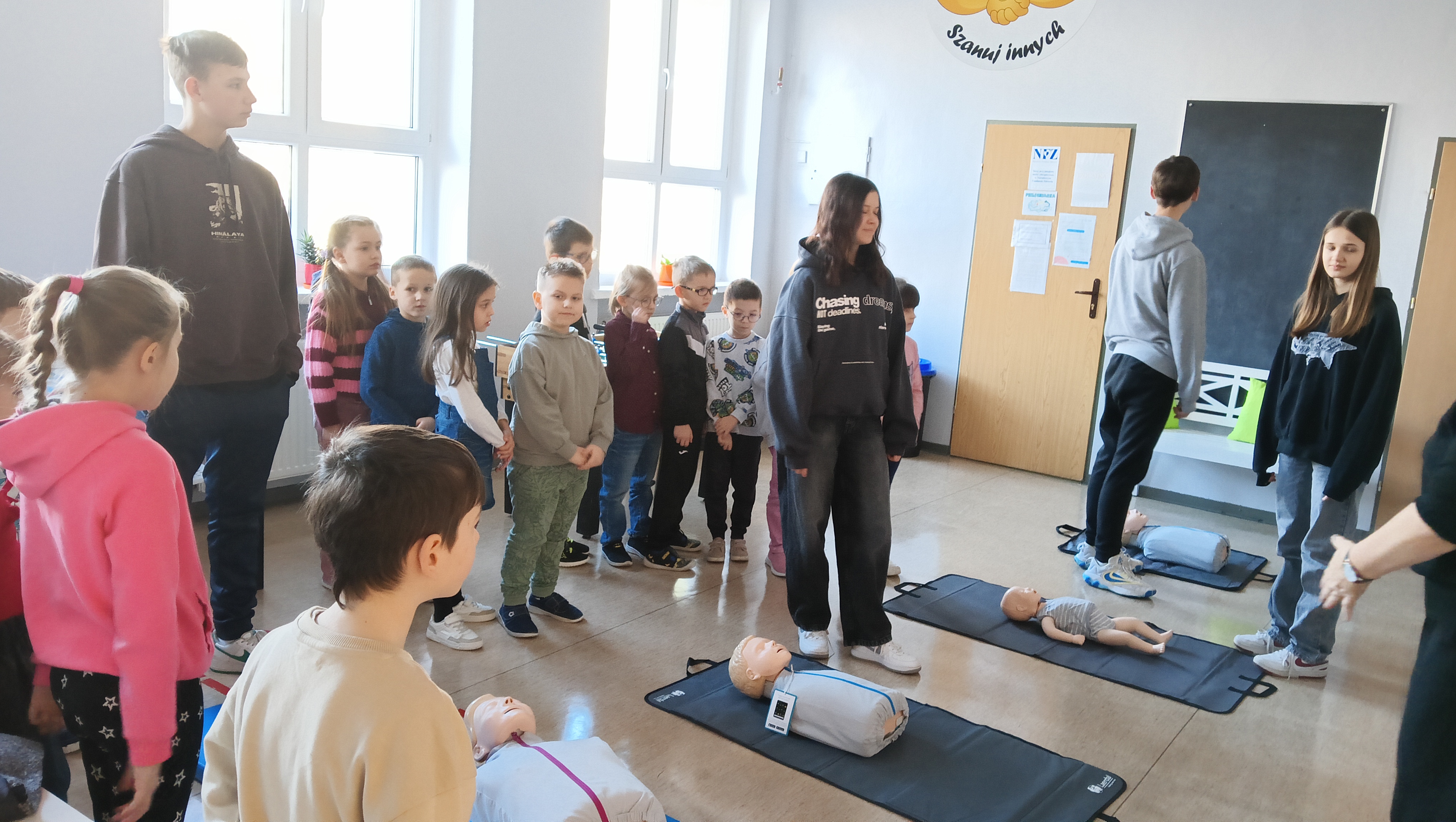 W ostatnich dniach w naszej szkole odbyło się wyjątkowe szkolenie z pierwszej pomocy, które skierowane było do uczniów klas 1a i 3b. Dzieci miały okazję nauczyć się podstawowych umiejętności udzielania pomocy w sytuacjach nagłych, a wszystko to w atmosferze zabawy i nauki!