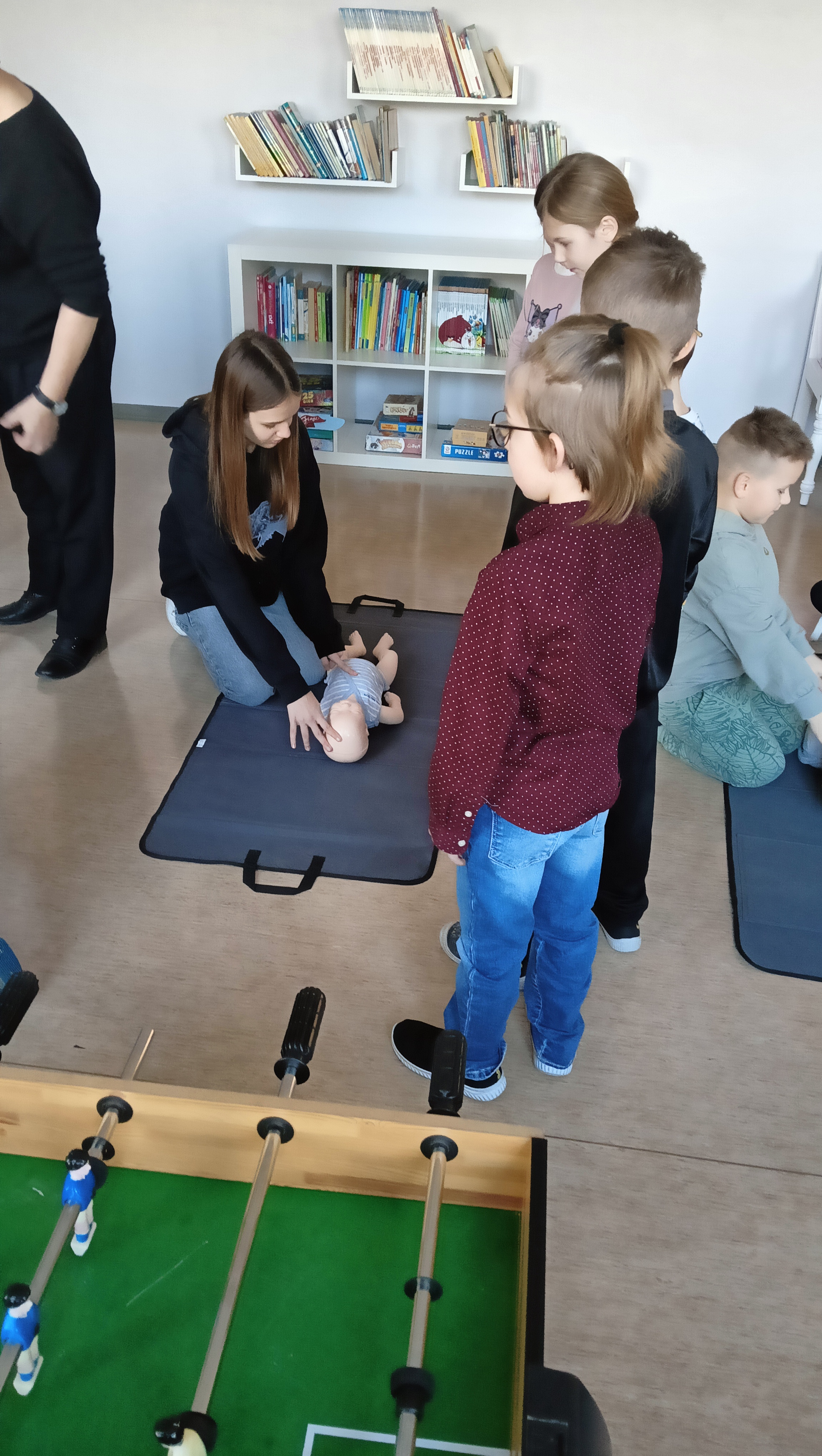 🤖 Największą atrakcją były fantomy, na których uczniowie, pomocą kolegów i koleżanek z klas VII - VIII, mogli praktycznie ćwiczyć resuscytację krążeniowo-oddechową (RKO). Z dużym zaangażowaniem i uśmiechami na twarzach, mali ratownicy ćwiczyli uciski klatki piersiowej oraz sztuczne oddychanie. Wszyscy wykazali się ogromnym zapałem i chęcią do nauki, co było niezwykle radosnym widokiem!