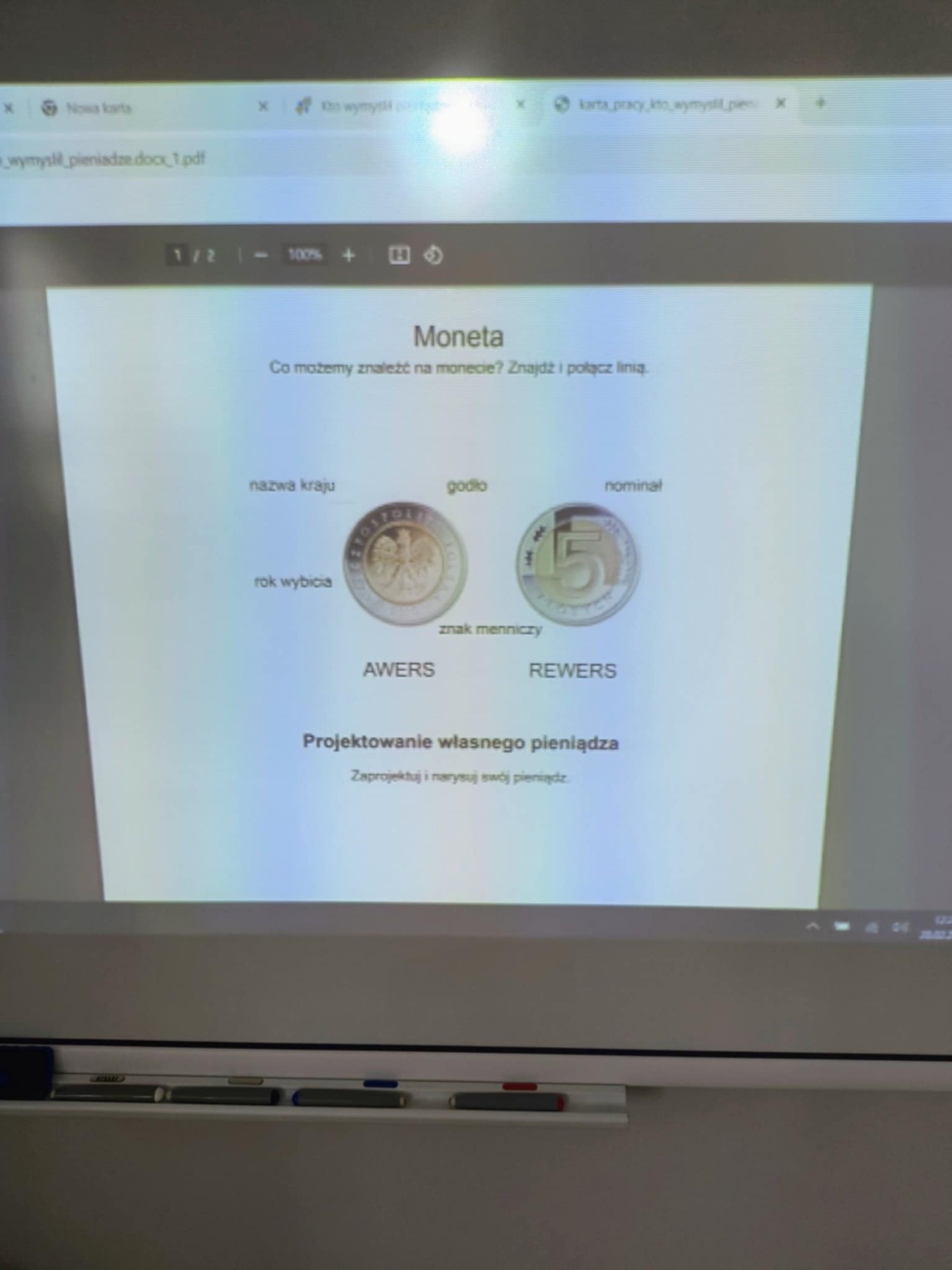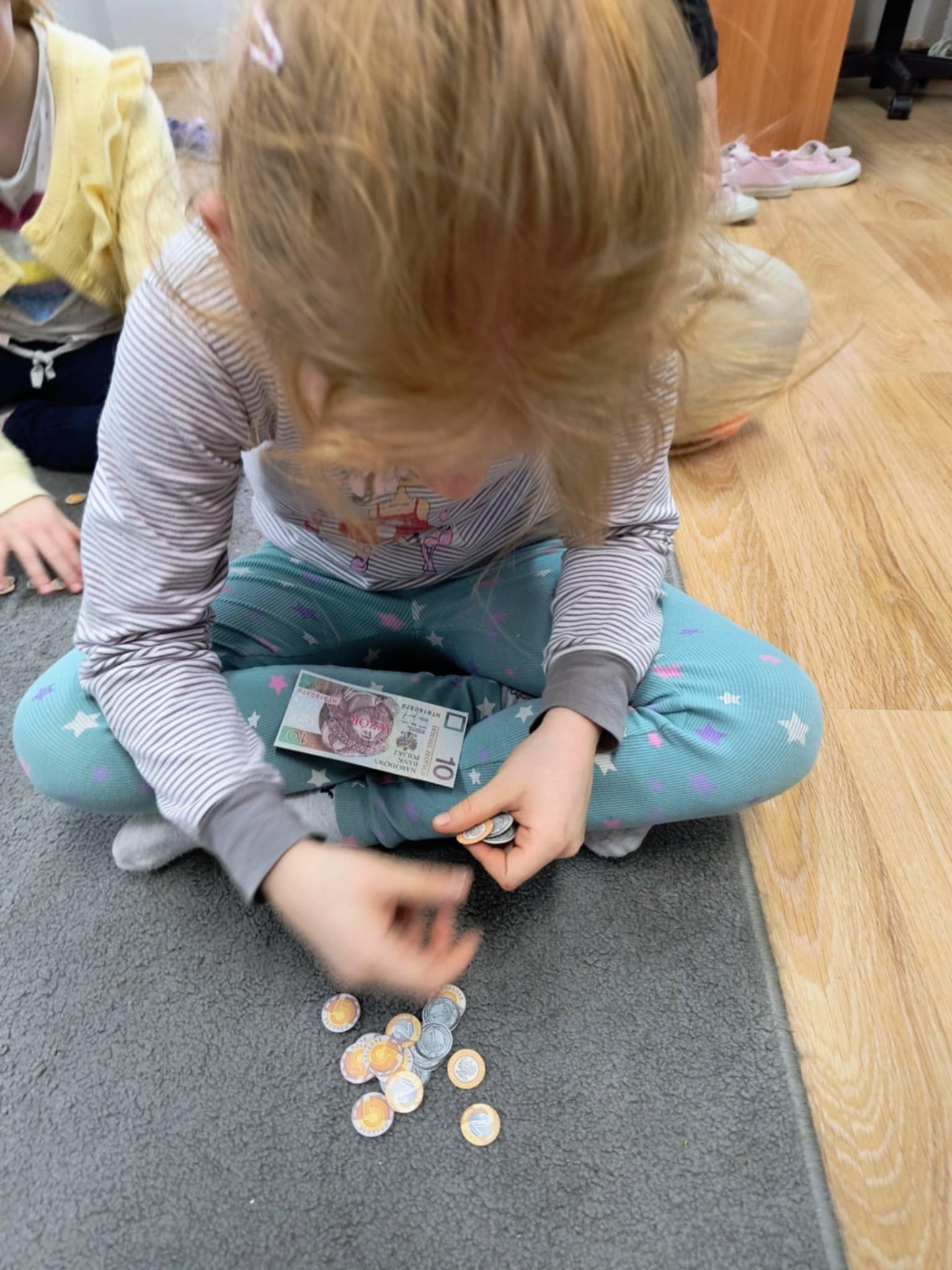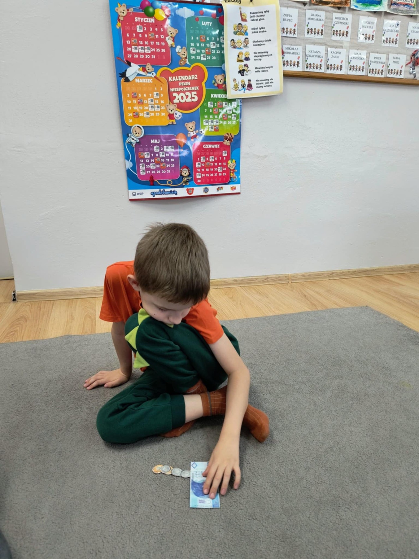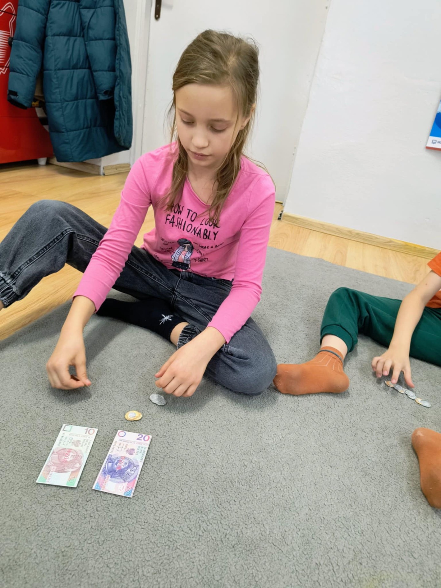 Podczas zajęć "Matematyka z TIK" uczniowie klas pierwszych i drugich poznali różne rodzaje środków płatniczych, dowiedzieli się jakimi przedmiotami płacono dawniej oraz jak wyglądały pierwsze pieniądze. Wychowankowie, zwielkim zainteresowaniem dokonali szczegółowej analizy elementów awersu i rewersu monet a także elementów zabezpieczających banknotów, samodzielnie sprawdzali czy banknoty posiadają znak wodny i nitkę zabezpieczającą. Podsumowaniem ciekawej lekcji matematyki było zaprojektowanie własnych banknotów.