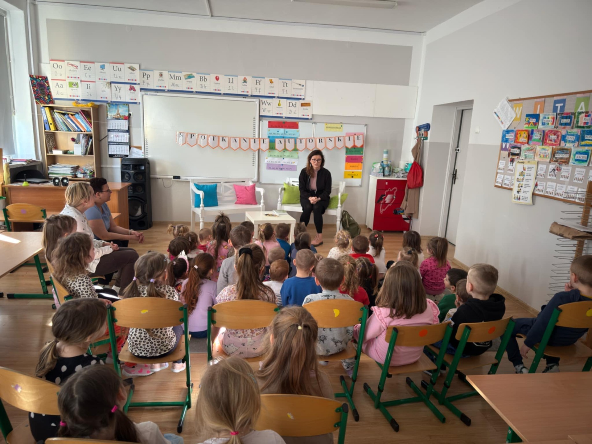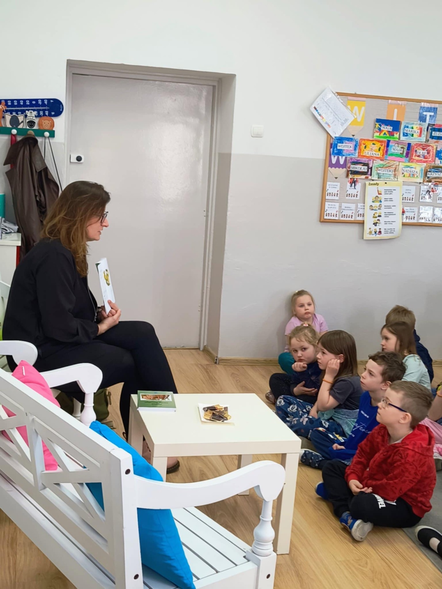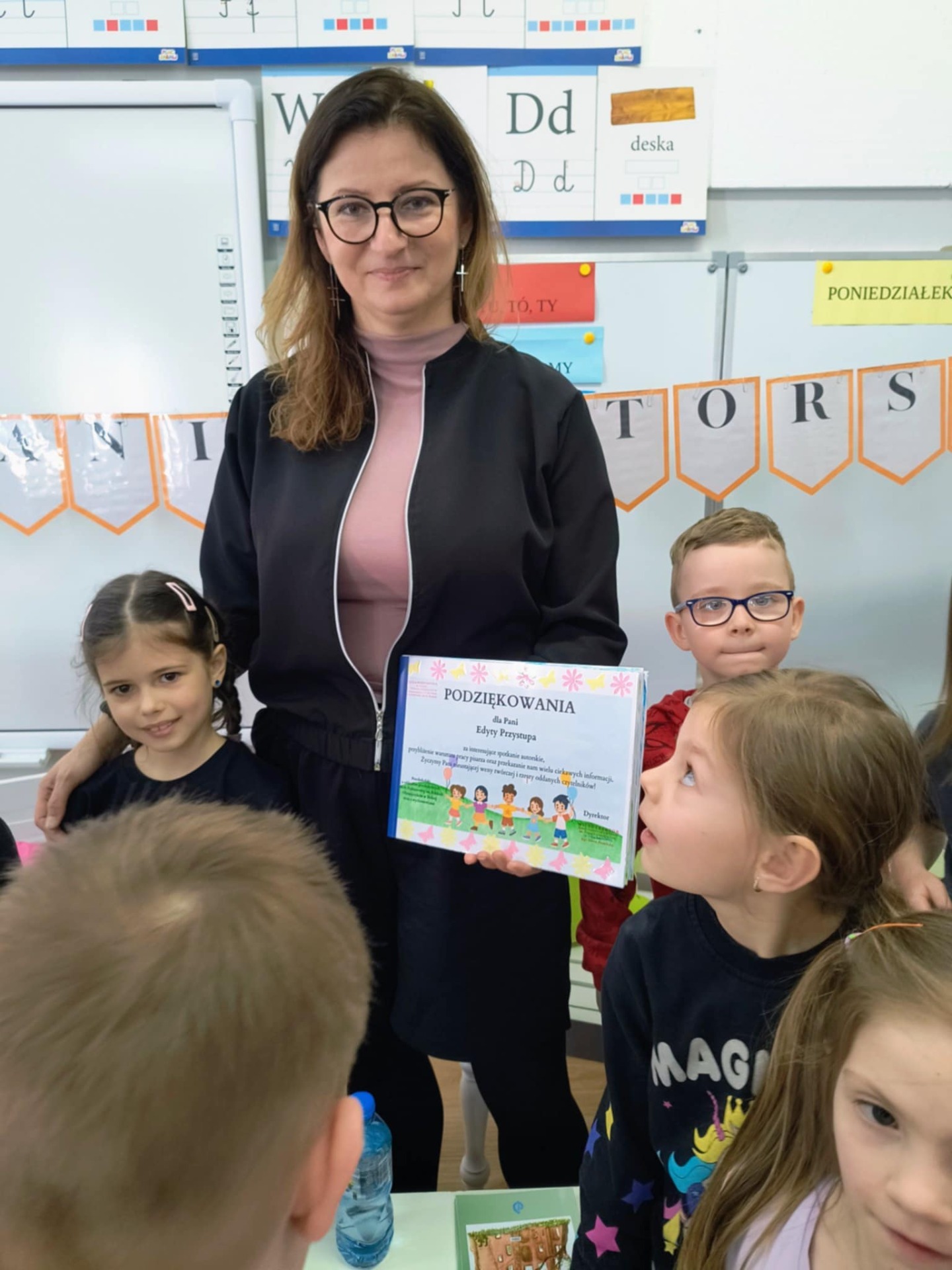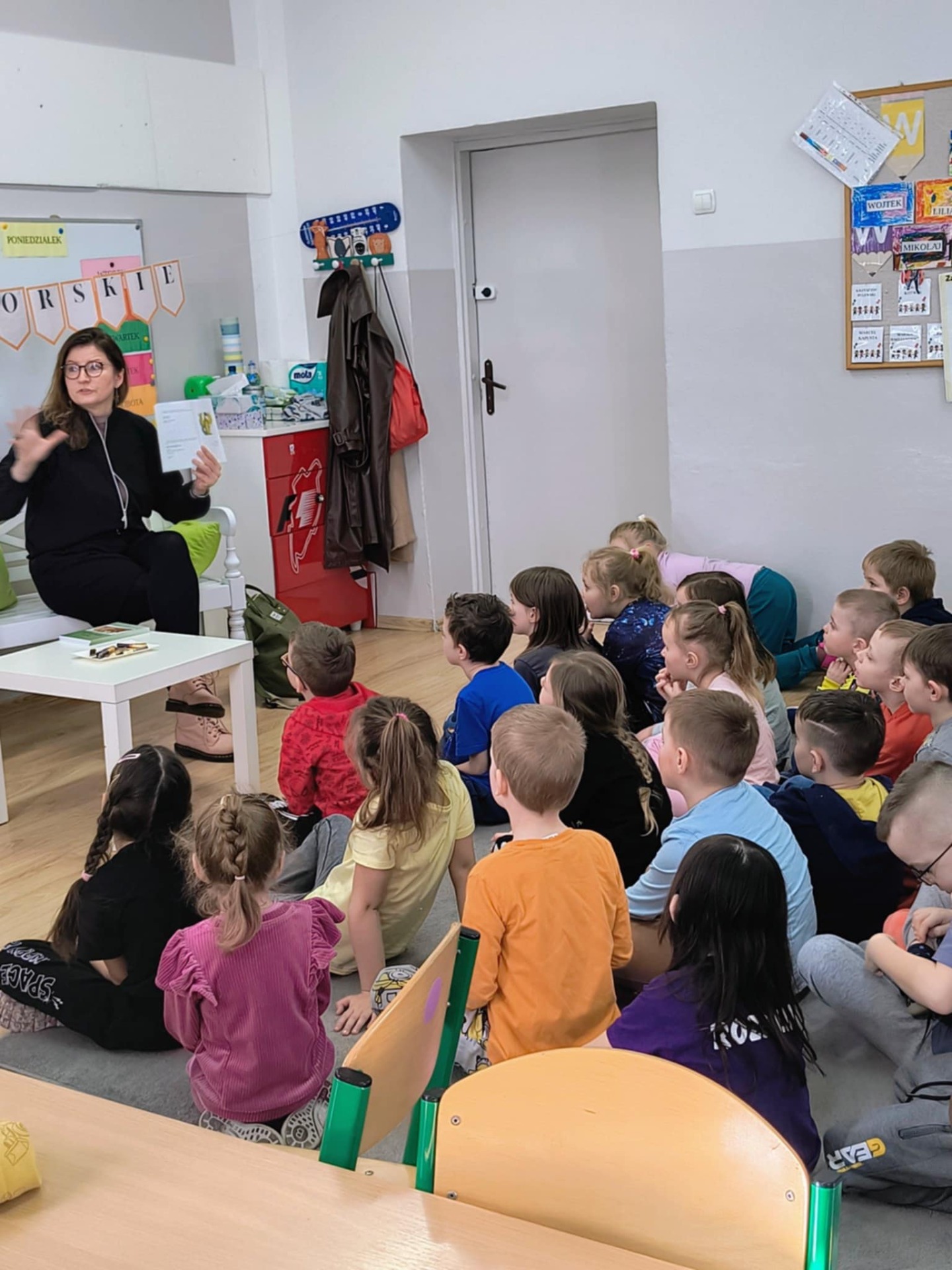 17 marca 2025 r. przedszkolaki mia艂y przyjemno艣膰 go艣ci膰 autork臋 i ilustratork臋 bajki dla dzieci „Smok Bazyli” - pani膮 Edyt臋 Przystup臋. Pani Edyta w przyst臋pny sposób dla najm艂odszych opowiedzia艂a o swojej przygodzie z pisaniem i ilustrowaniem ksi膮偶eczek. Autorka z ogromn膮 pasj膮 zaprezentowa艂a swoj膮 twórczo艣膰 a dzieci mia艂y okazj臋 pozna膰 uroczego i sympatycznego smoka, którym by艂y ogromnie zafascynowane. W podzi臋kowaniu za cudowne spotkanie wr臋czy艂y pani Edycie ksi膮偶eczk臋 z w艂asnor臋cznie wykonanymi rysunkami.