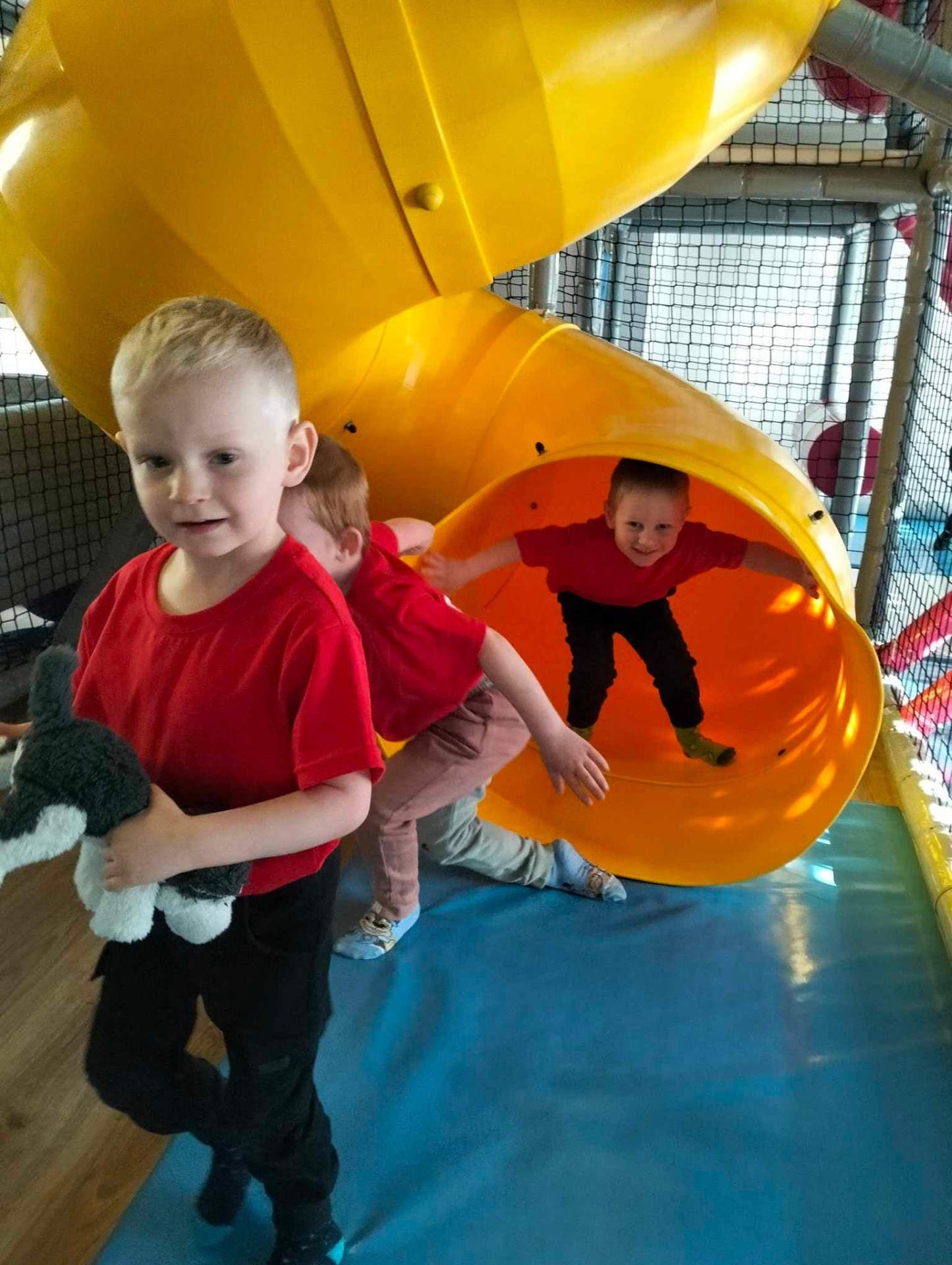 W czwartek 3 i 4-latki wyruszyły na wycieczkę do sali zabaw „Kraina Zabawy” w Nowogardzie. Celem naszej wycieczki była przede wszystkim integracja grup rówieśniczych, rozwijanie motoryki dużej i małej dzieci oraz stworzenie możliwości radosnego spędzenia czasu. W sali zabaw przedszkolaki mogły skorzystać z licznych atrakcji, m.in. z basenu kulkami, tuneli, zjeżdżać na zjeżdżalni, budować obiekty z dużych klocków . Zadowolone, nieco zmęczone, pełne wrażeń dzieci wróciły do Przedszkola.