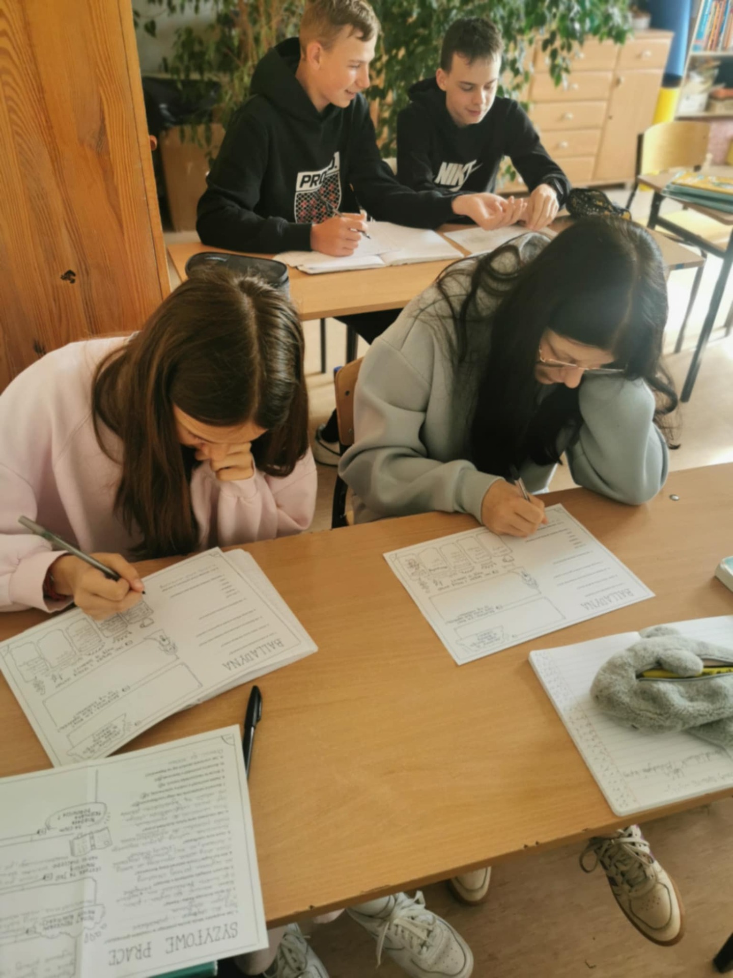 Uczniowie klasy VIII chętnie wykonują karty pracy do lektur. Odpowiadają na pytania zamknięte, otwarte oraz typu prawda /fałsz. Mają okazję utrwalić treść i problematykę utworów. Uzasadniają ich wykorzystanie w funkcji argumentacyjnej. Przygotowują mapy myśli, oglądają prezentacje.