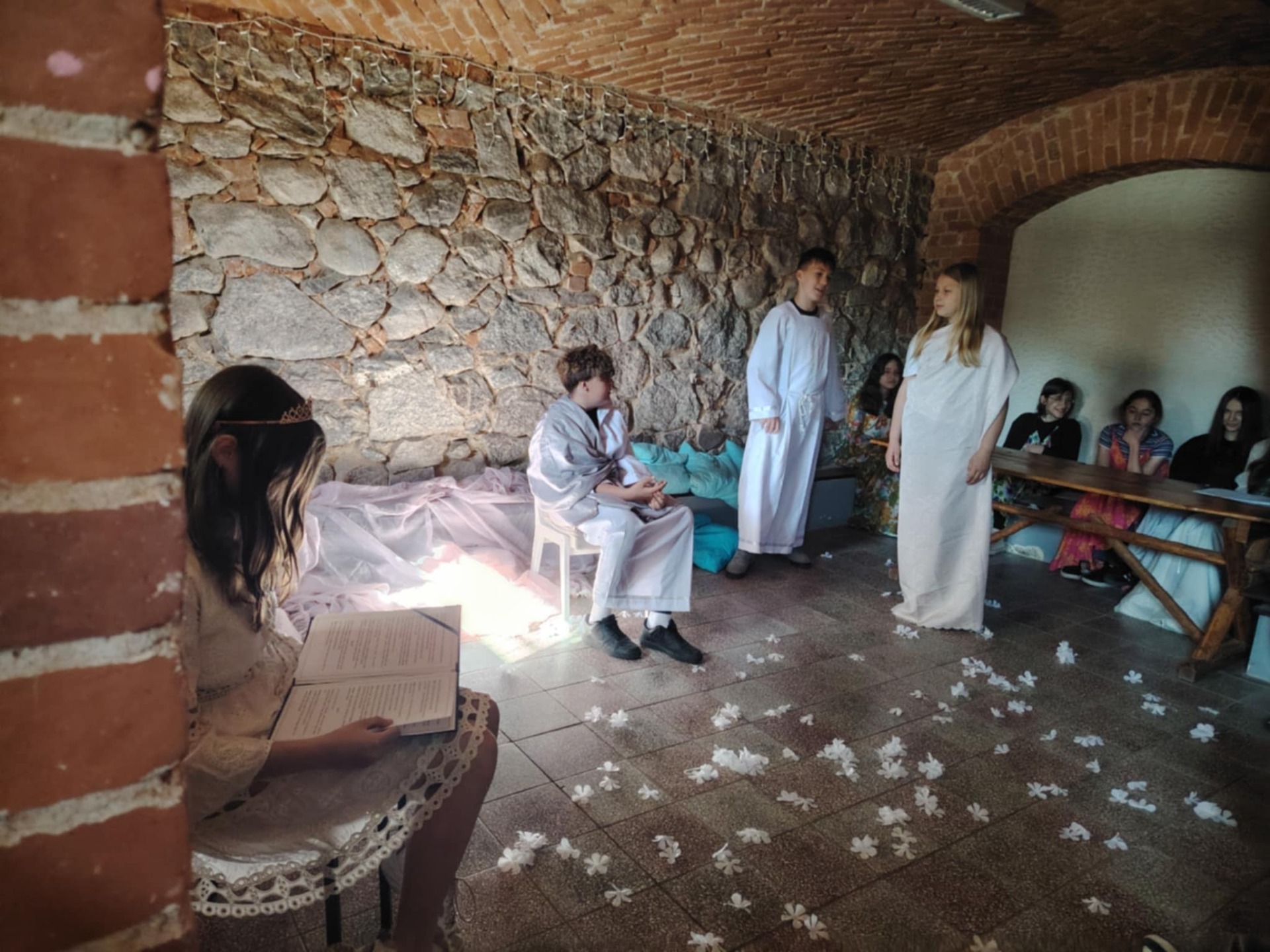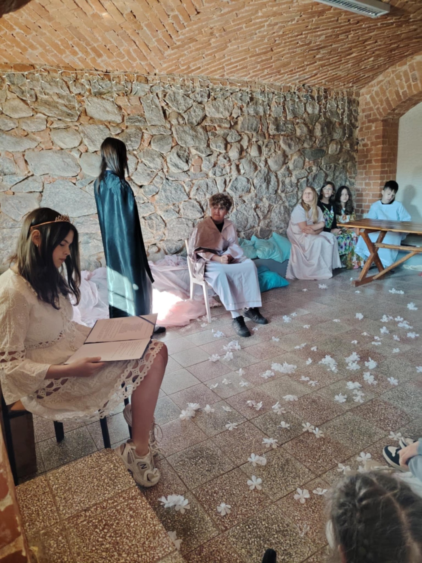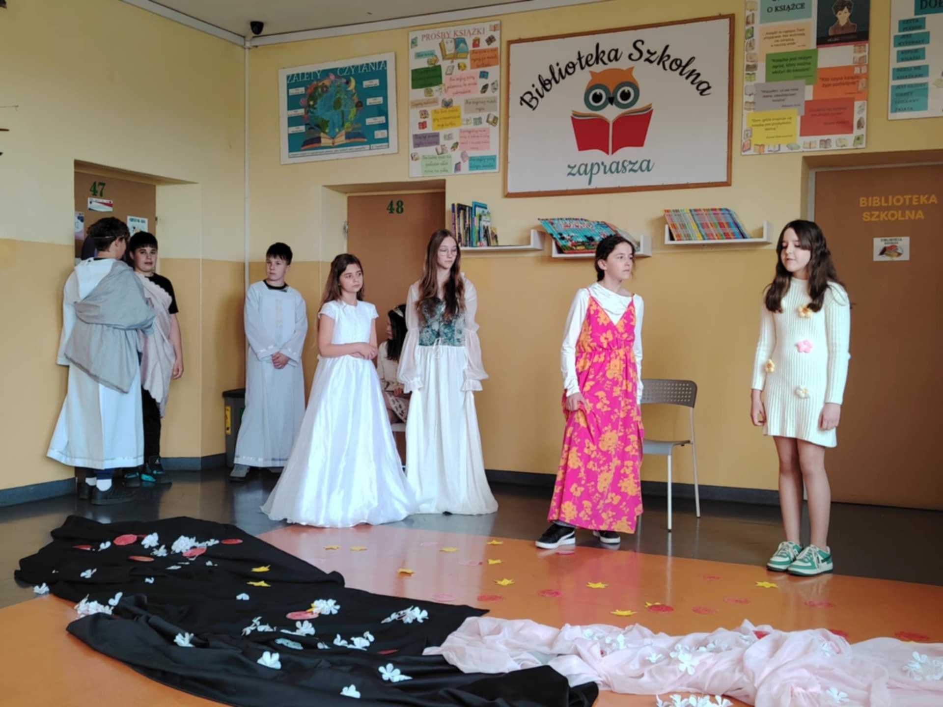 W kręgu zainteresowania naszych młodych aktorów znalazła się mitologia grecka, więc z entuzjazmem przygotowali przedstawienie pt. „Demeter i Kora”. Występ adresowany był do koleżanek i kolegów z klas III, IV oraz V. Efekty ciężkiej pracy zostały docenione przez widownię, co stanowiło dla uczniów z kółka teatralnego powód do dumy i motywację do dalszego rozwoju umiejętności aktorskich.