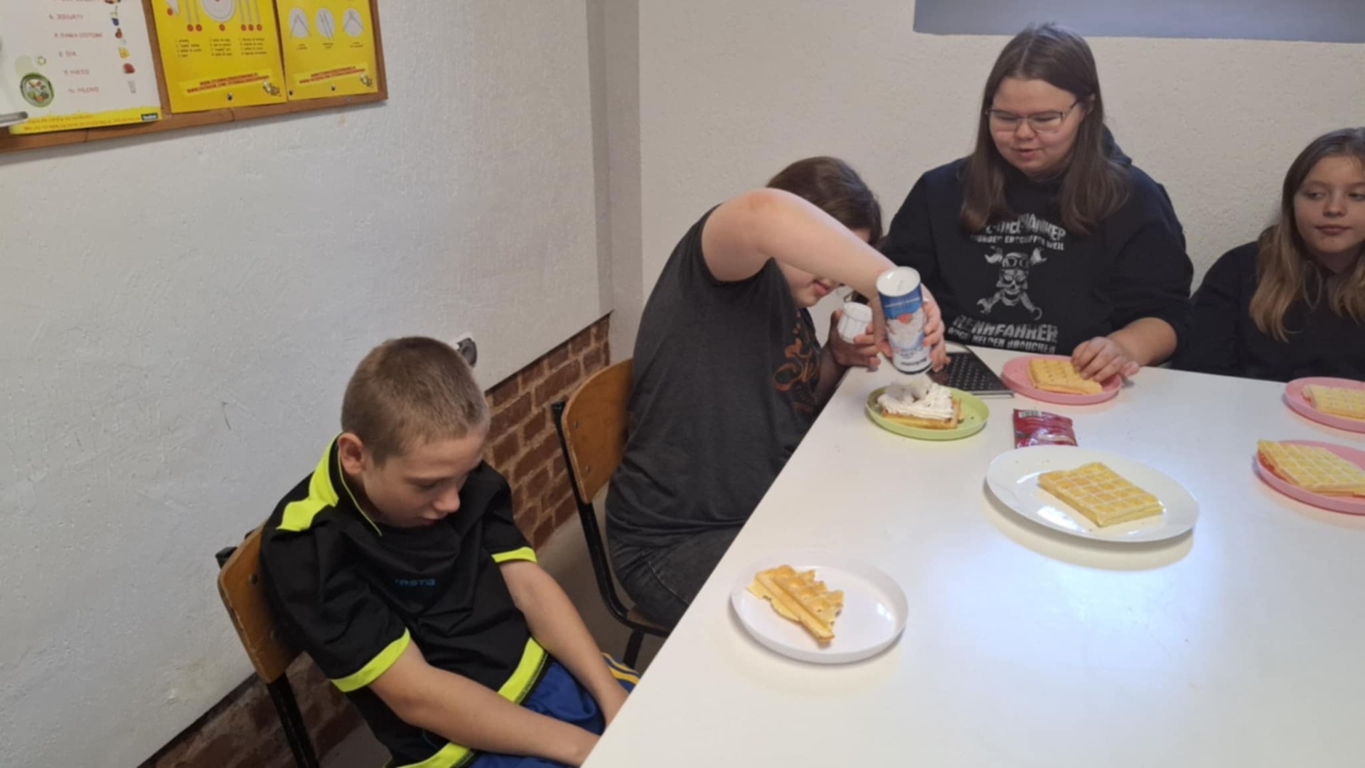 Dzisiaj uczniowie klas 4 i 5 w ramach zajęć dodatkowych z matematyki przygotowywali według przepisu najsmaczniejsze gofry, jakie można sobie wyobrazić. Pierwszym krokiem było obliczenie proporcji składników, co pozwoliło dzieciom nie tylko rozwijać umiejętności matematyczne, ale także zrozumieć, jak ważne jest precyzyjne mierzenie, aby uzyskać idealną konsystencję ciasta. Następnie uczniowie mieli okazję eksperymentować z różnymi dodatkami, takimi jak świeże owoce, bita śmietana i syrop klonowy, ucząc się jednocześnie, jak różne kombinacje wpływają na smak końcowy. Zajęcia zakończyły się wspólnym degustowaniem gofrów, co było pysznym zwieńczeniem dnia pełnego nauki i zabawy.
