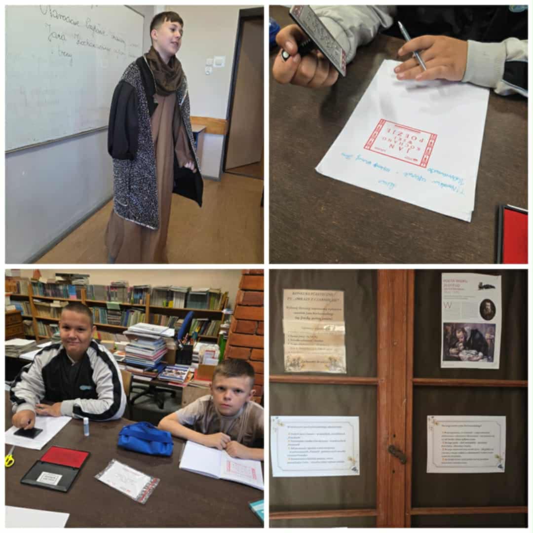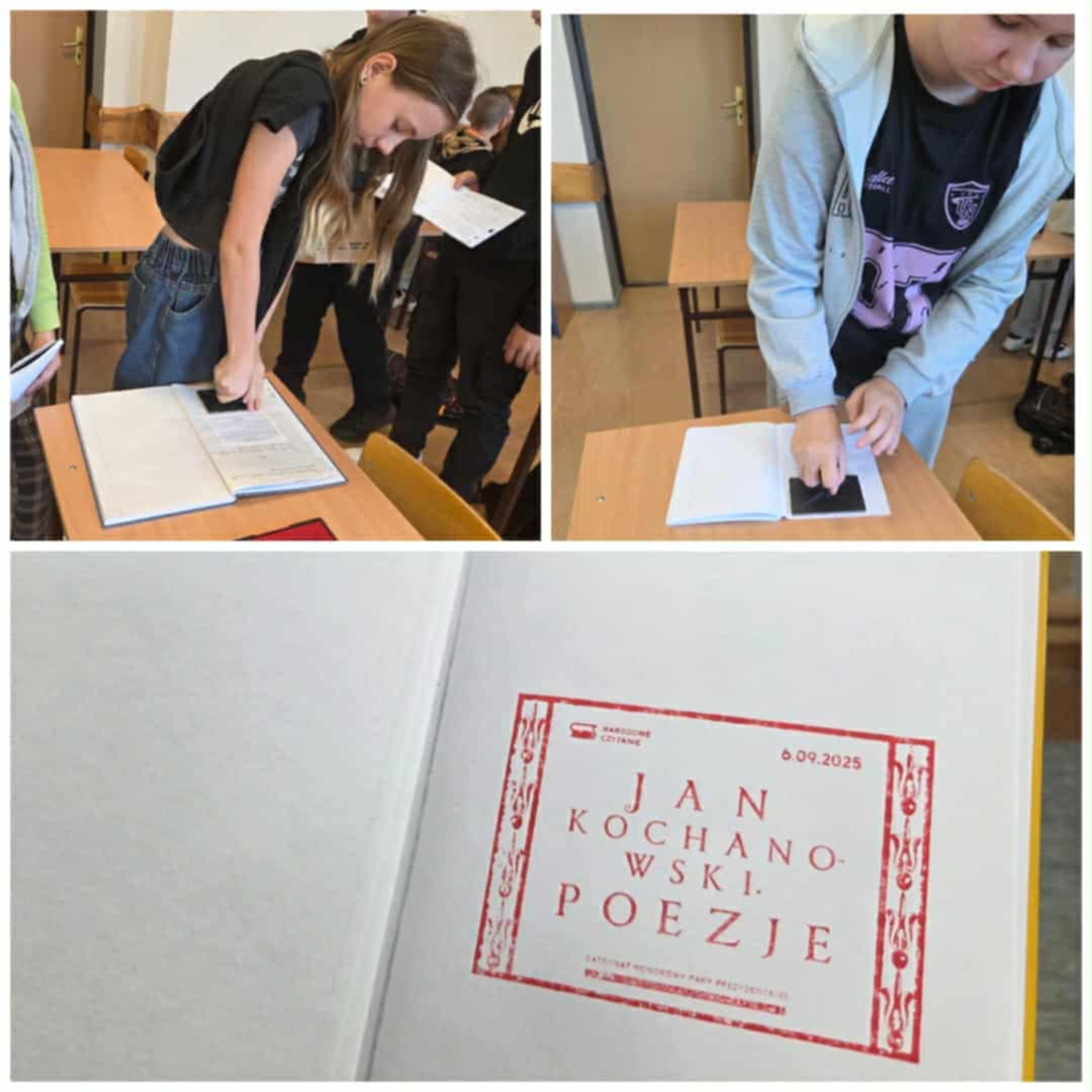 Narodowe Czytanie w naszej szkole to jak co roku szereg działań. Uczniowie klas IV-VIII na języku polskim czytali fraszki, pieśni i treny Jana Kochanowskiego. W niektórych klasach pojawił się nawet sam poeta, który opowiedział swój życiorys. Klasa VIII czytała utwory renesansowego twórcy w Bibliotece Publicznej. Dodatkowo uczniowie rozwiązywali zagadki, quizy oraz tworzyli rysunki. Zwieńczeniem akcji było przybicie pamiątkowej pieczęci przesłanej z kancelarii prezydenta. Niebawem zostanie rozstrzygnięty także Szkolny Konkurs pt. ,,Obrazy z Czarnolasu" na ilustrację do utworu Kochanowskiego. Młodsi uczniowie zostali zapoznani z Narodowym Czytaniem przez panią Magdalenę Czapiewską, dyrektor Biblioteki Publicznej, która odwiedziła ich w szkole, przynosząc pamiątkową pieczęć.