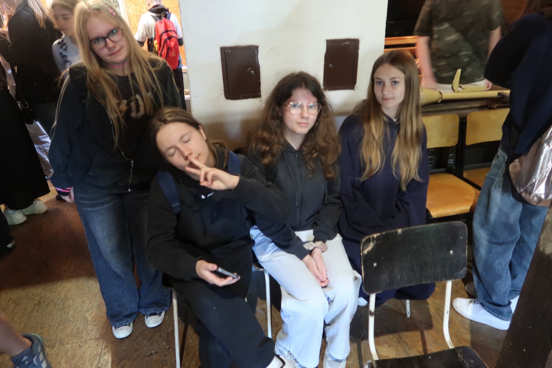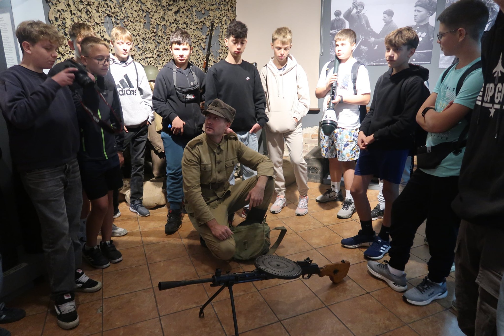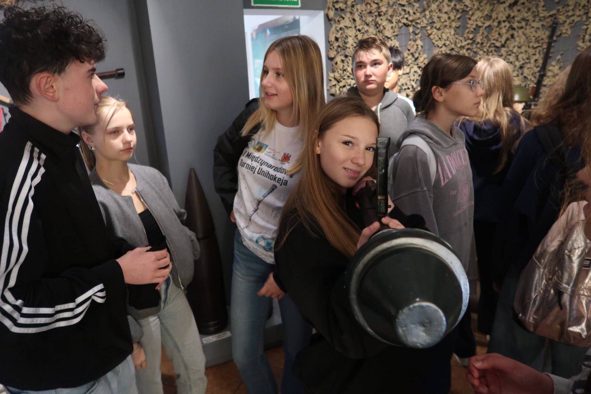 🥐 Dzień rozpoczęliśmy od pożywnego śniadania w CKW Mróz 🍞🥛🍳, które dodało nam energii na pełne przygód przedpołudnie. Wraz z uczniami z partnerskiej szkoły Regionale Schule Albert Einstein w Torgelow 👩🎓👨🎓 wyruszyliśmy w pierwszą podróż w czasie i przestrzeni – do Muzeum Pamiątek 1. Armii Wojska Polskiego w Gozdowicach 🏛️📜. To miejsce okazało się prawdziwą lekcją historii – mogliśmy zobaczyć z bliska eksponaty z czasów walk na tych terenach ⚔️🪖 i poczuć atmosferę tamtych wydarzeń. Na uczestników czekała też gra terenowa 🗺️🔍, podczas której szukaliśmy skrzynek ukrytych w różnych miejscach, odnajdywaliśmy punkty widokowe 🏞️🌳 i uzupełnialiśmy specjalne karty pracy 📝✏️. Każdy „ukryty skarb” 💎 przybliżał nas do końcowego celu i pozwalał odkrywać historię na żywo, nie tylko w murach muzeum, ale także wokół kościoła ⛪ i pomnika 🗿.