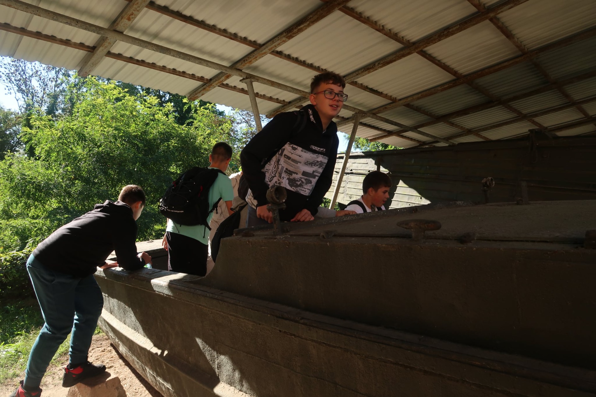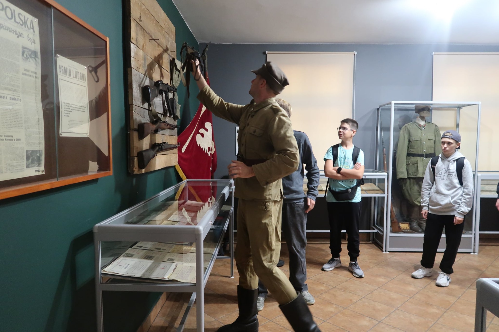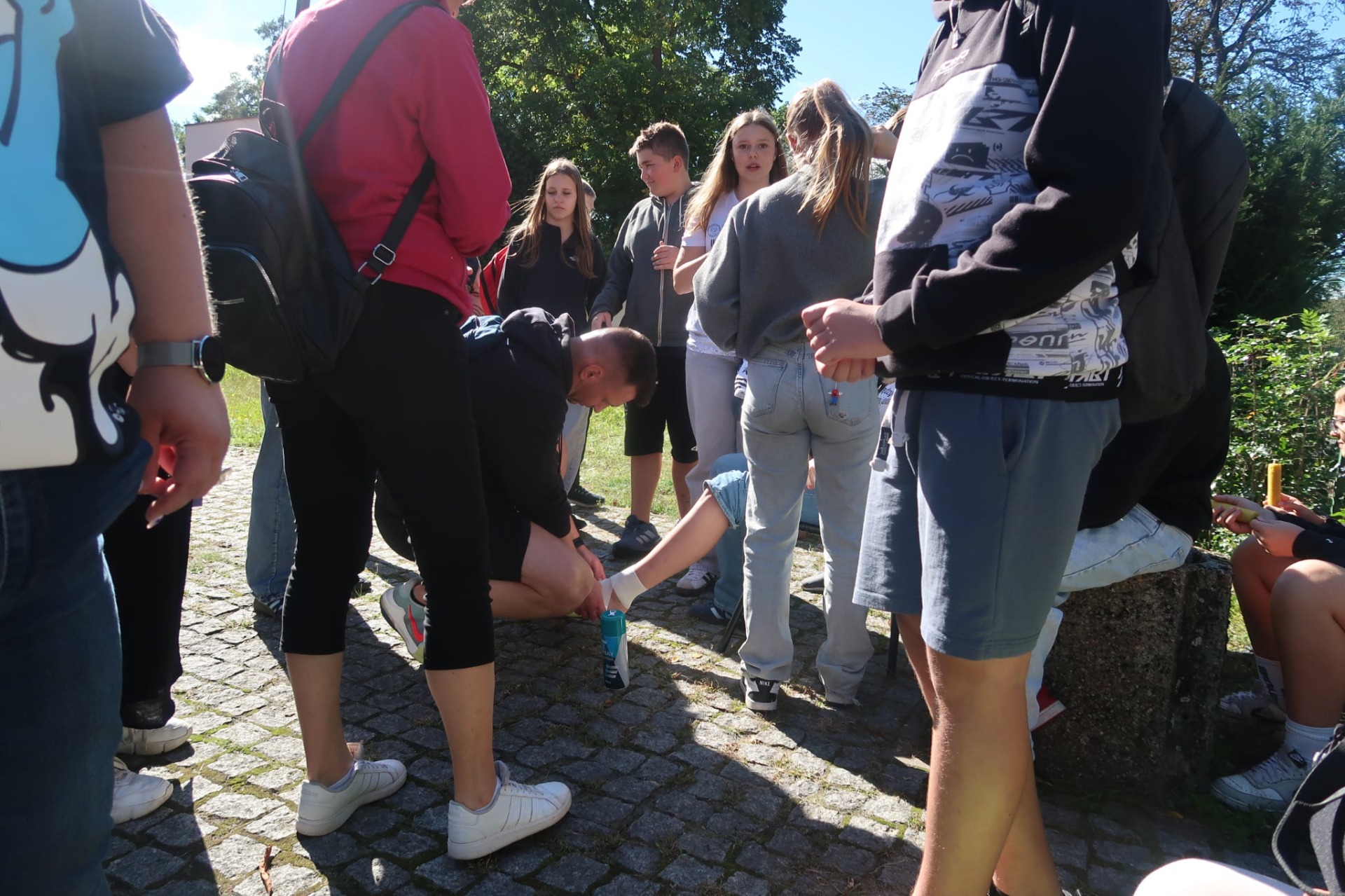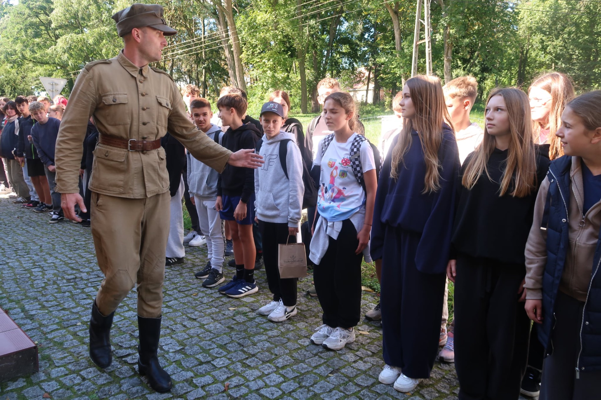 🥐 Dzień rozpoczęliśmy od pożywnego śniadania w CKW Mróz 🍞🥛🍳, które dodało nam energii na pełne przygód przedpołudnie. Wraz z uczniami z partnerskiej szkoły Regionale Schule Albert Einstein w Torgelow 👩🎓👨🎓 wyruszyliśmy w pierwszą podróż w czasie i przestrzeni – do Muzeum Pamiątek 1. Armii Wojska Polskiego w Gozdowicach 🏛️📜. To miejsce okazało się prawdziwą lekcją historii – mogliśmy zobaczyć z bliska eksponaty z czasów walk na tych terenach ⚔️🪖 i poczuć atmosferę tamtych wydarzeń. Na uczestników czekała też gra terenowa 🗺️🔍, podczas której szukaliśmy skrzynek ukrytych w różnych miejscach, odnajdywaliśmy punkty widokowe 🏞️🌳 i uzupełnialiśmy specjalne karty pracy 📝✏️. Każdy „ukryty skarb” 💎 przybliżał nas do końcowego celu i pozwalał odkrywać historię na żywo, nie tylko w murach muzeum, ale także wokół kościoła ⛪ i pomnika 🗿.